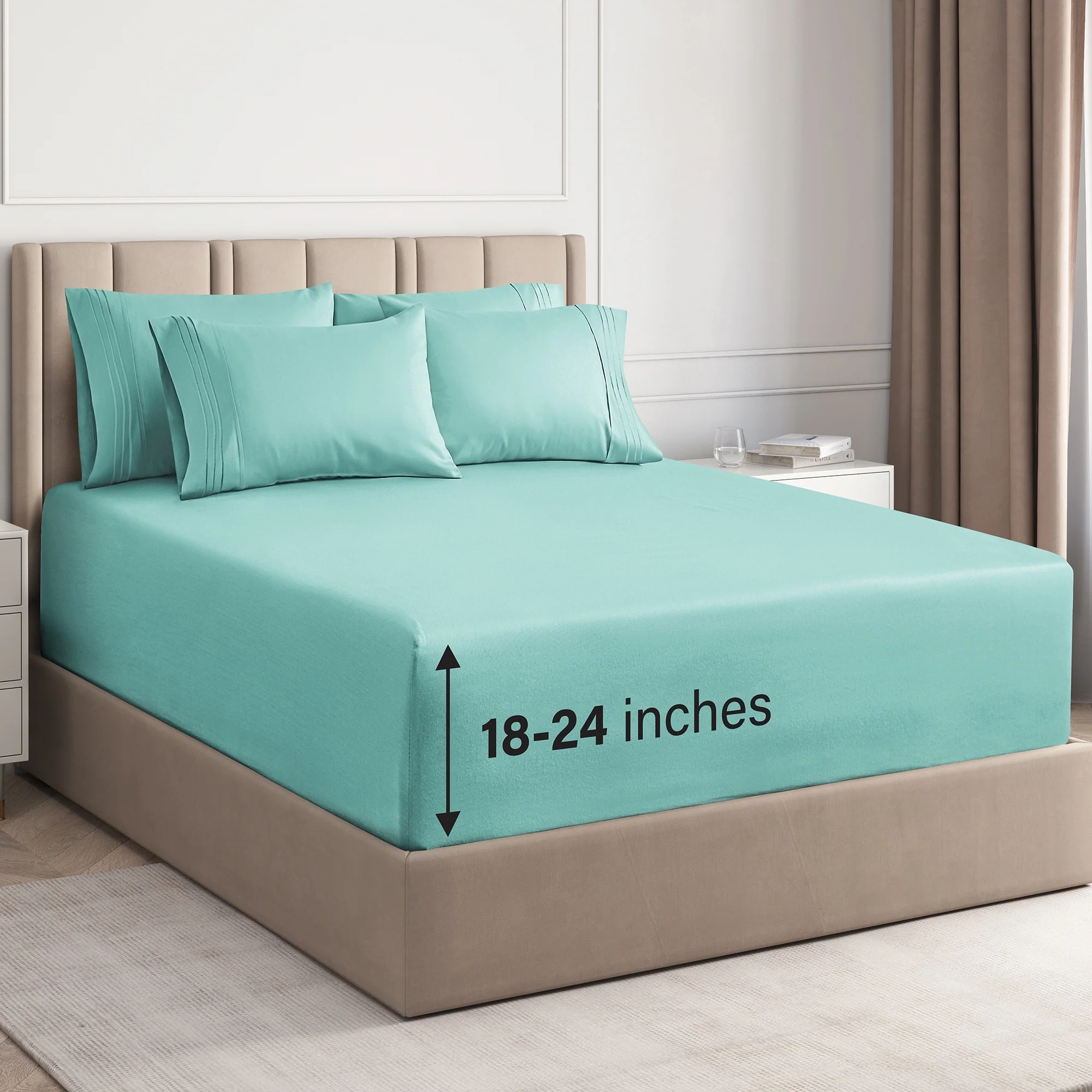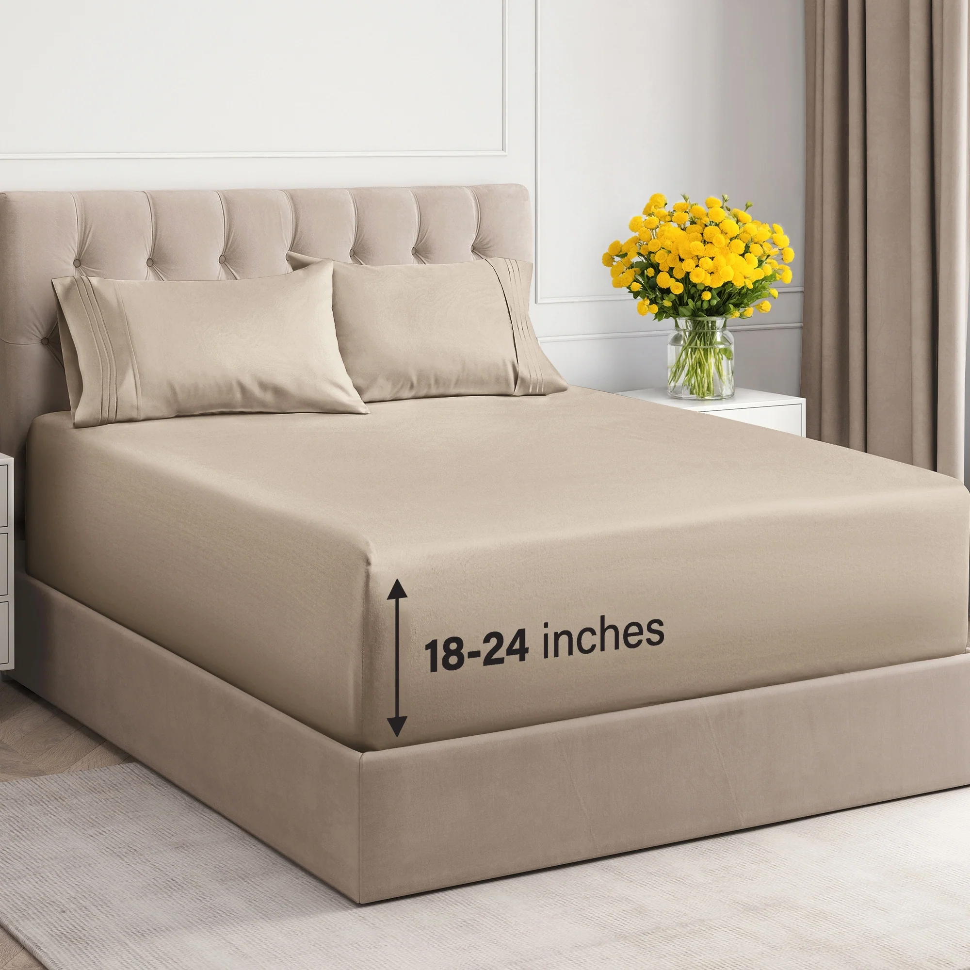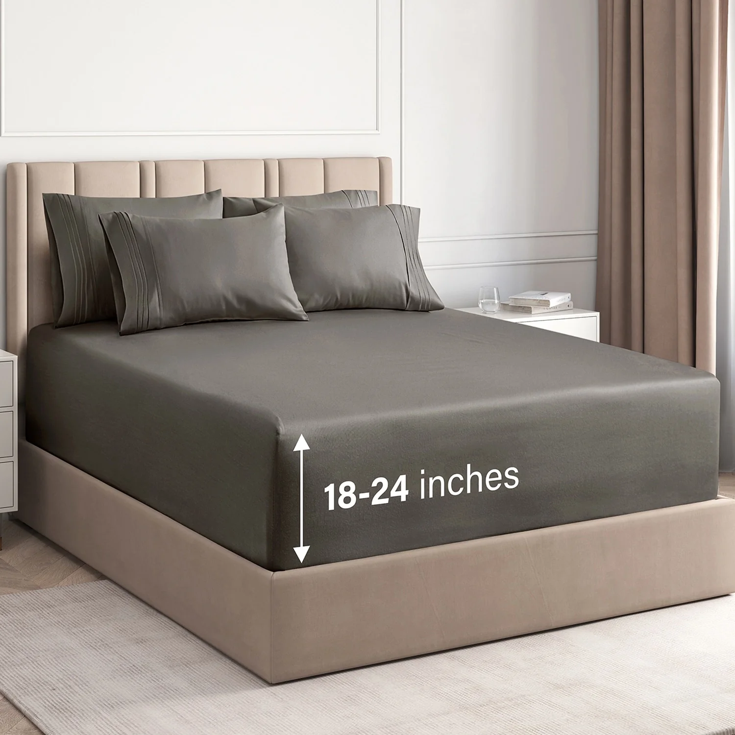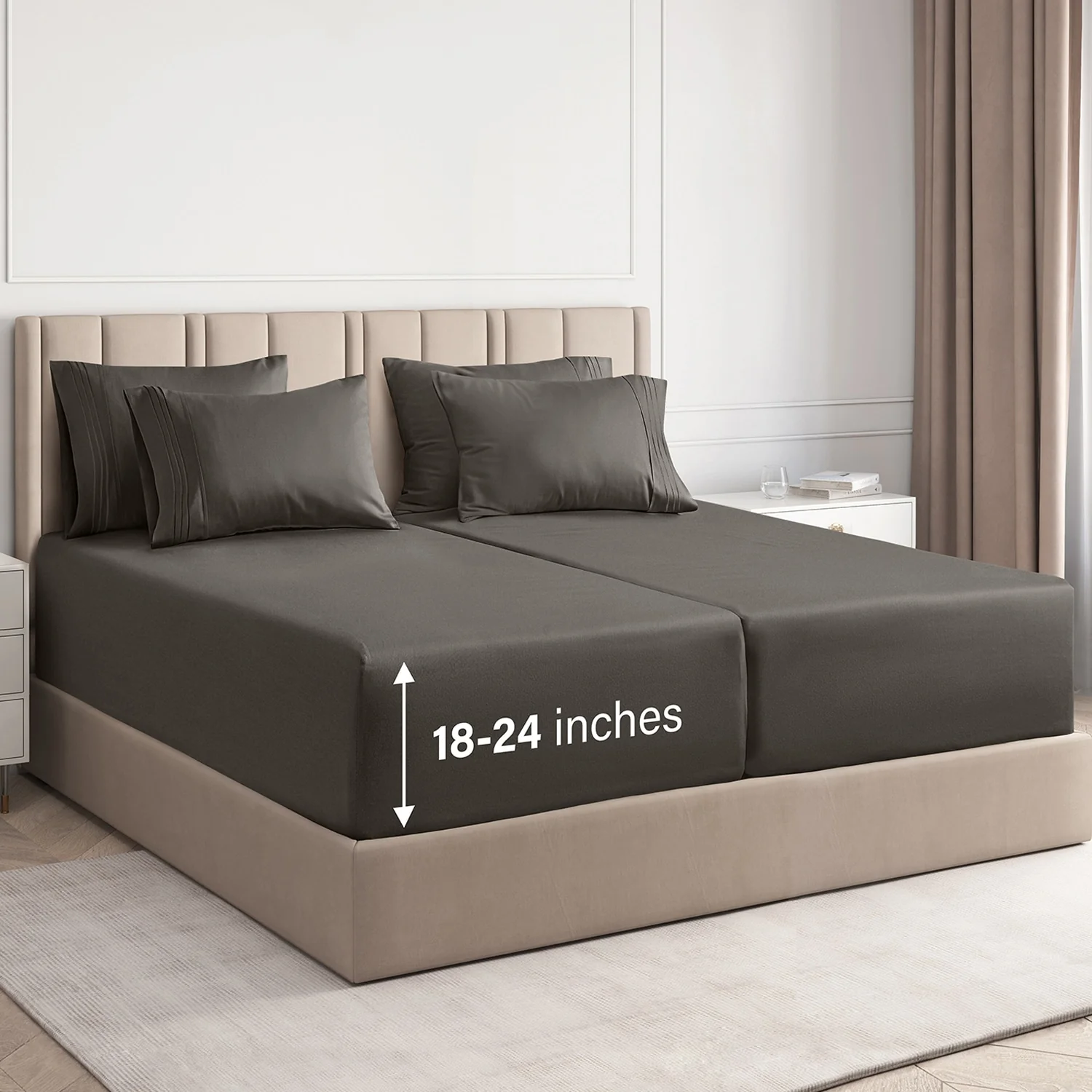 These are the softest type of microfiber bed sheets we have created. Super soft with a light feel. If you’re accustomed to cotton sheets and you’ve never tried microfiber sheets we recommend you at least give these a try. Our luxurious sheets are tightly woven and double brushed on both sides, contributing to a silky soft feel and ensuring that our 100% microfiber sheets are softer and more durable than Cotton! There’s a stretchable elastic around the extra deep fitted sheet which stretches for a nice tug around your mattress. Perfect for extra tall & large mattresses. Rest assured these oversized sheets will stay on tight & stay in place!