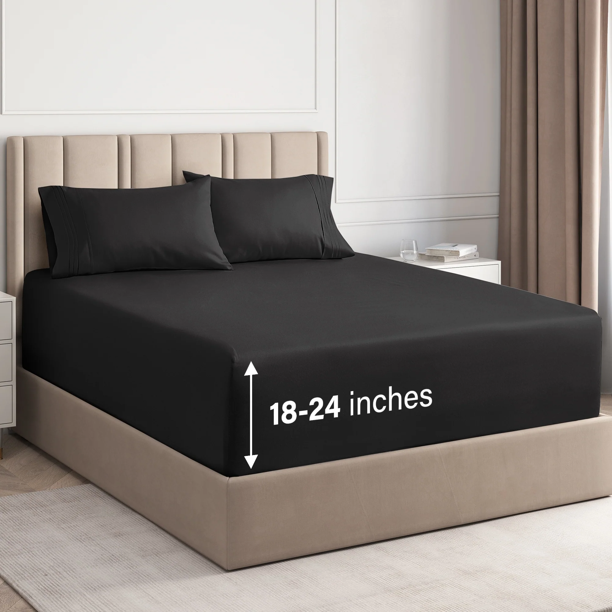 - EXTRA DEEP POCKET SHEETS / EXTRA DEEP FITTED SHEETS: These bed sheets are for very deep pocket mattresses. There’s stretchable elastic around the extra deep fitted sheet which stretches for a nice tug around your mattress.