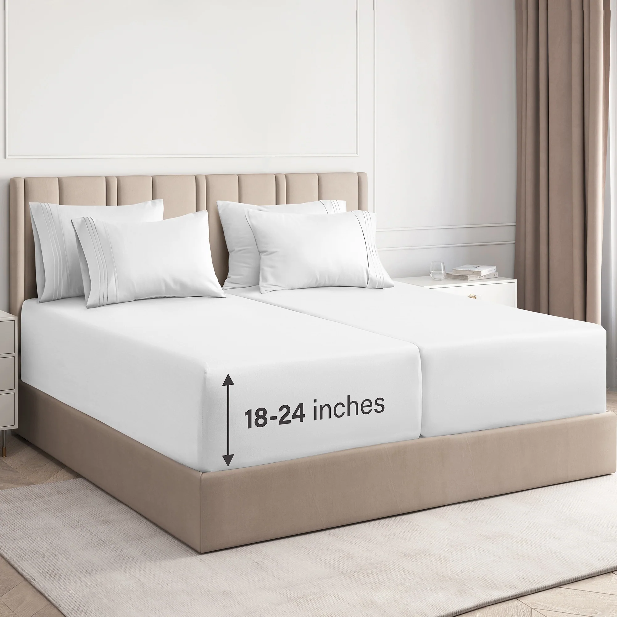 - GREAT FOR DOUBLE PILLOW TOP MATTRESS: These bed sheets are perfect for mattresses with a 3 inch or 4 inch topper on top, memory foam toppers, big mattress pads, pillow tops, foam toppers, big foam toppers, pillow top mattresses and memory foam.