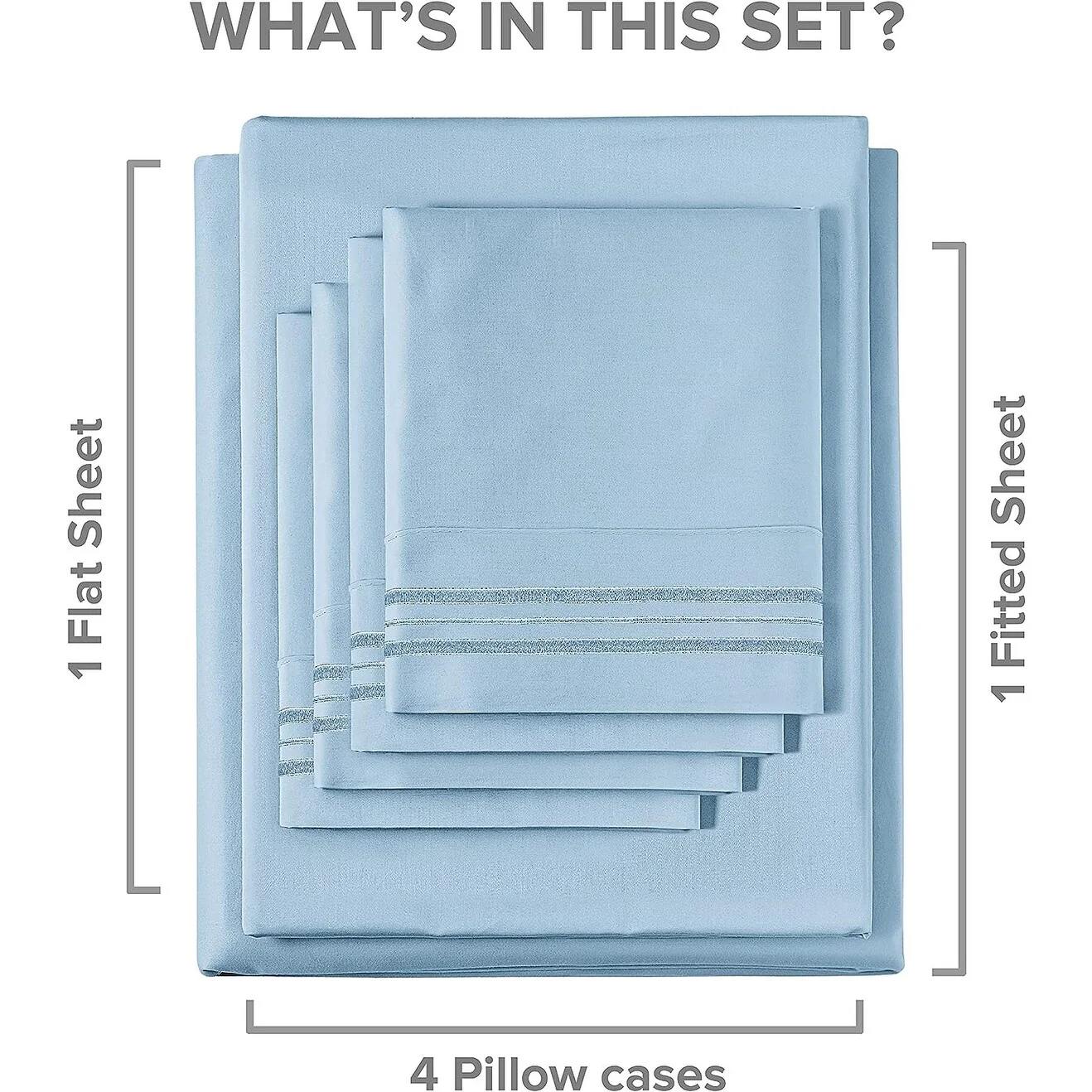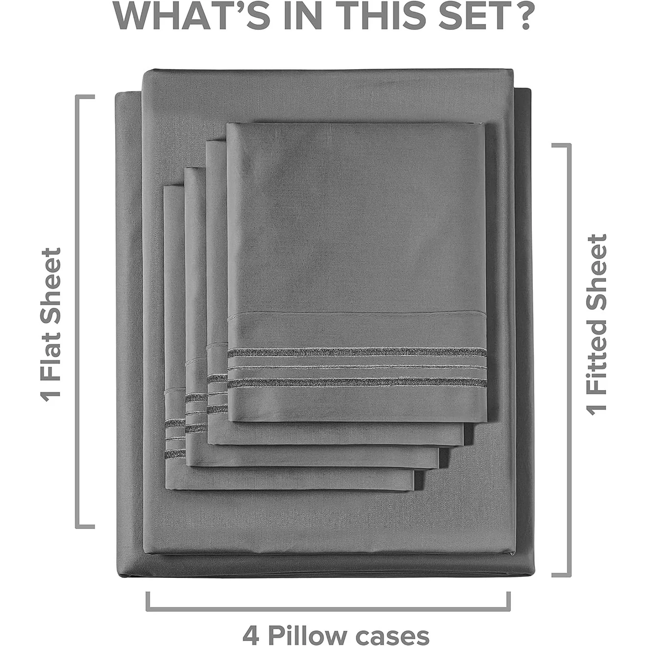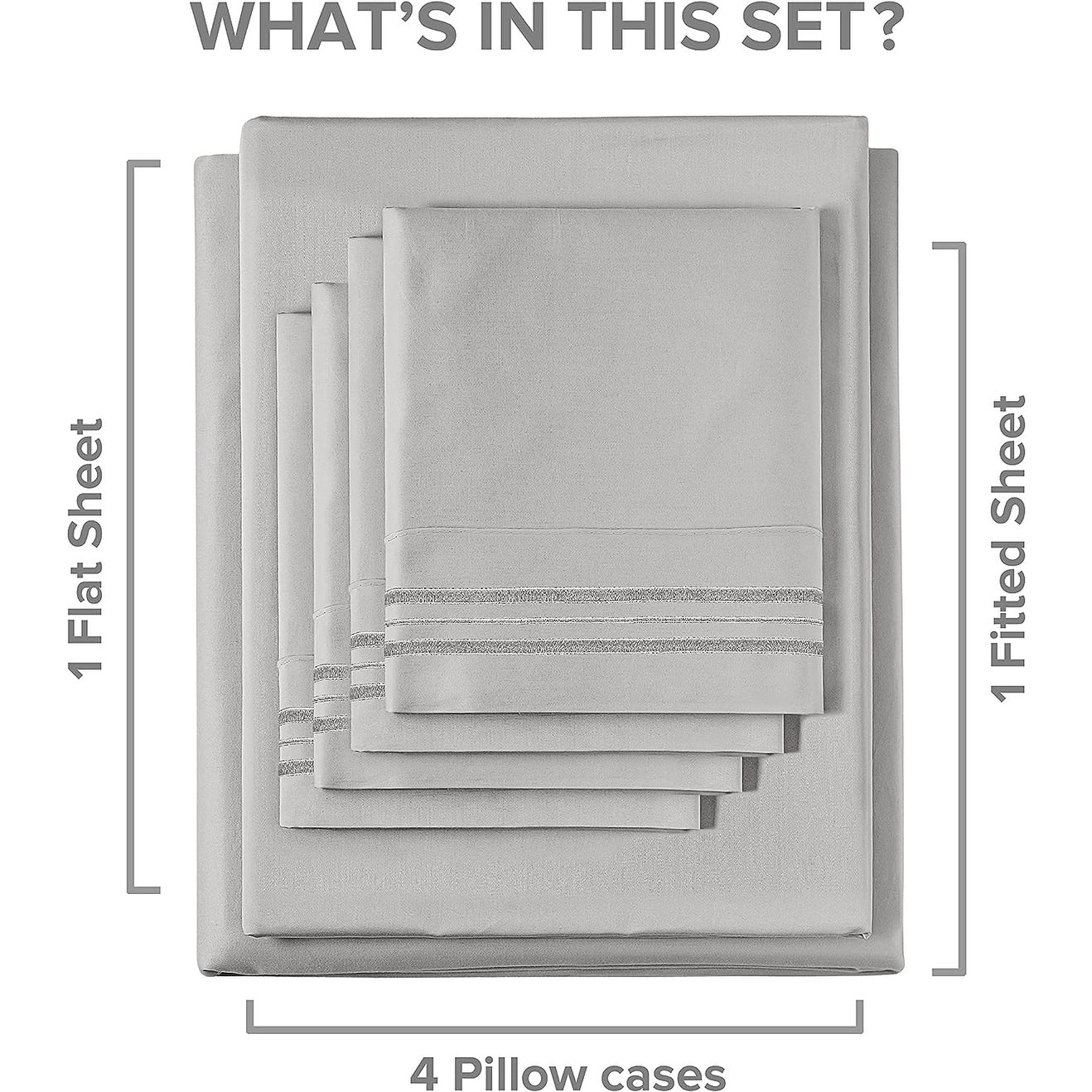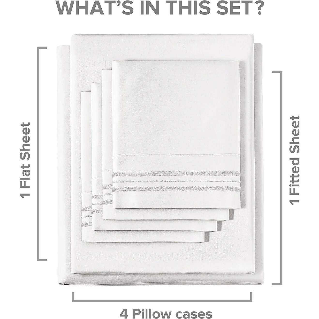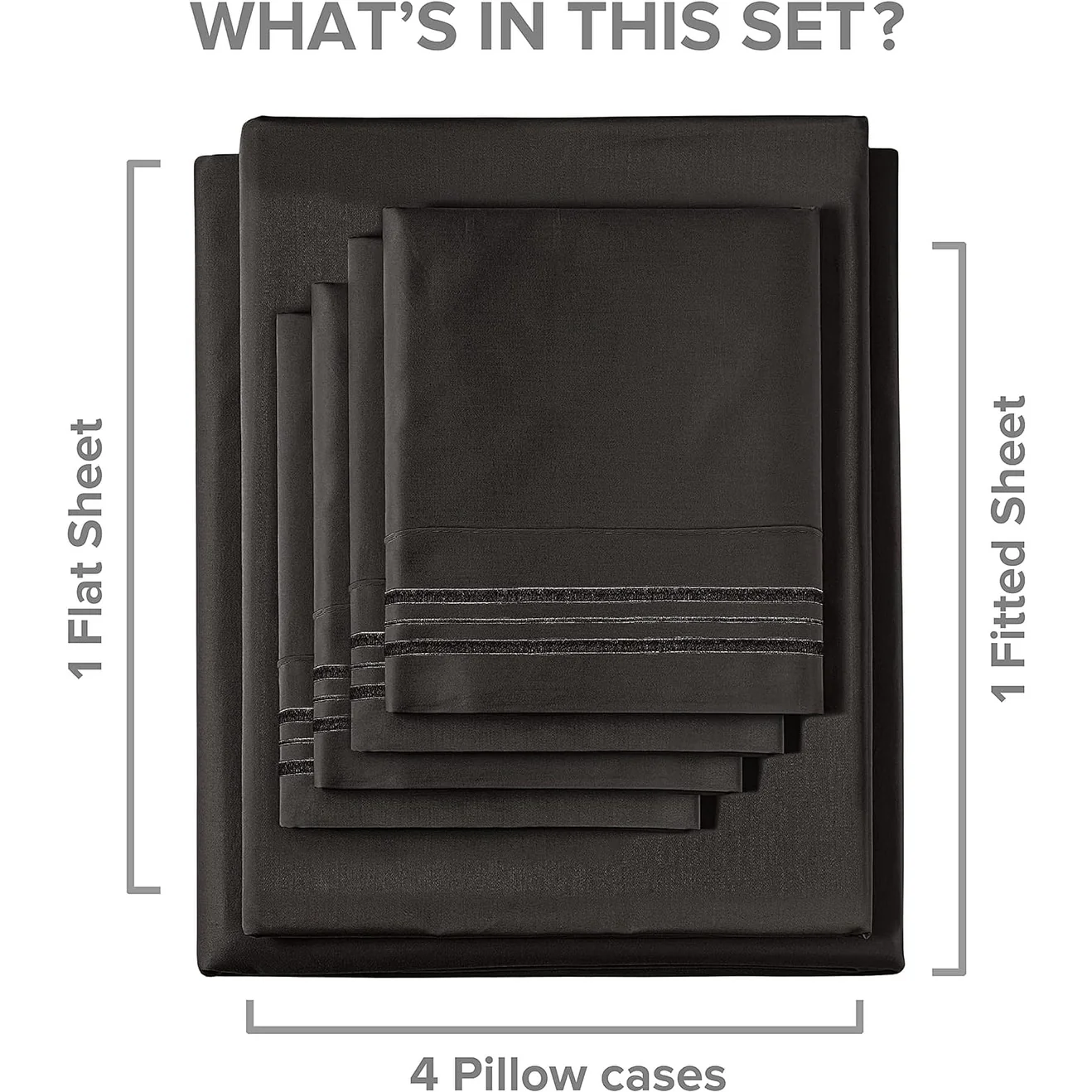 - Includes 1 flat sheet, 1 fitted sheet, and 4 pillowcases (1 pillowcase in Twin/Twin XL)