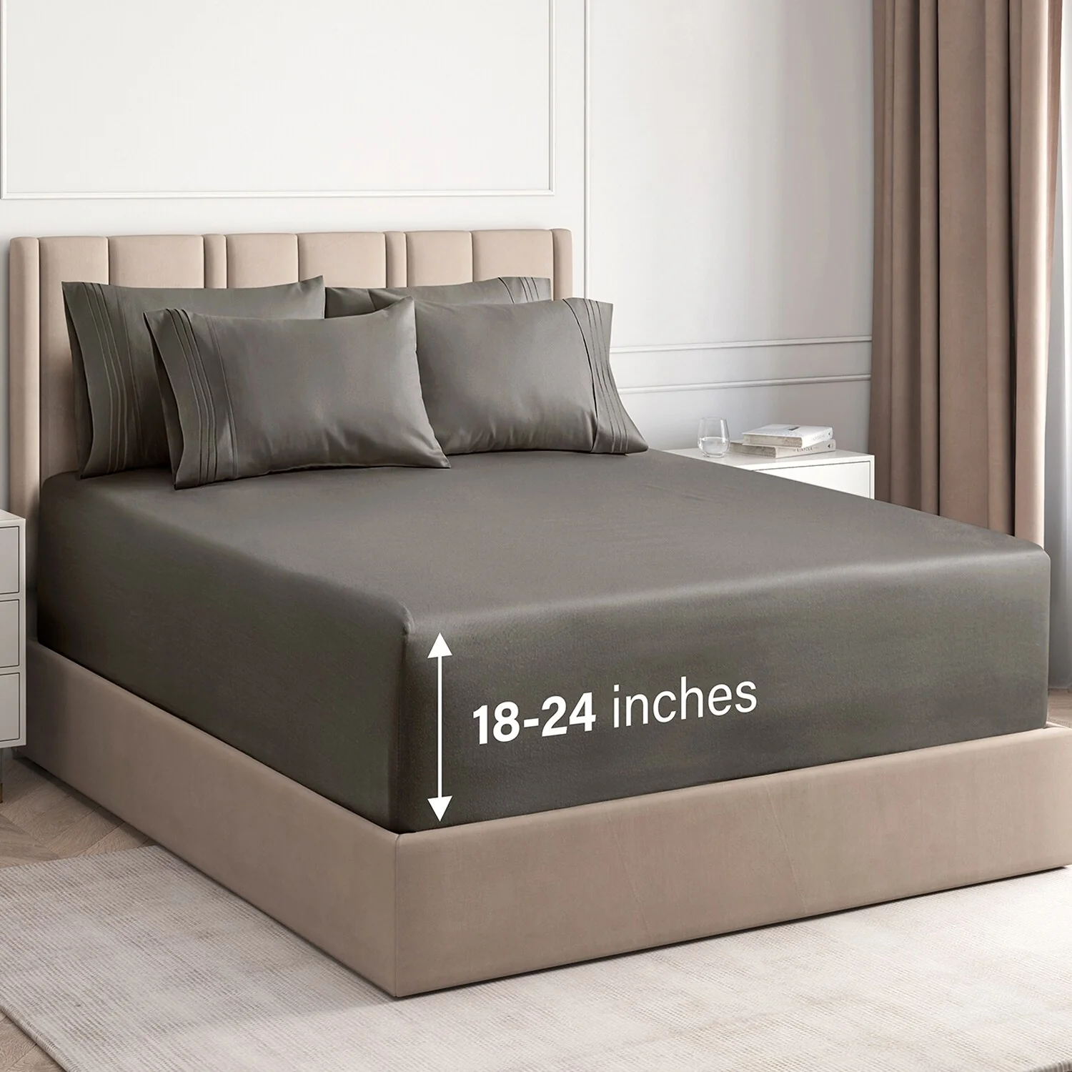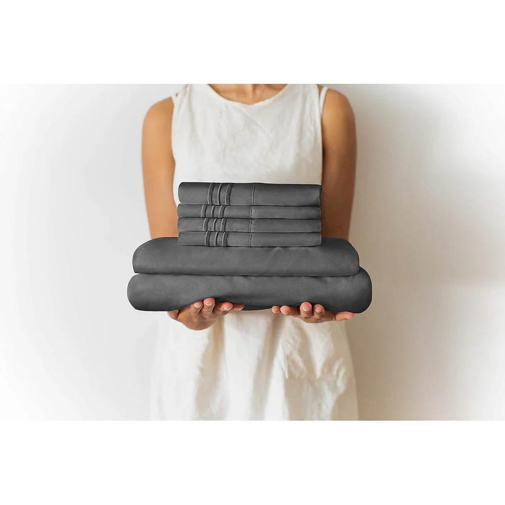 6 Piece Microfiber Sheet Set– Breathable & Cooling Sheets – Hotel Luxury Bed Sheets Set – Easy & Secure Fit – Soft, Wrinkle Free & Comfy Sheets Set