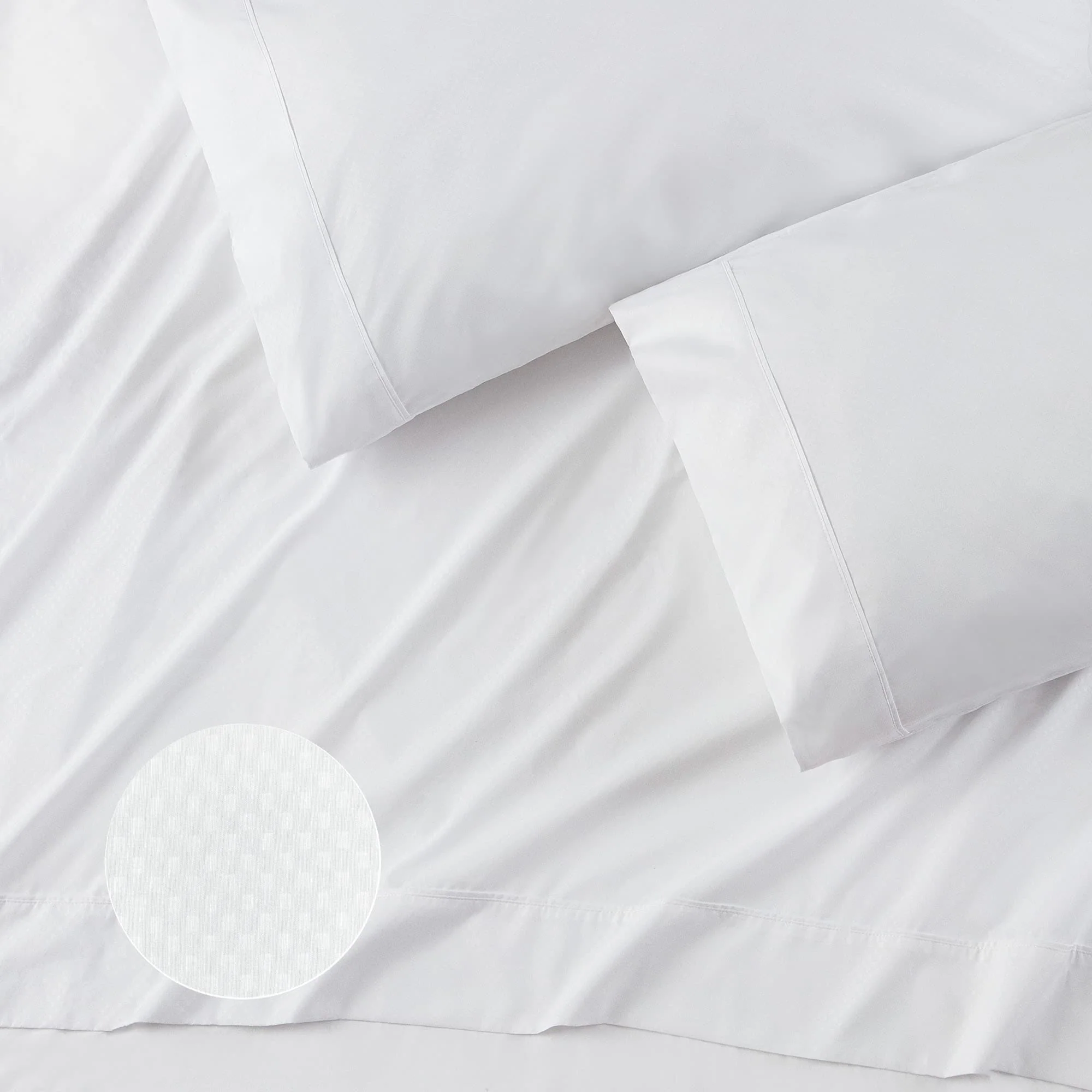 - Embossed checkered Pattern on Each Flat Sheet, Fitted Sheet, and Pillow Case Cover