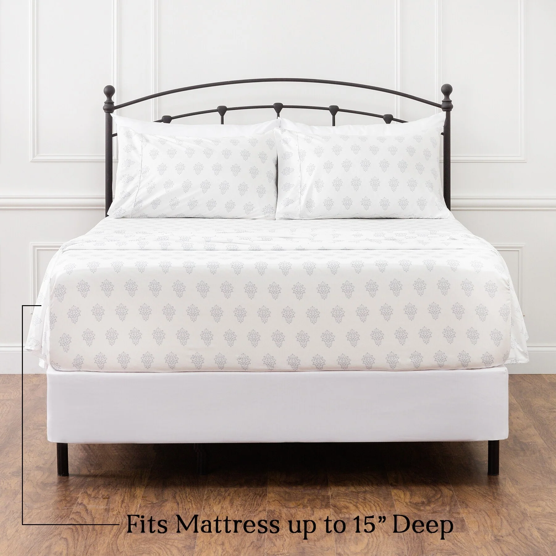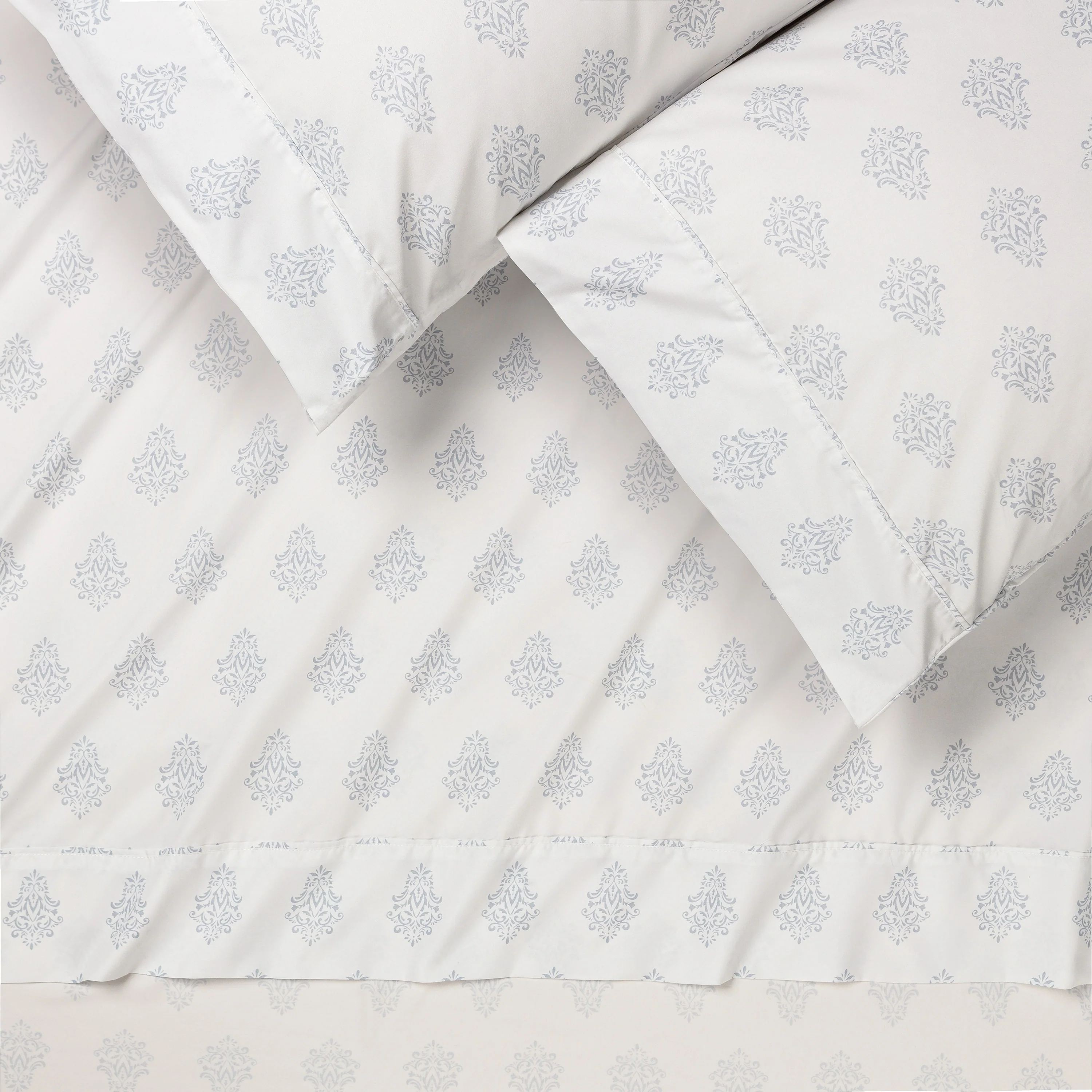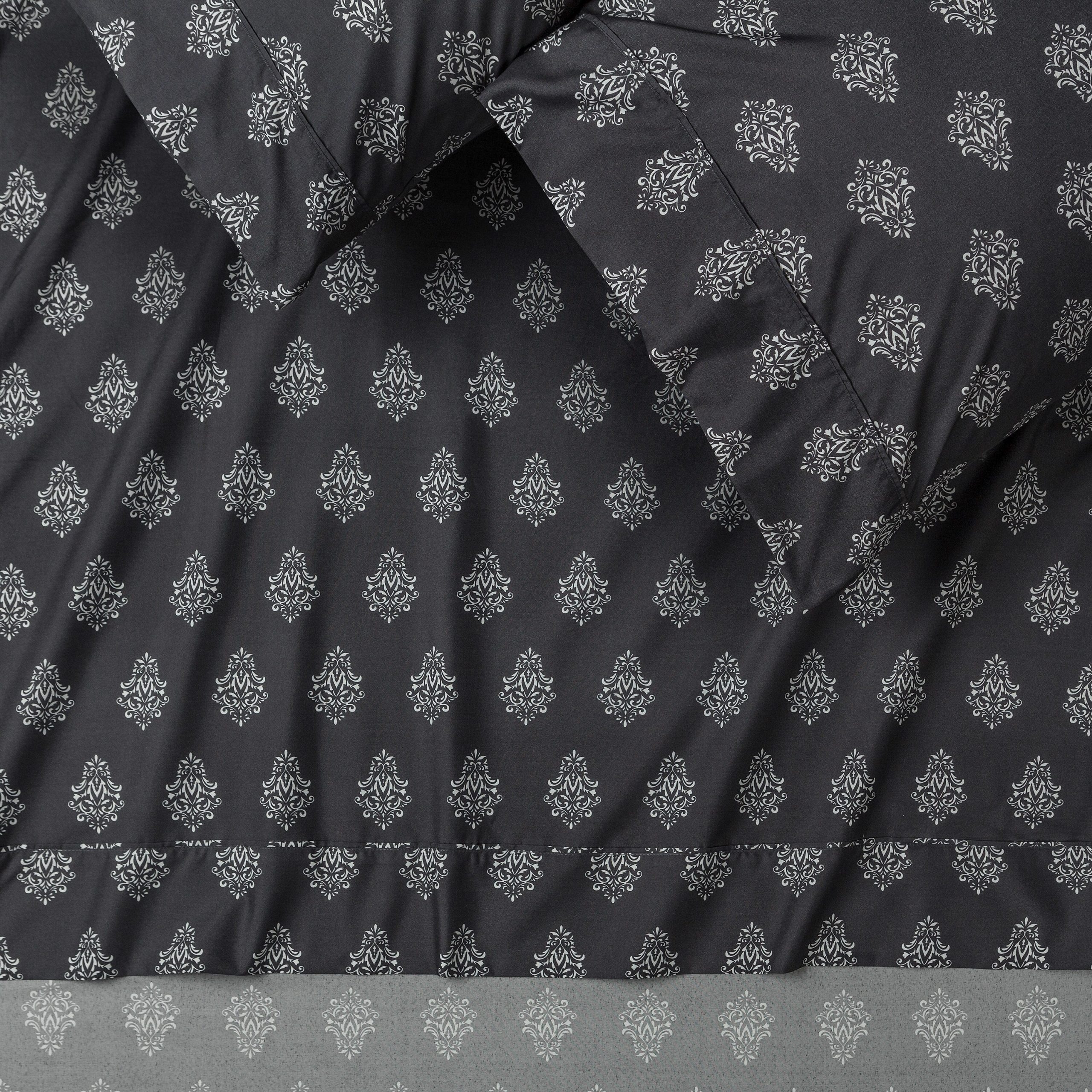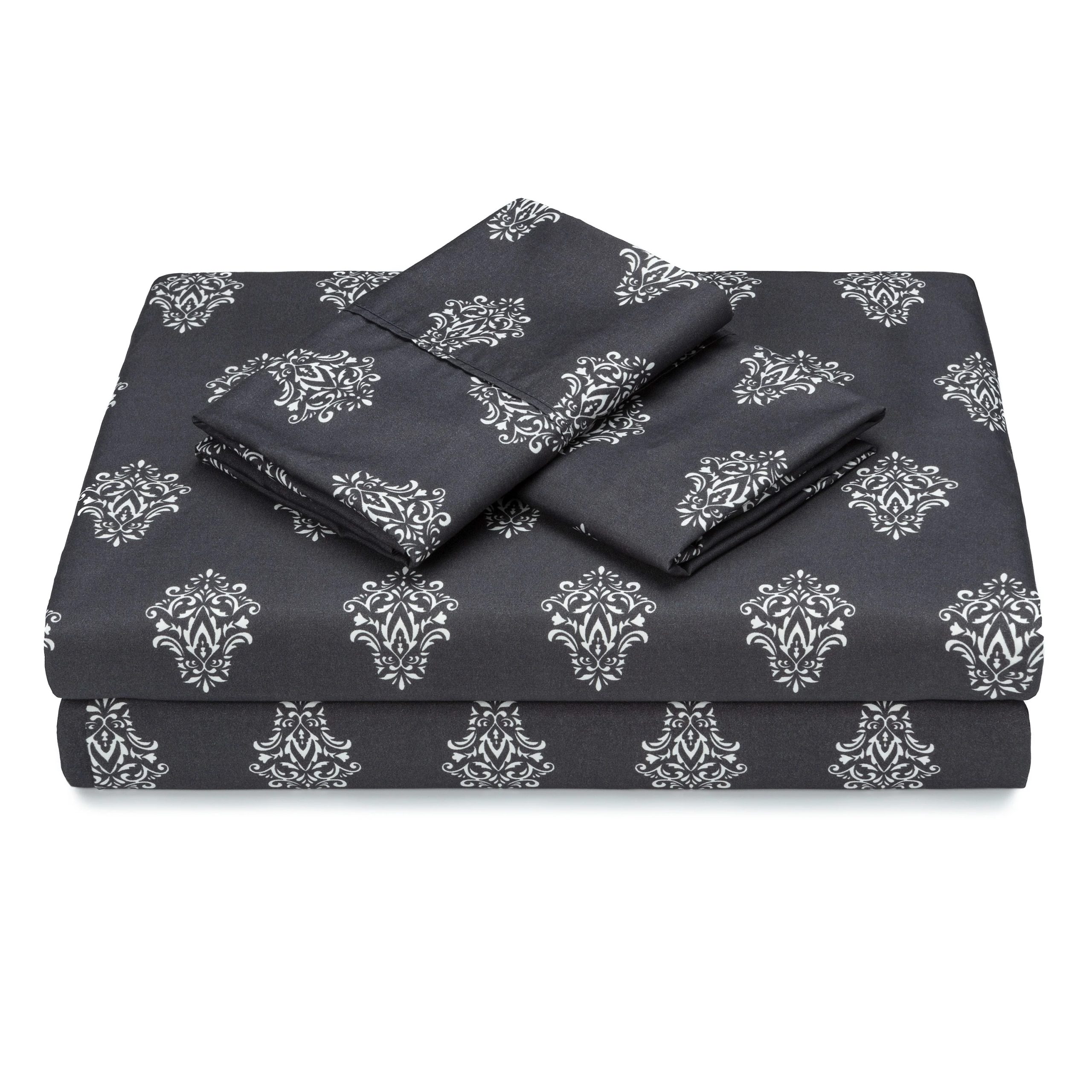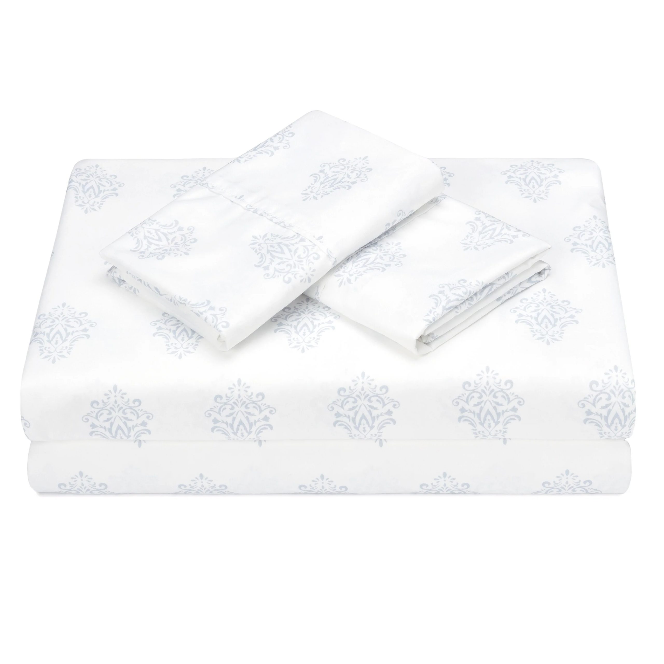 - Damask Print on Each Flat Sheet, Fitted Sheet, and Pillowcase Cover