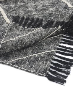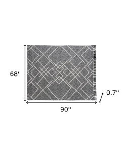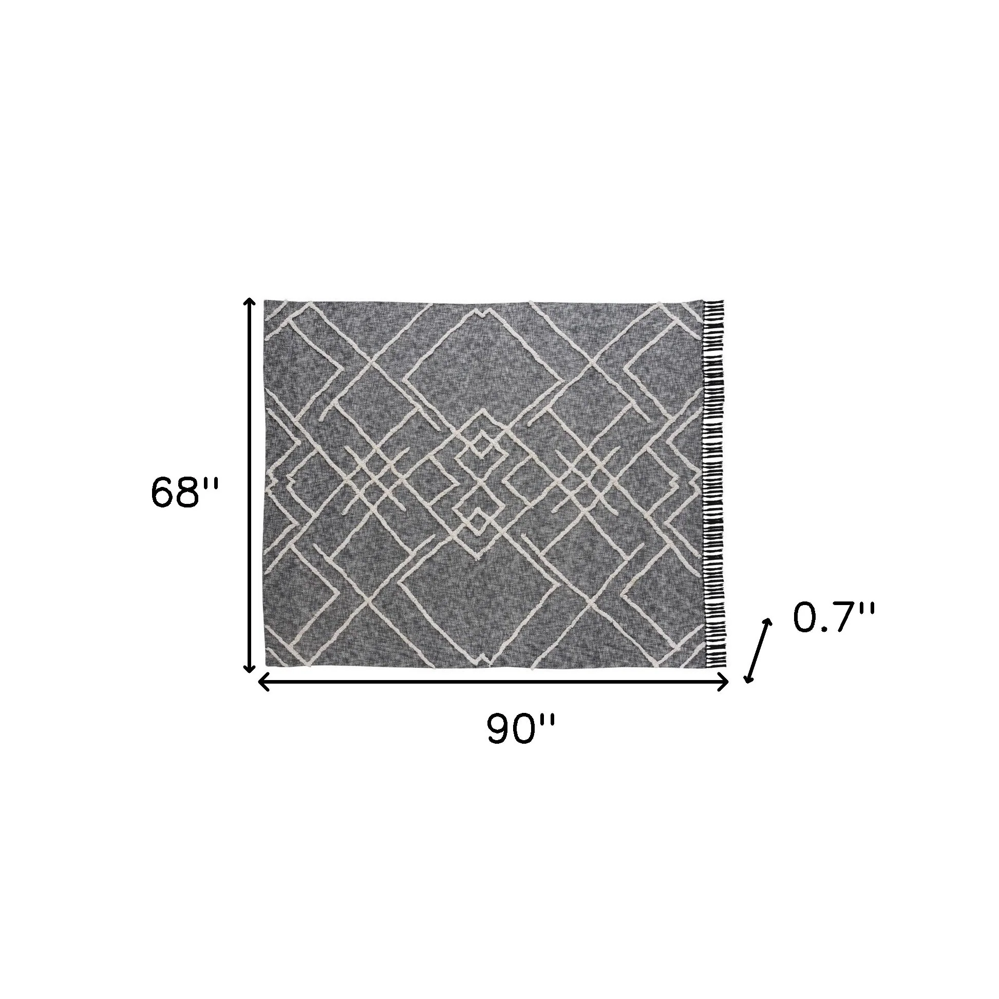 Charcoal and Off White Geometric Twin Cotton Coverlet With Fringe