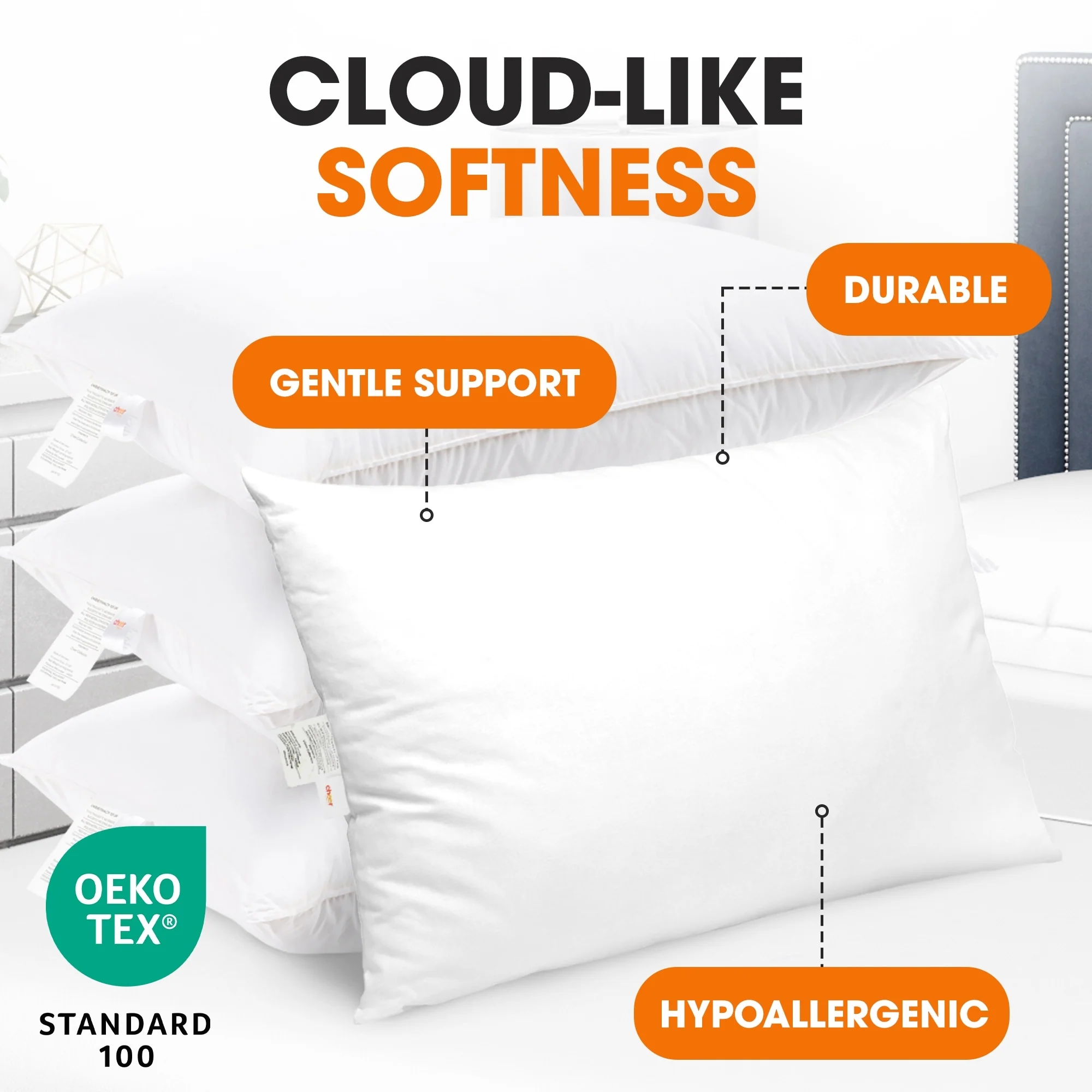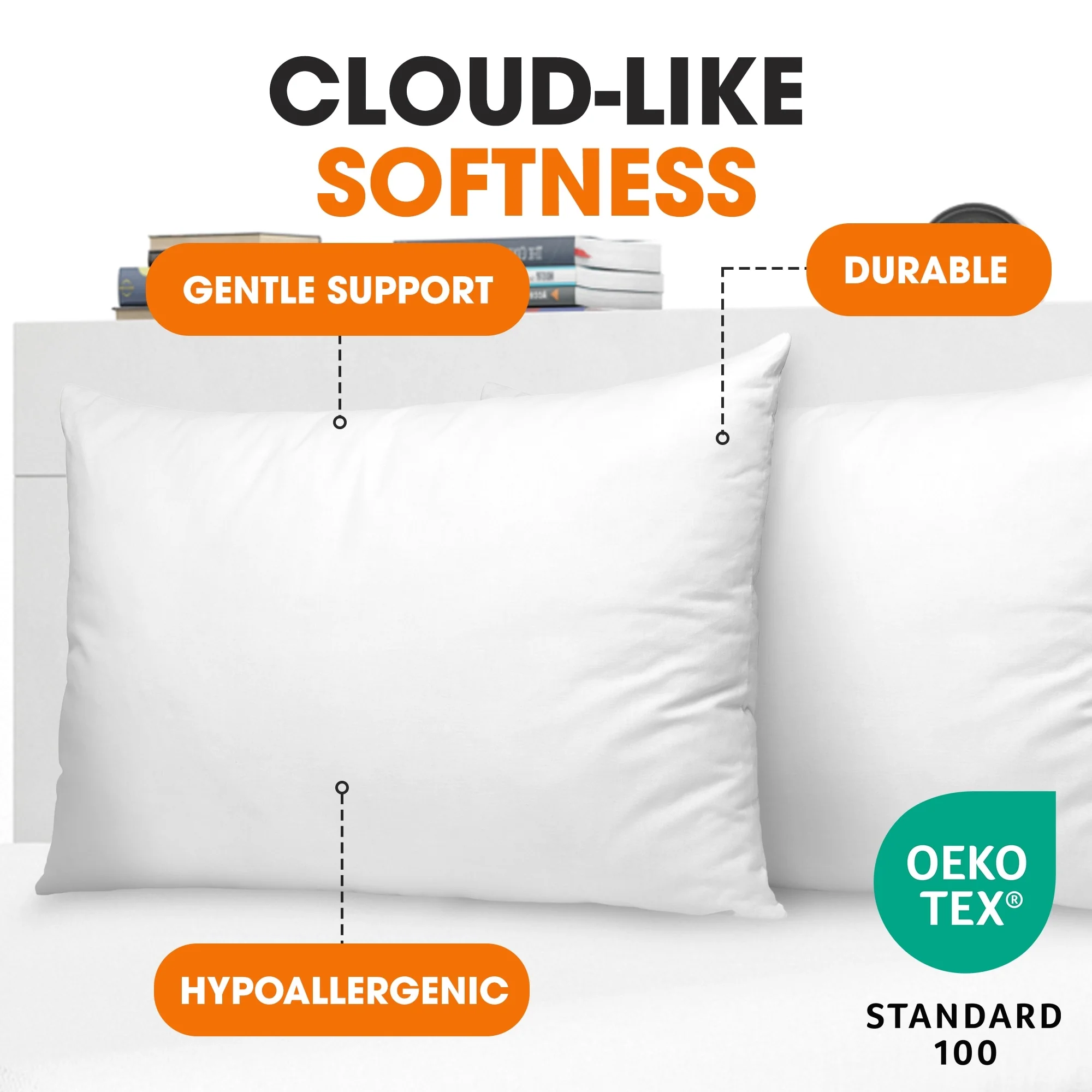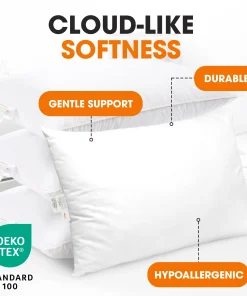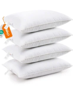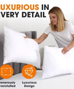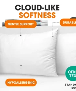 Experience comfort and sophistication with our plush bed pillows. Versatile for decoration or sleep, these pillows in sets of 2 or 4 seamlessly fit any space. The microfiber fabric ensures softness, and the hollow fiber filling provides the perfect balance of comfort and support. Machine-washable, hypoallergenic pillowcases protect against allergens, ensuring a fresh and cozy sleep experience. Premium pillowcases add elegance while prolonging pillow life.