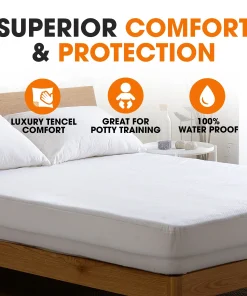 For a worry-free night of sleep, the Cheer Collection waterproof mattress pad has you and your mattress covered.The perfect blend of comfort and protection, this mattress topper is machine washable for easy care and has a knit skirt that fits up to an 18-inch mattress.