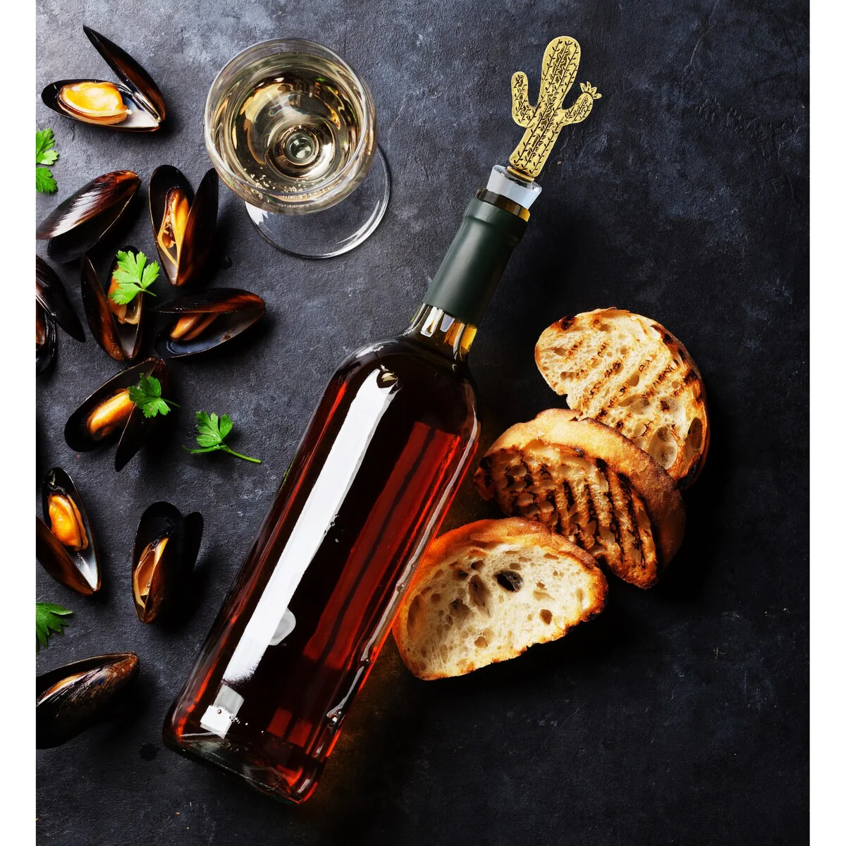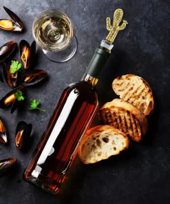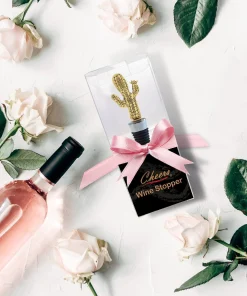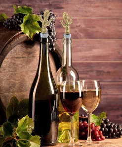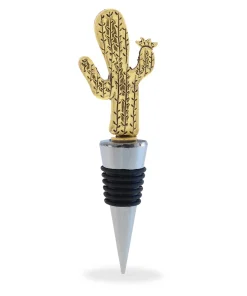 - HIGH-QUALITY WINE BOTTLE TOPPER ? Cactus metallic wine stopper is a stylish reusable elegant wine charm made of premium quality zinc alloy, designed for a leak-proof plug to keep your partially consumed vino tasty fresh for days. A compact, sturdy, and reliable craftsmanship cactus charm with embossed metal details for a fancy look. Air-tight golden cactus-shaped bottle sealer is built with food-grade rubber materials, safe, & effective sealer.