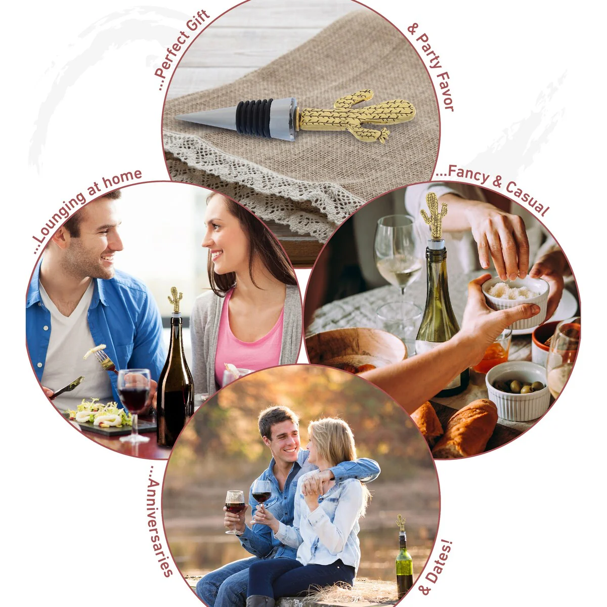 - THE CUTE WINE STOPPER IS FOR WINE ENTHUSIASTS ? Perfect gift for wine lovers to keep their favorite blend preserved for days. The practical design with playful craftsmanship will dazzle guests during parties & make excellent decor for any kitchen, dining and bar setting. The metal cactus bottle accessory is packaged in a PVC box for easy gifting! A great giveaway for housewarming parties, weddings & any celebrations that are worthy of a toast!