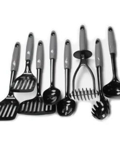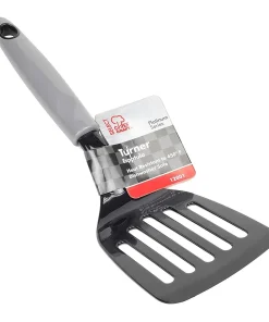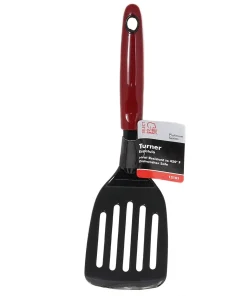 The Chef Craft 11" Select Nylon Short Slotted Turner Spatula is a versatile kitchen tool that is perfect for flipping and serving various foods. Its short and compact design allows for easy storage and use. Made of high-quality nylon, this spatula is heat resistant up to 450 degrees Fahrenheit, ensuring durability and safety during cooking. Its slotted head design is ideal for use with nonstick pans, as it prevents scraping or damaging the coating. With its comfortable size, this spatula is easy to handle and maneuver, making cooking a breeze.