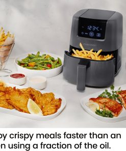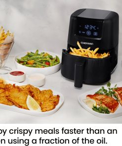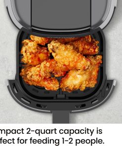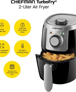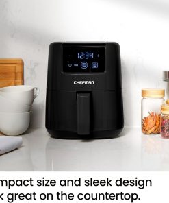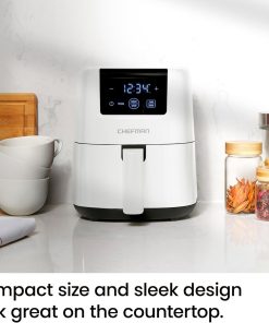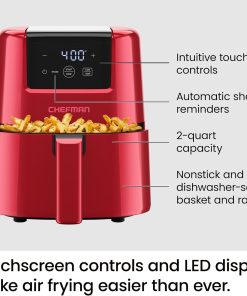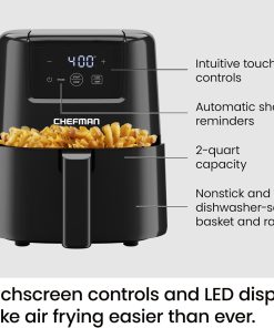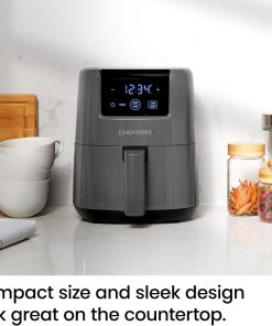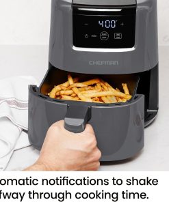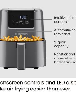 CHEFMAN 2 Qt Mini Air Fryer – Digital Space-Saving Compact Air Fryer with Nonstick and Dishwasher Safe Basket, Quick & Easy Meals in Minutes, Features Digital Timer and Shake Reminder – Grey