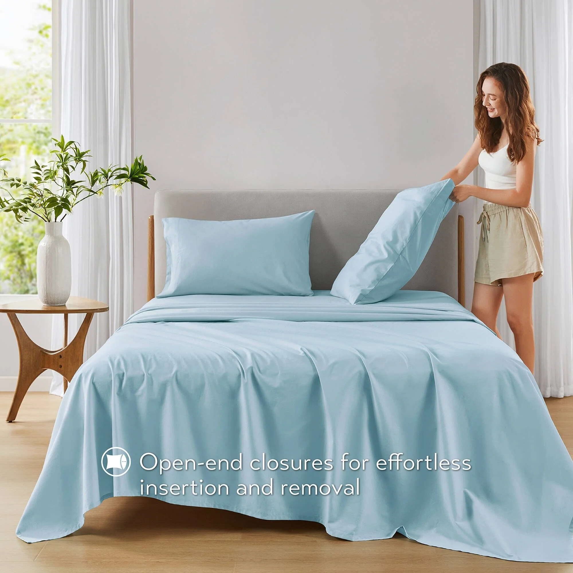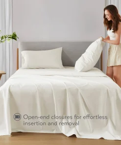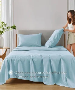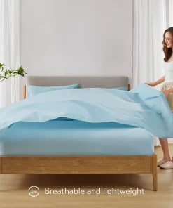 Providing a relaxing night’s sleep, these soft and smooth 100% cotton sheets ensure you have a well-rested experience all year long. These are also OEKO-TEX certified, meaning they do not contain any harmful substances or chemicals, ensuring quality comfort and wellness. Machine washable for easy care.