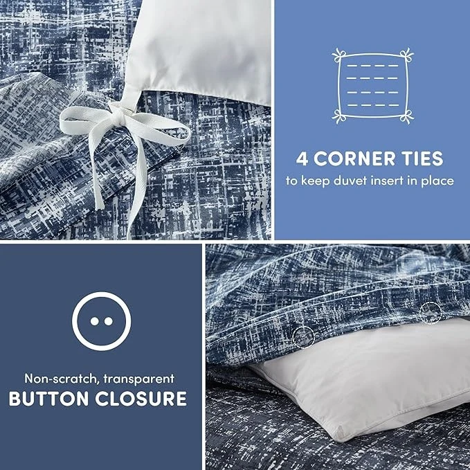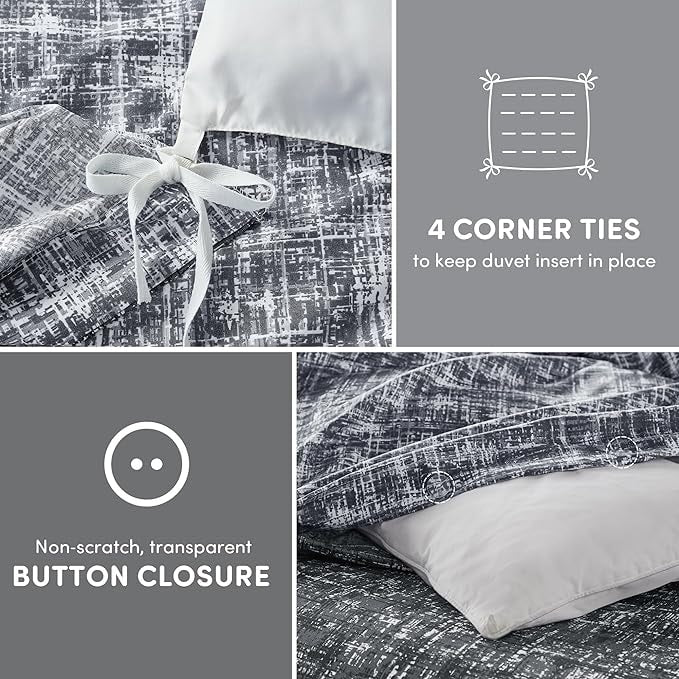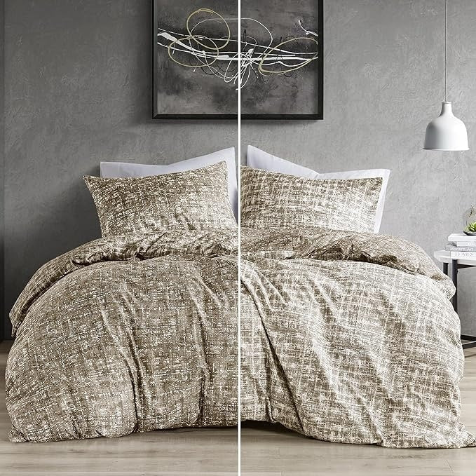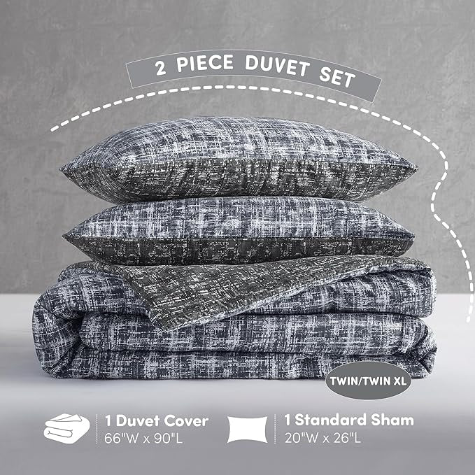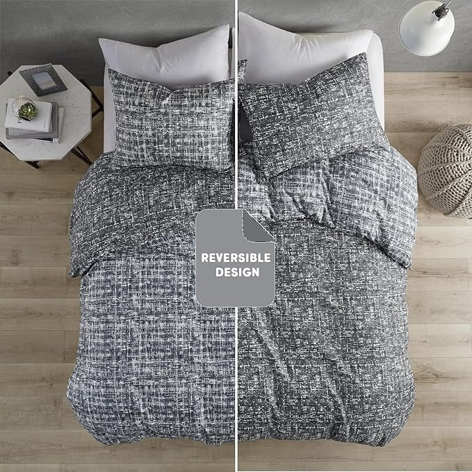 Step into the realm of modern sophistication with our Trendy Reversible bedding Set. This refined ensemble showcases a chic visual texture print that adds depth and dimension to your decor. Experience the ease of transformation with our Reversible Design. A simple flip of the cover or pillow shams breathes new life into your interior decor. The versatile all season lightweight and breathable design will keep you snug and stylish throughout the year. Our bedding is machine washable, offering the convenience of easy care.