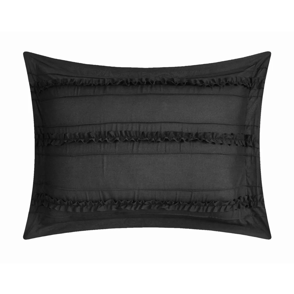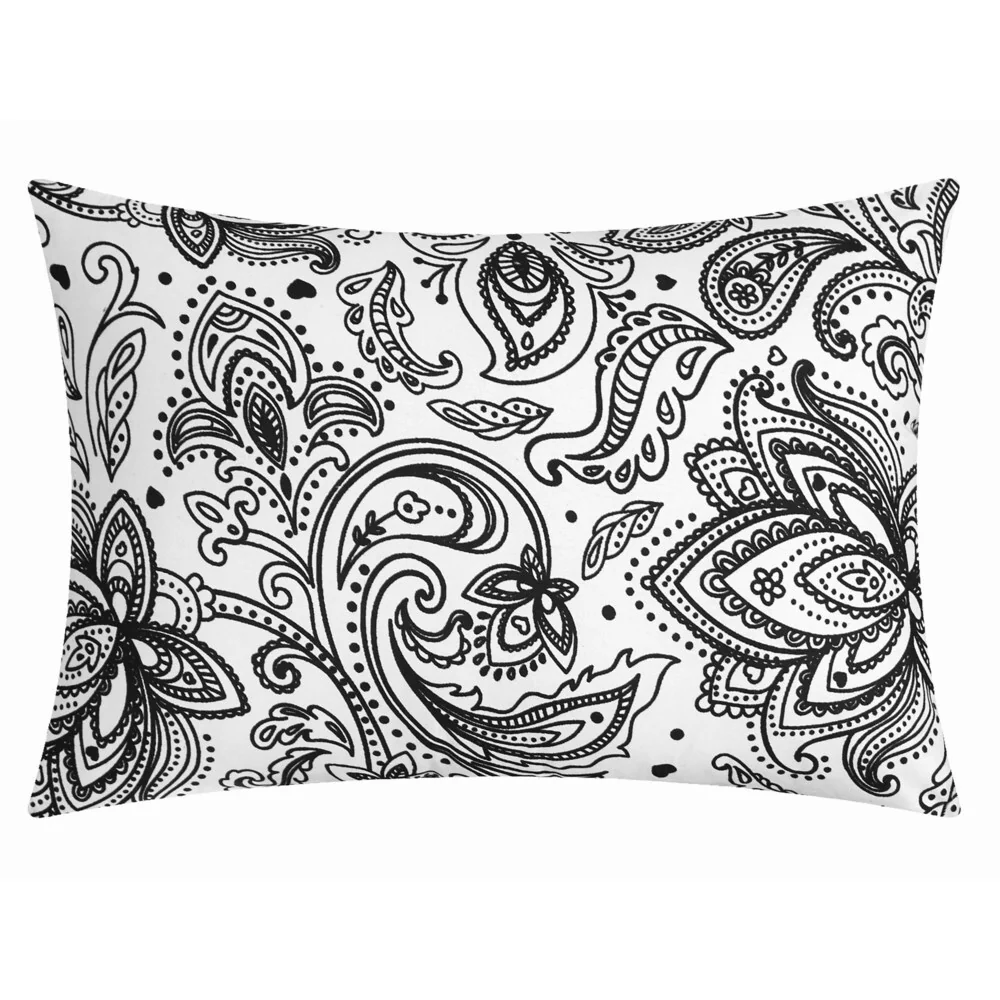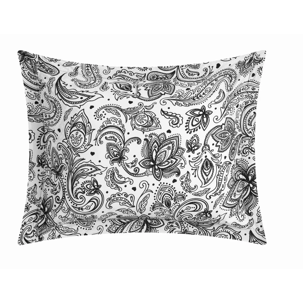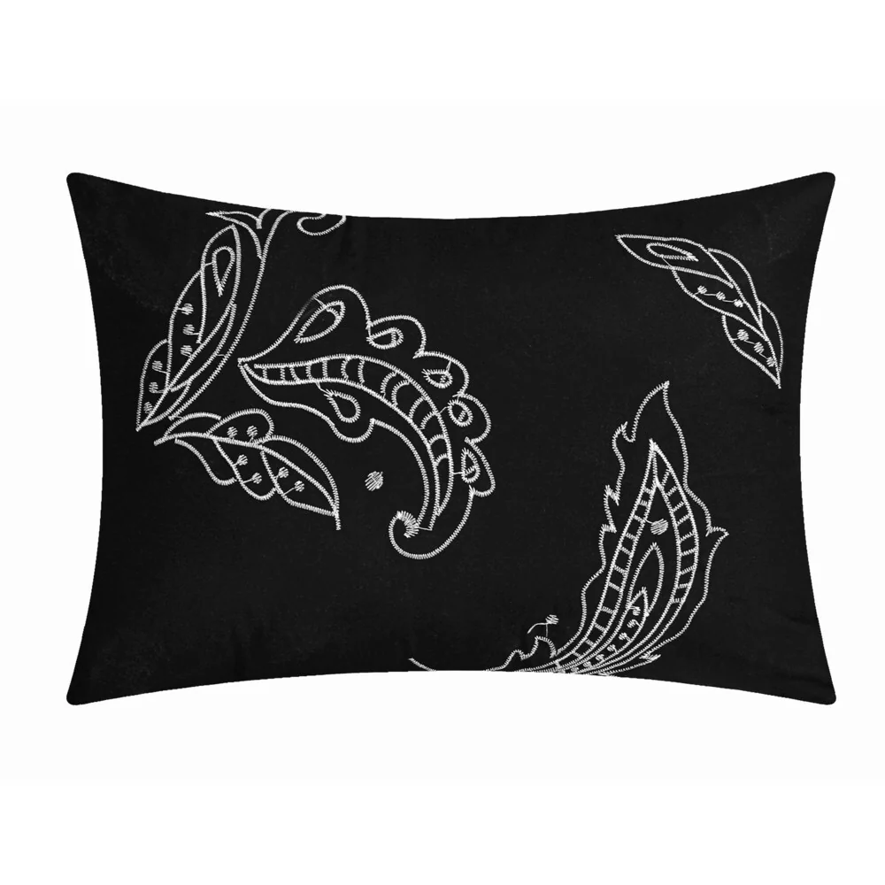 Upgrade the sophistication level of your bedroom with this Atticus four-piece duvet cover set from Chic Home. Solid black reverses to a classic paisley floral print on the other side, allowing a refreshing change on a moment’s whim. Ruffled accenting adds vintage charm, while the included decorative pillow features an embroidered design to complement the duvet and shams.