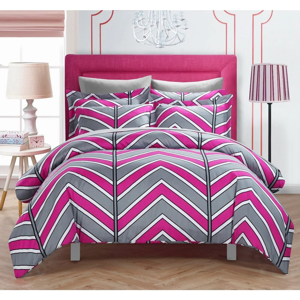 Enjoy both style and versatility with this chic Bed in a Bag Set featuring a duvet cover, sham set and sheet set. Made from super soft brushed microfiber fabric, This geometric duvet set displays a simple yet elegant fretwork design and a reverse color option that allows you to instantly transform your bedroom decor.
