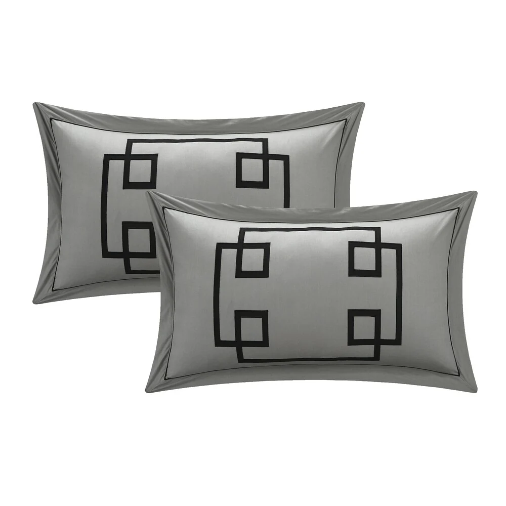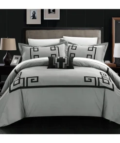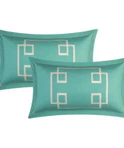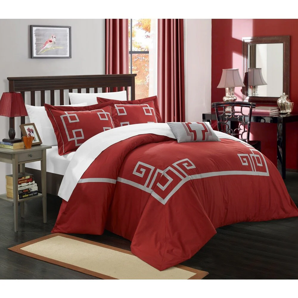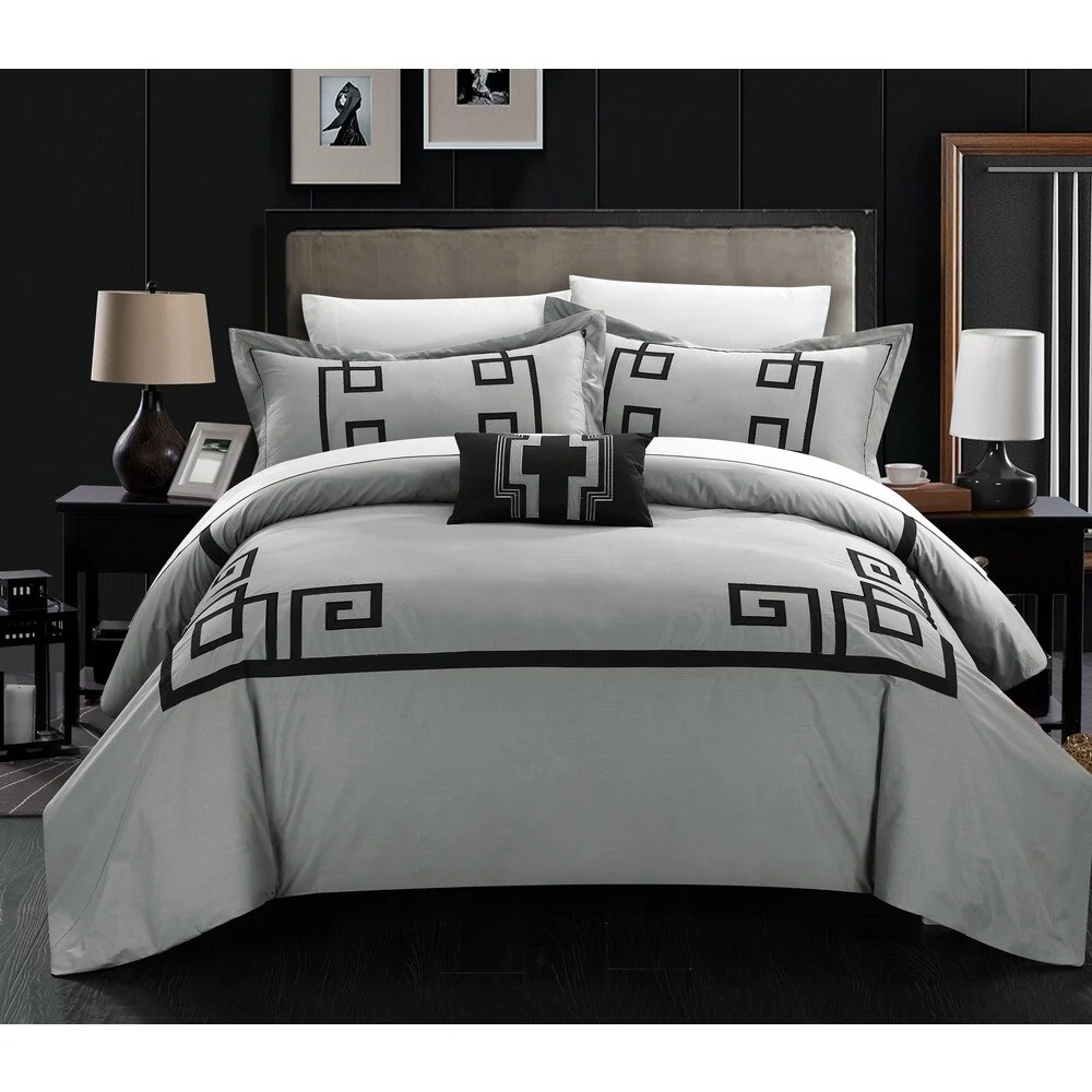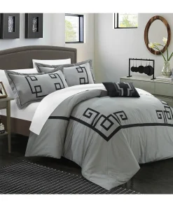 Create a colorful bedroom look with this Chic Home Downton four-piece duvet set. Featuring geometric patterns for contemporary charm, this duvet set has embroidered details on the pillow for visual texture. Crafted from 100-percent cotton with a thread count of 200 for superior comfort, this duvet set is machine washable for fuss-free care.