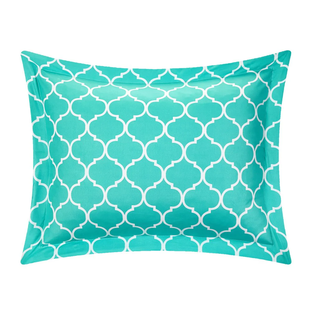 - Number of pieces in set (Queen/King): Nine (9) pieces (One (1) Printed Duvet, Two (2) Shams, One (1) Solid Flat Sheet, One (1) Solid Fitted Sheet, Two (2) Printed Pillow Case, Two (2) Solid Pillow Case)