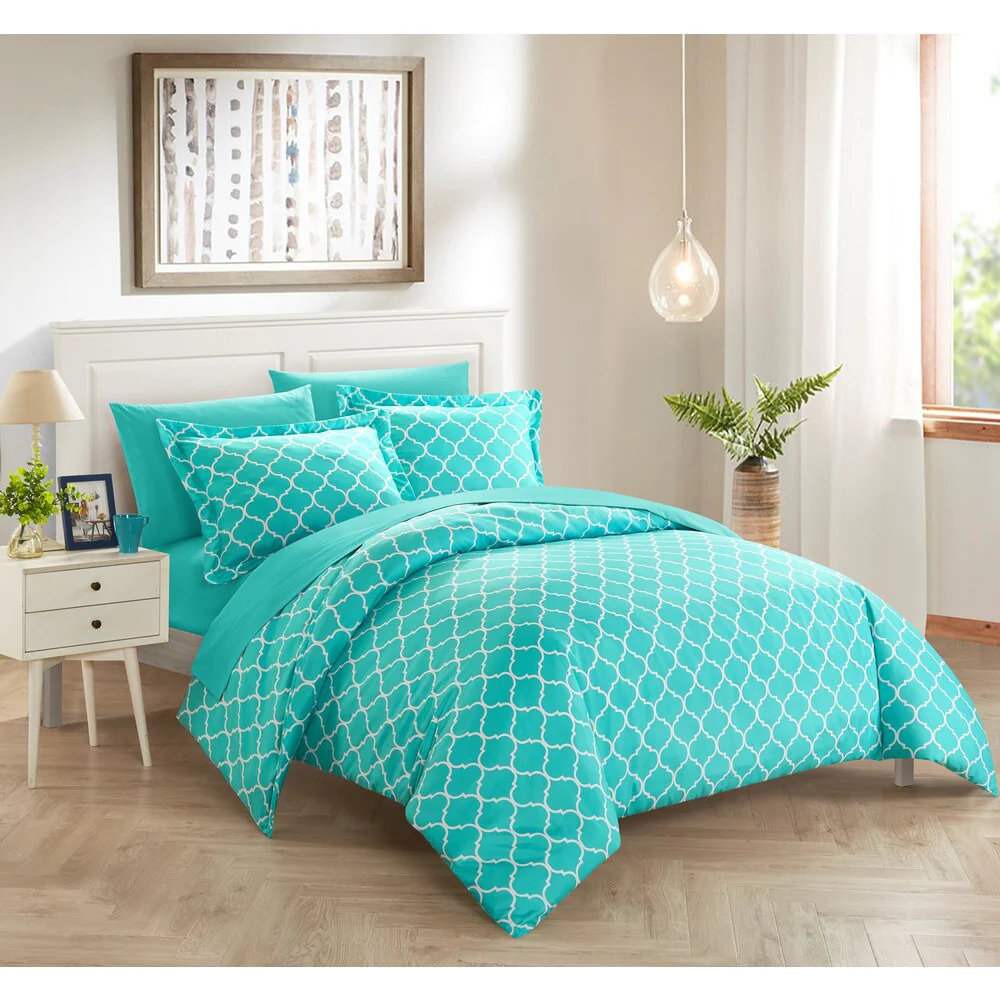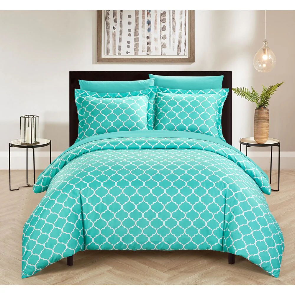 Enjoy both style and versatility with this chic reversible Duvet Cover and Shams Set. Made from super soft brushed microfiber fabric, This geometric duvet set displays a simple yet elegant fretwork design and a reverse color option that allows you to instantly transform your bedroom decor.