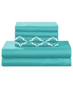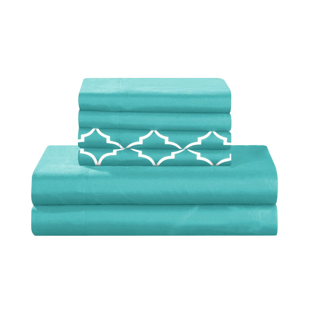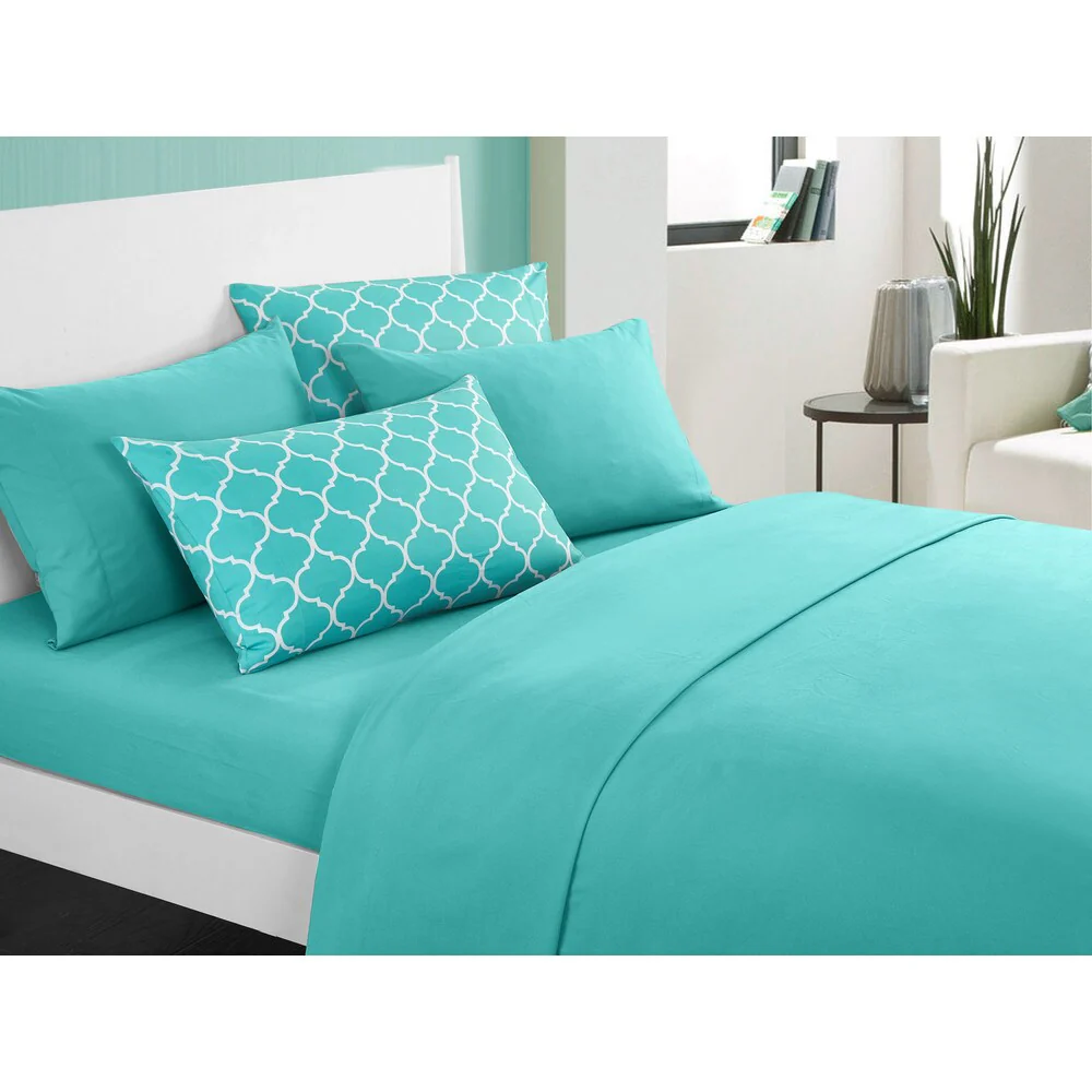 - Number of pieces in set (Twin): Six (6) pieces (One (1) Printed Duvet, One (1) Sham, One (1) Solid Flat Sheet, One (1) Solid Fitted Sheet, One (1) Printed Pillow Case, One (1) Solid Pillow Case)