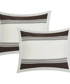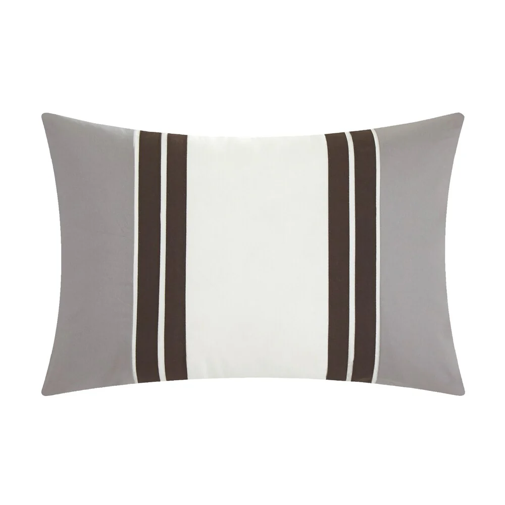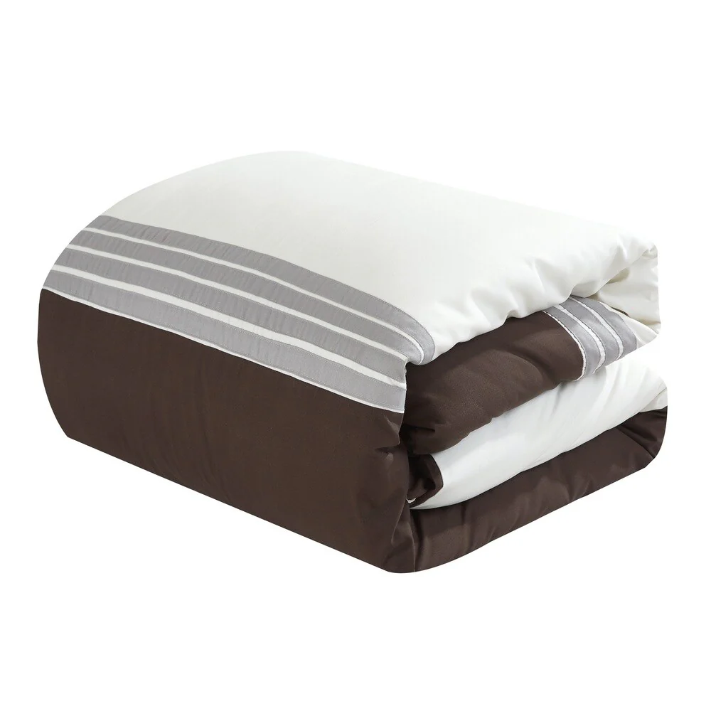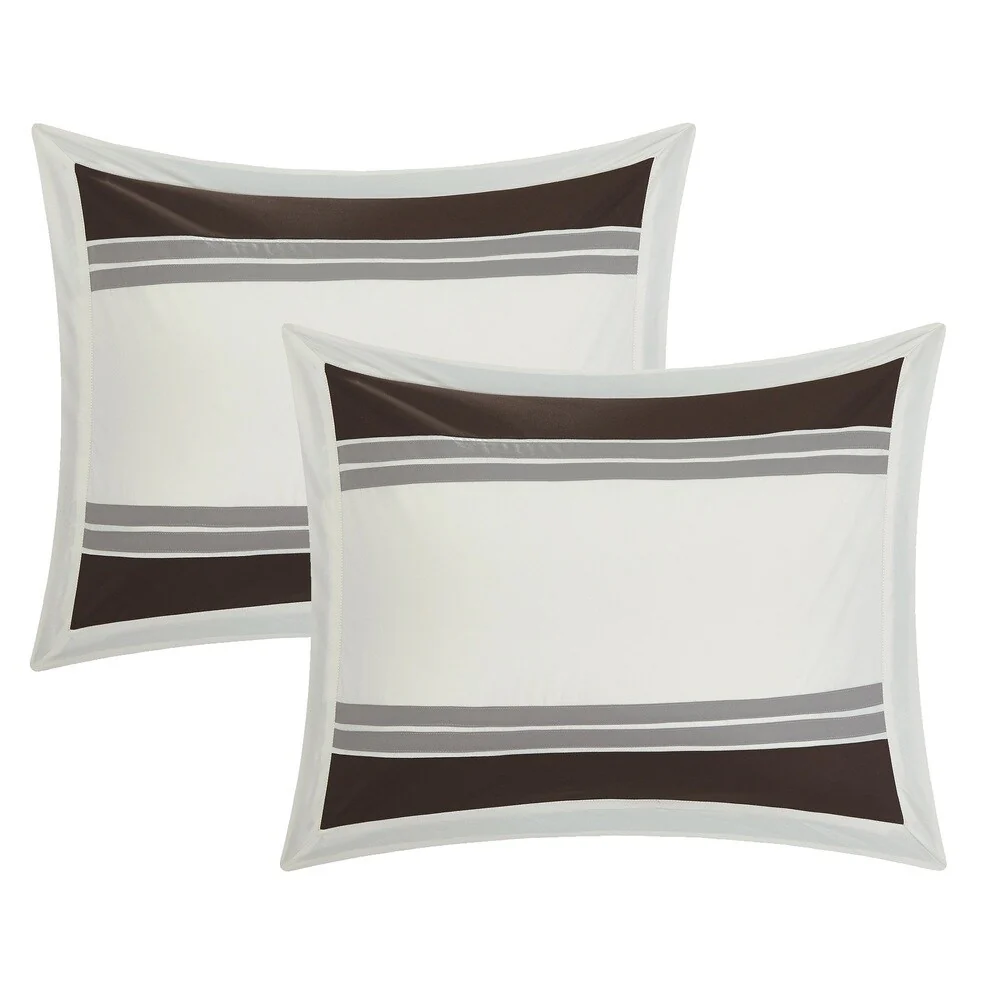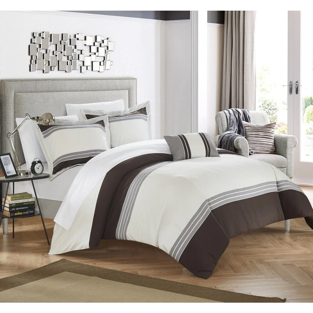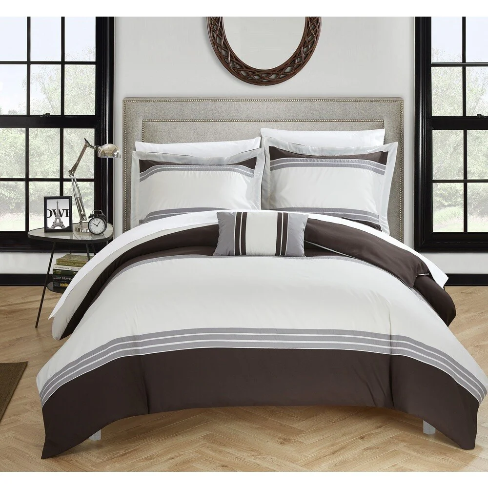 Luxury Bedding Color Block Collection. Enjoy a simple color block look which accents 3 colors to bring this ensemble to life. This set provides a sophisticated banding technique which has bands sewn to add 3D contrast to the detail of the Duvet Set. Elegant rich tones and Color Block bedding is a great way to simply accent and enhance your bedroom decor. Decorative Pillow included for added luxury.