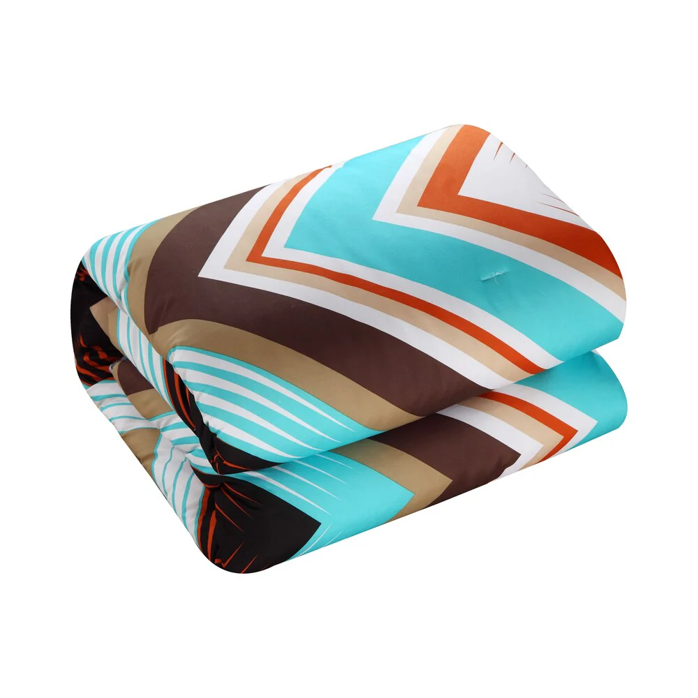 - Set includes: One (1) comforter, one (1) fitted sheet, one (1) flat sheet, two (2) shams (one with twin), two (2) pillowcases (one with twin), one (1) decorative pillow, one (1) throw blanket