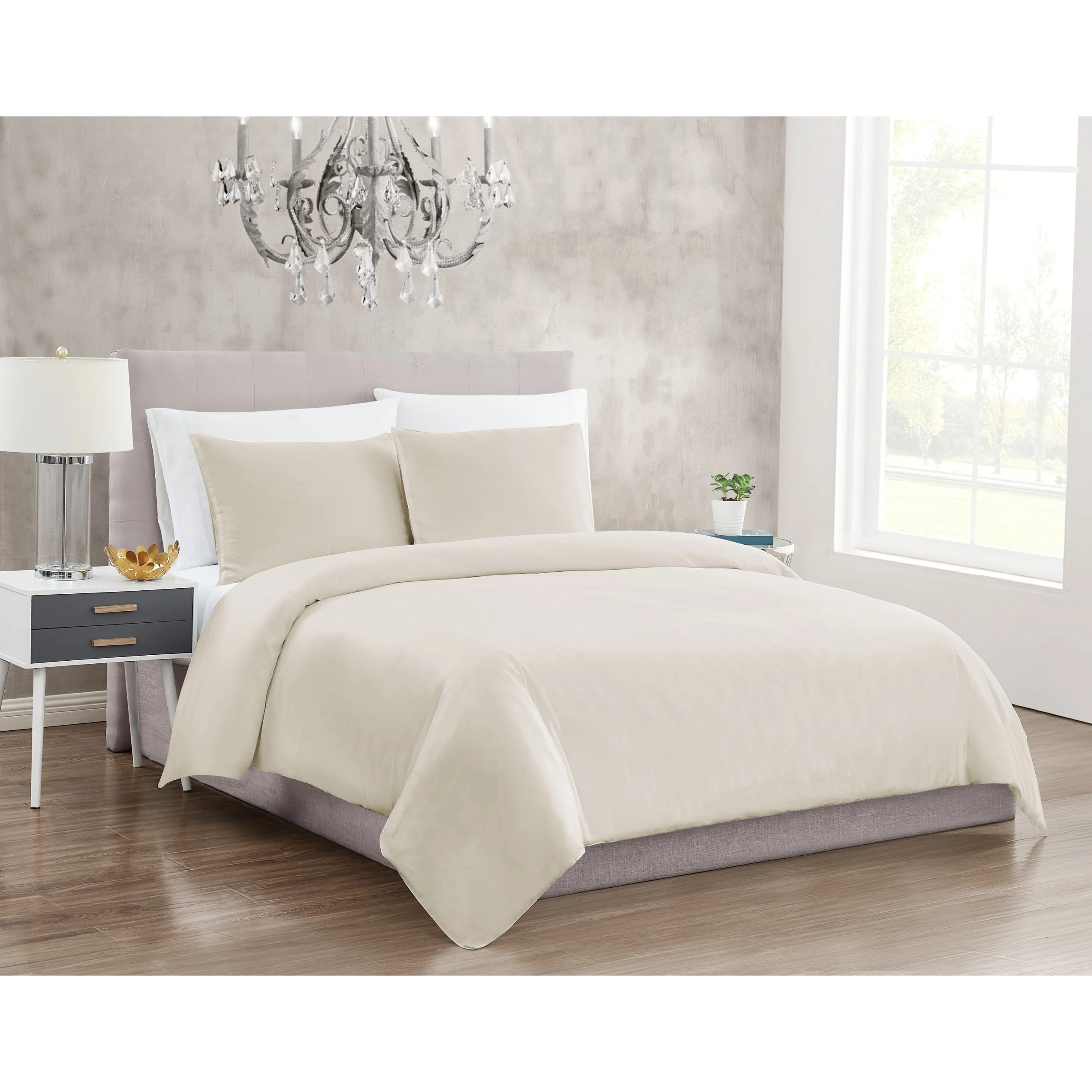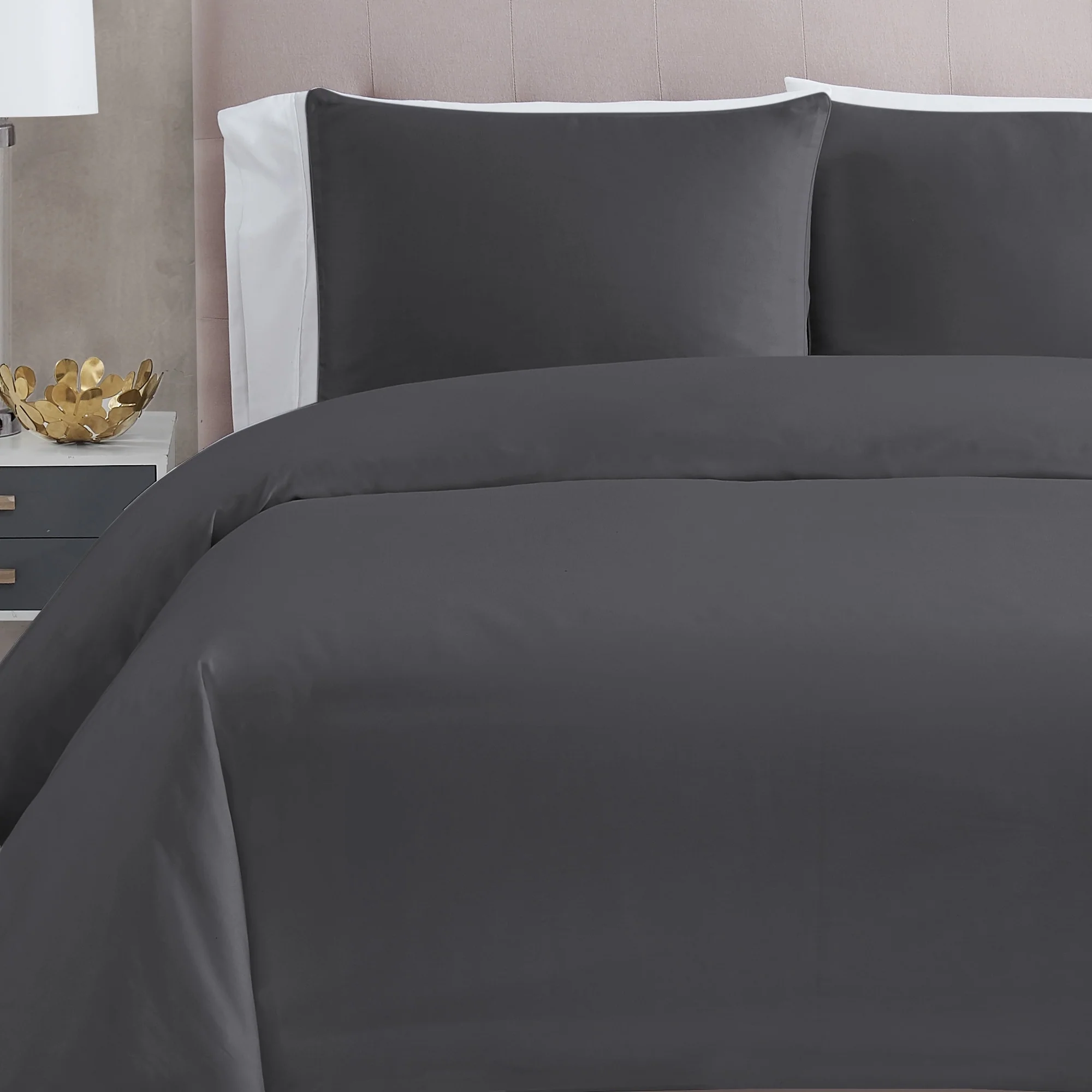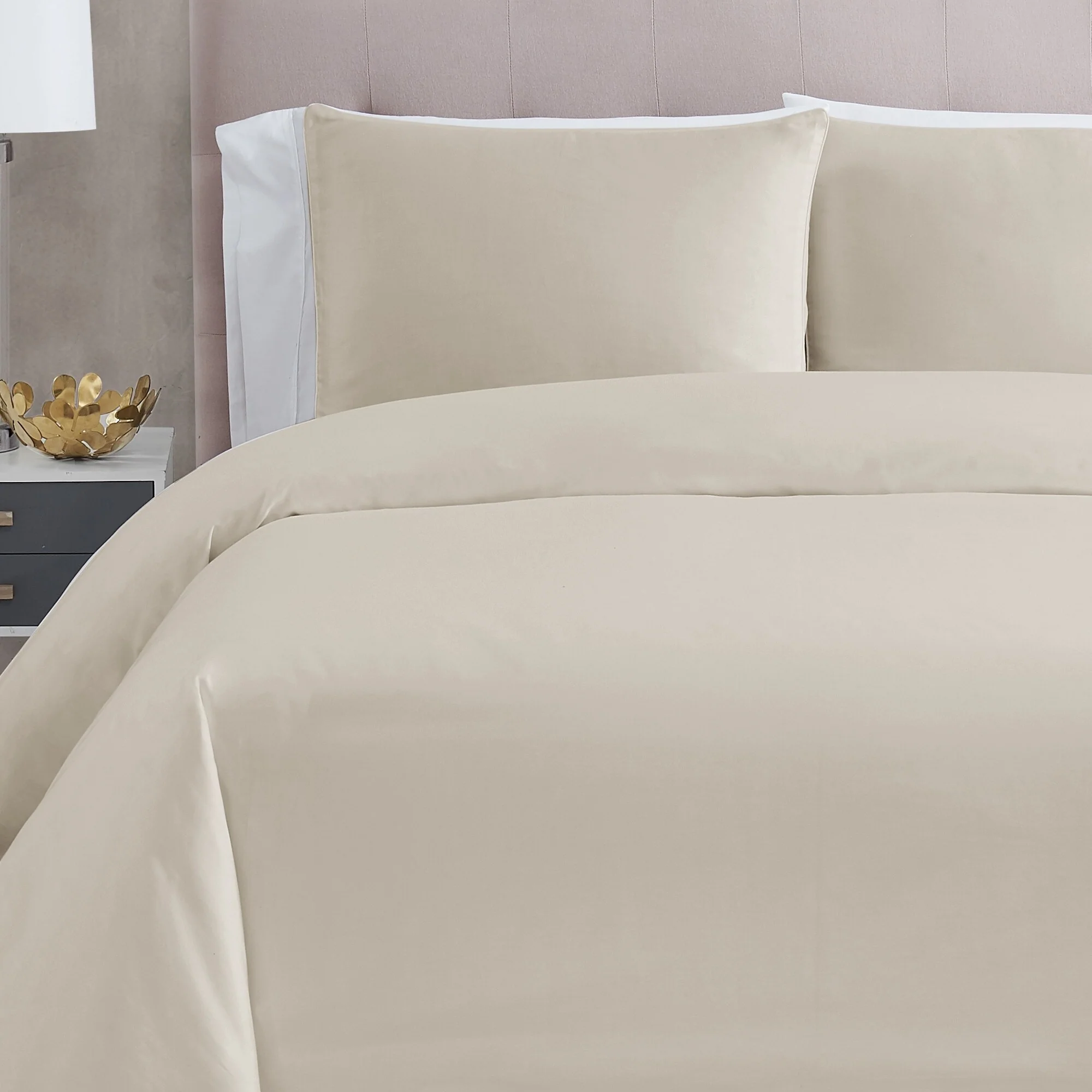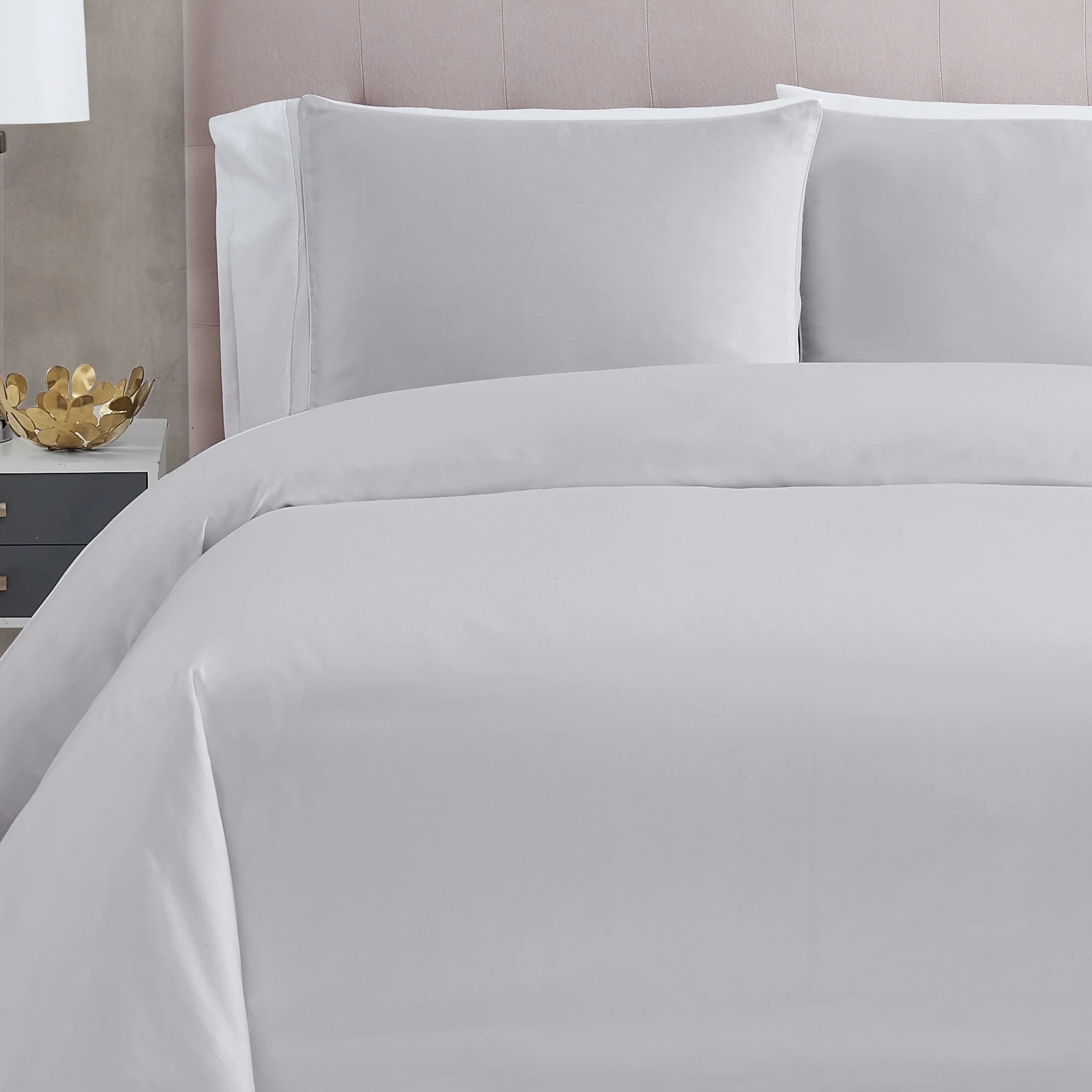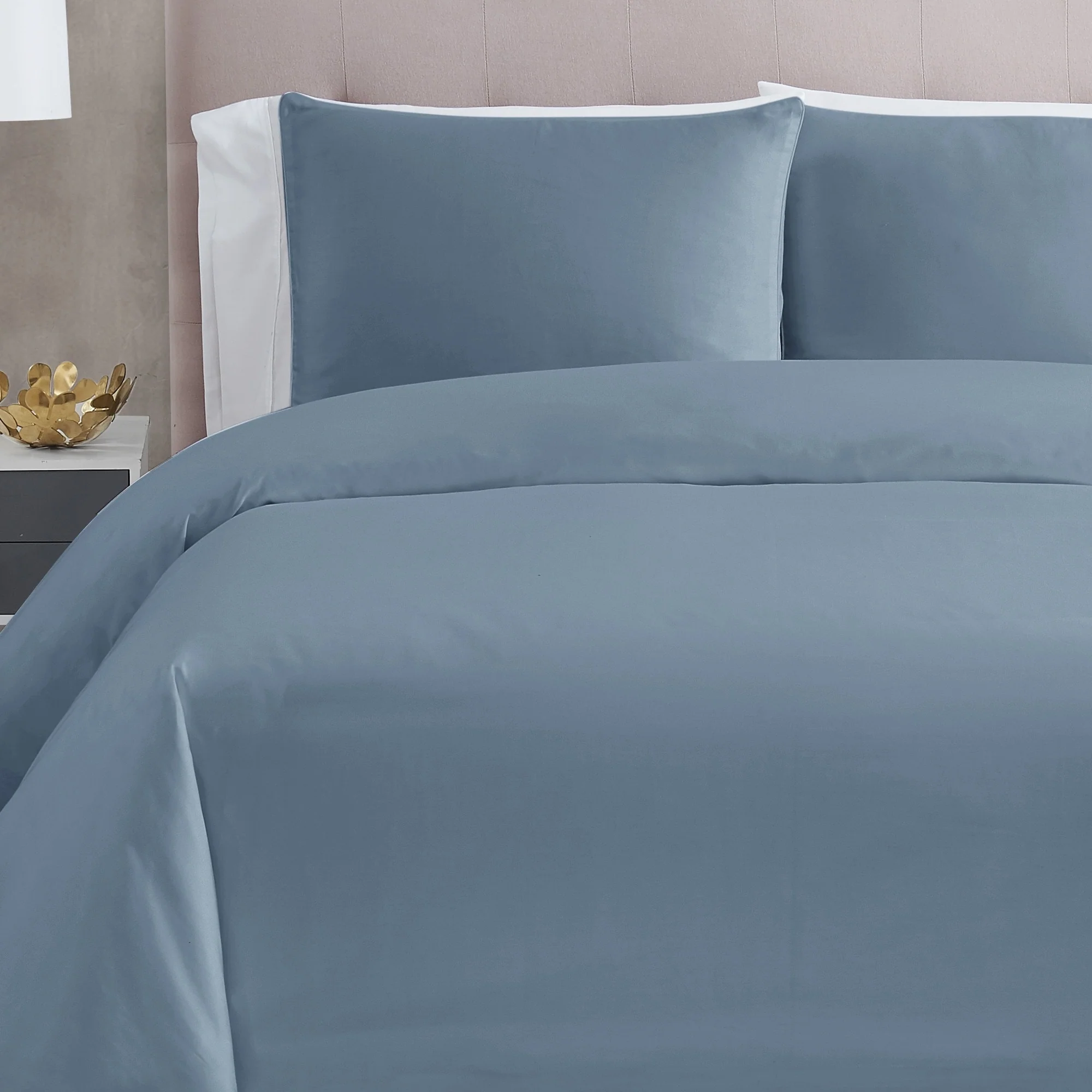 Enhance the idea of comfort with this 300 thread count cotton sateen duvet set. This fabric is made from long-fiber woven threads that create a silky, soft and smooth feel that will wear well over time. This duvet has corner ties to secure the comforter insert in place. With a variety of colors offered and a sensational yet subtle sheen, this collection is guaranteed impress. Duvet features corner ties and a button enclosure. Comforter filler not included. This fabric is 100% cotton sateen. This item is machine washable, but please be sure to use appropriate sized machinery to avoid any excess wear on the items and maintain softness. This item is imported from India.