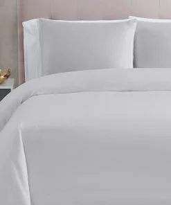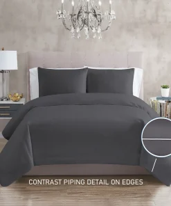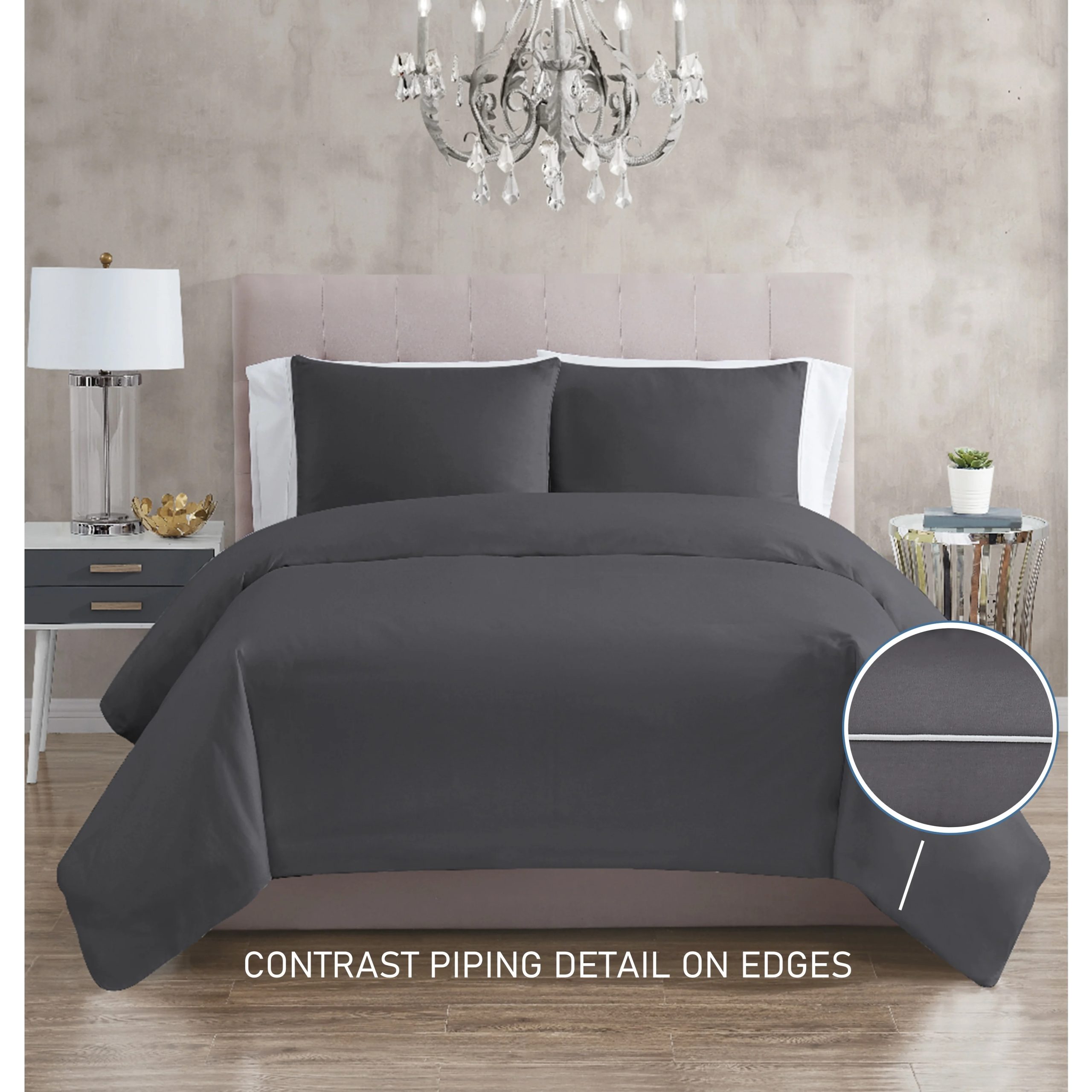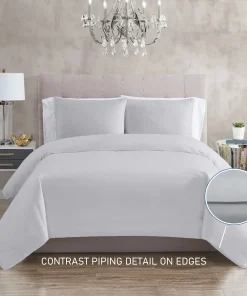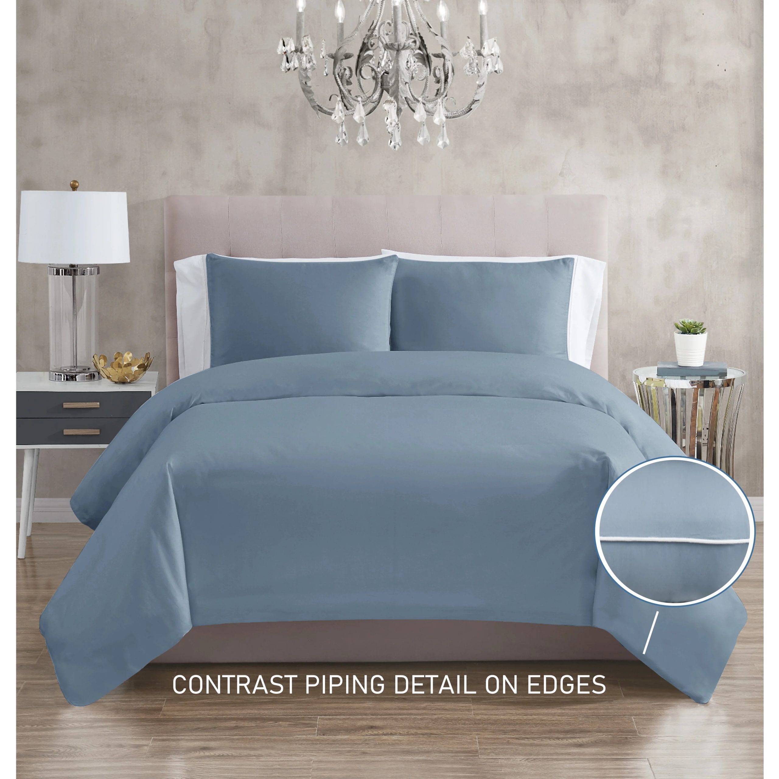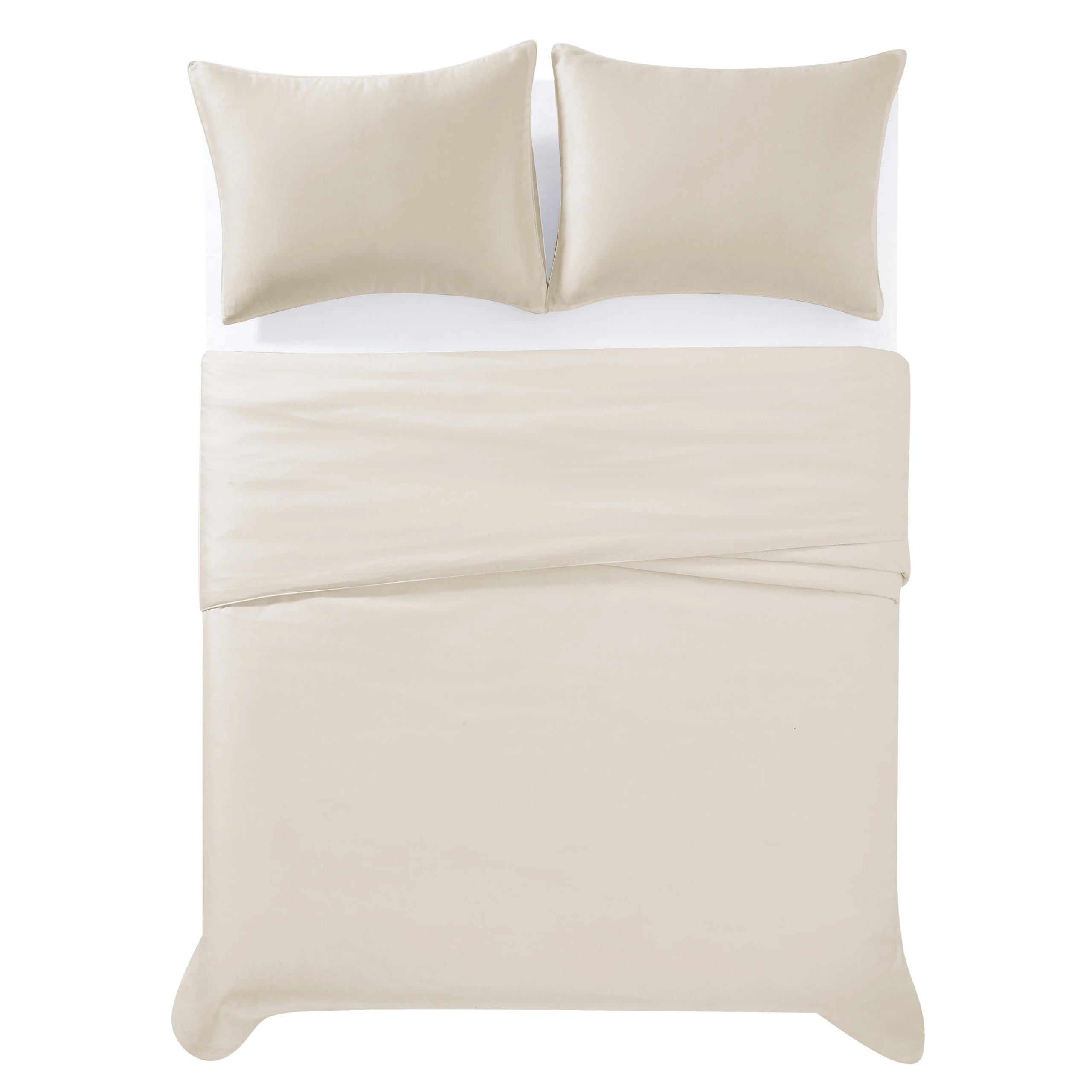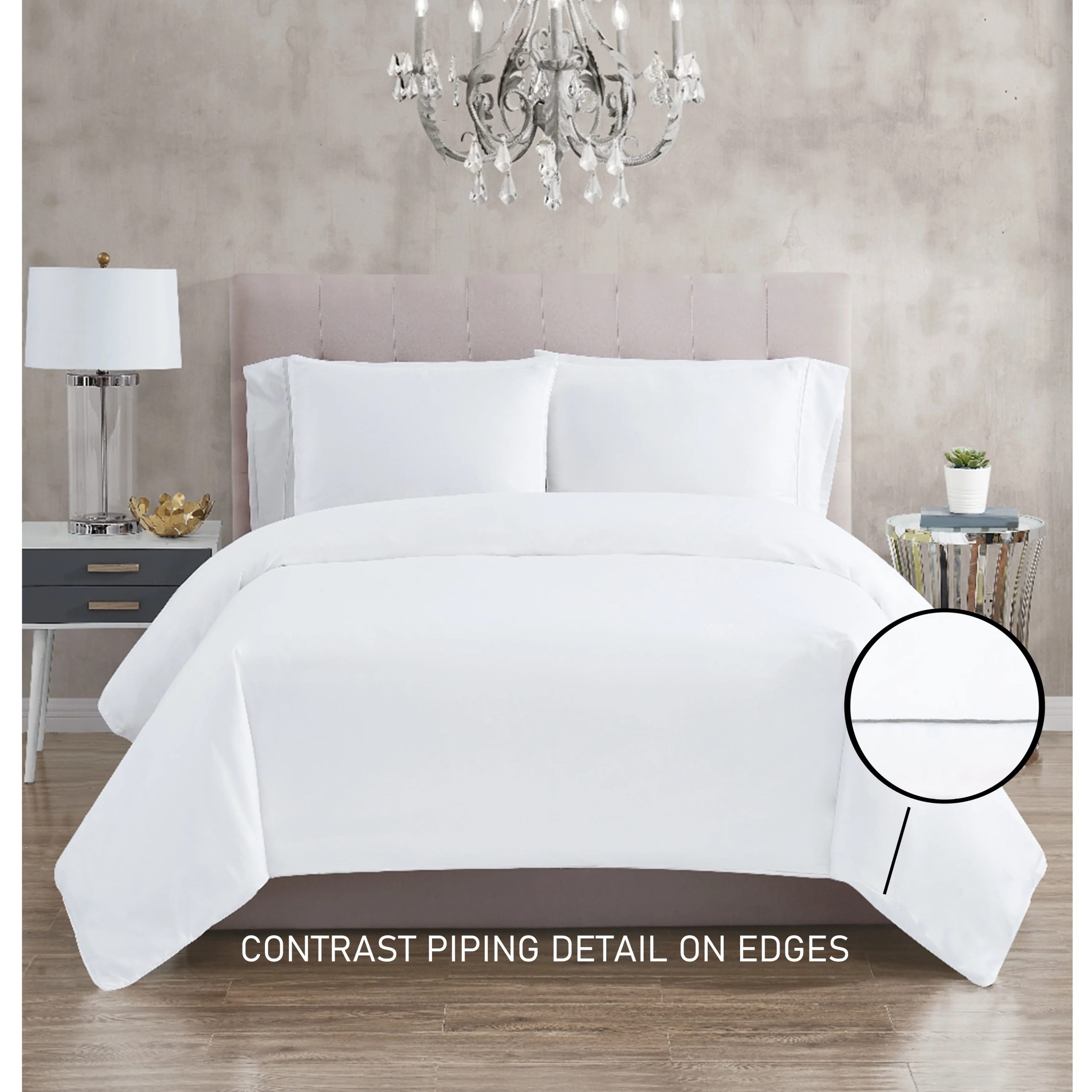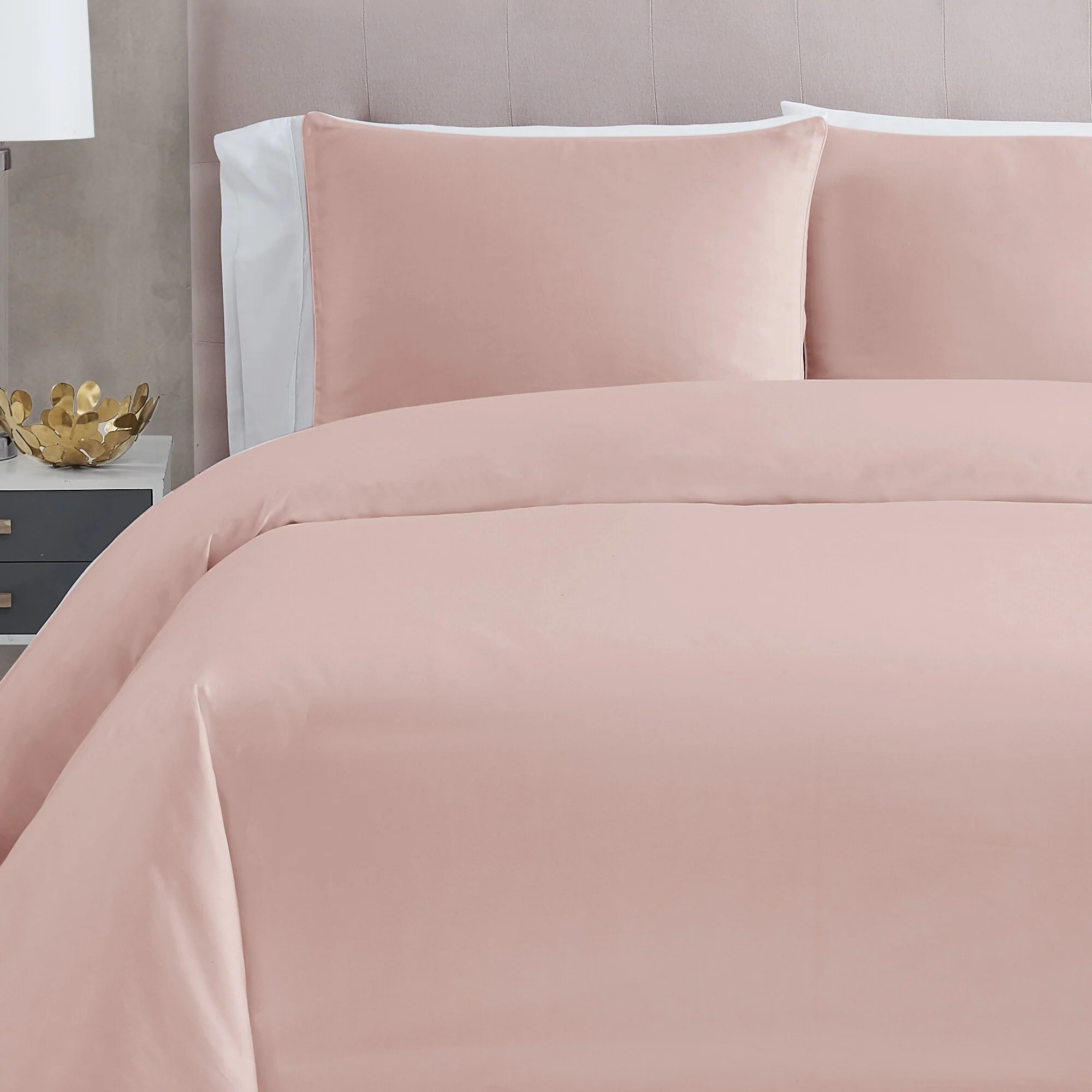 Enhance the idea of comfort with this 300 thread count cotton sateen duvet set. This fabric is made from long-fiber woven threads that create a silky, soft and smooth feel that will wear well over time. This duvet has corner ties to secure the comforter insert in place. With a variety of colors offered and a sensational yet subtle sheen, this collection is guaranteed impress. Duvet features corner ties and a button enclosure. Comforter filler not included. This fabric is 100% cotton sateen. This item is machine washable, but please be sure to use appropriate sized machinery to avoid any excess wear on the items and maintain softness. This item is imported from India.