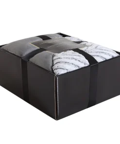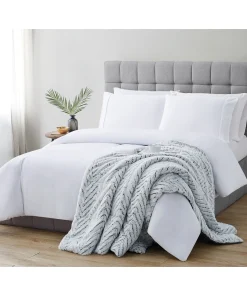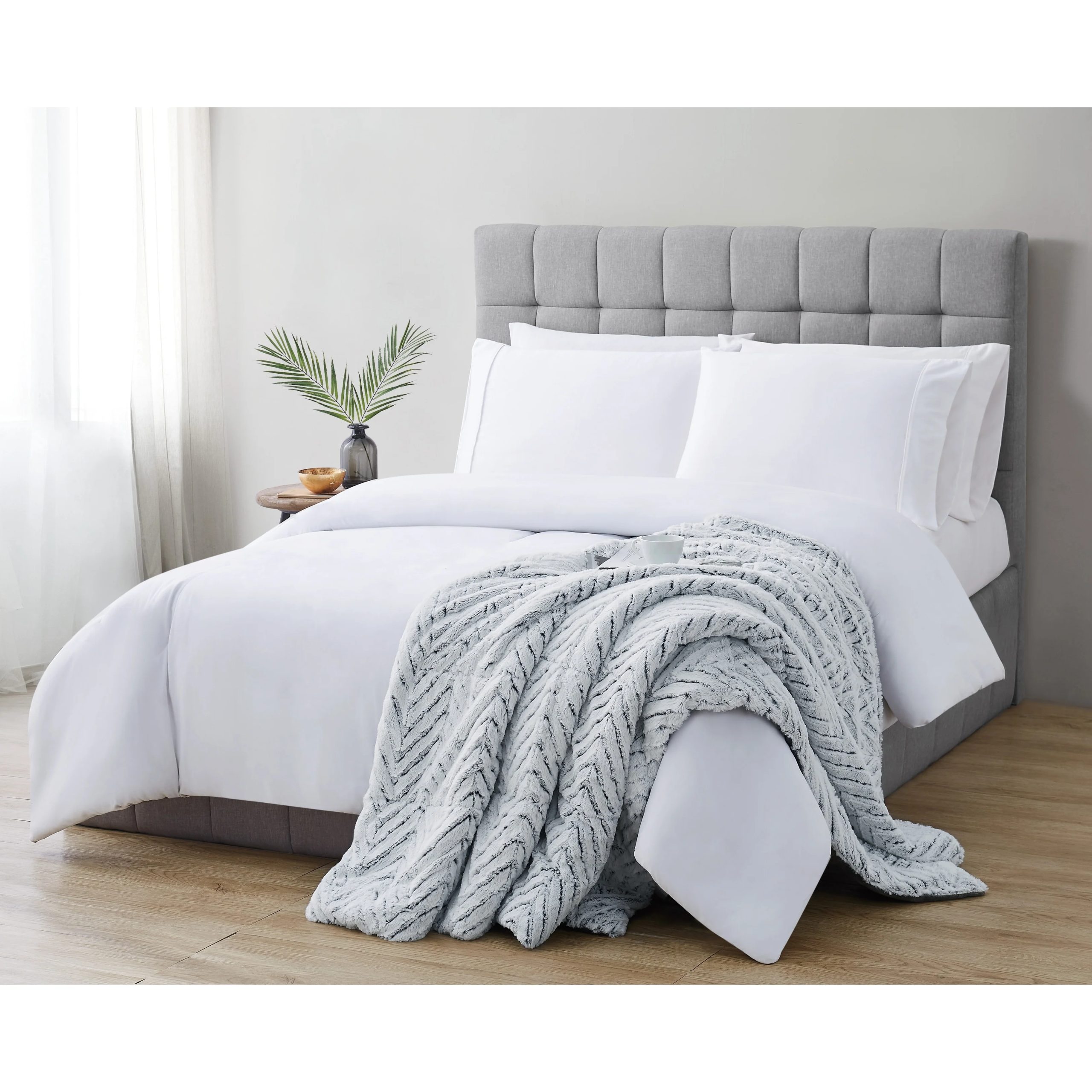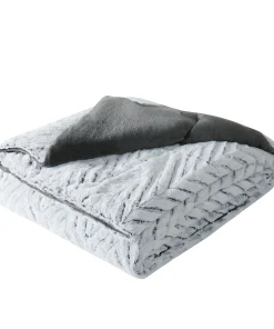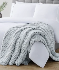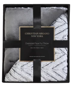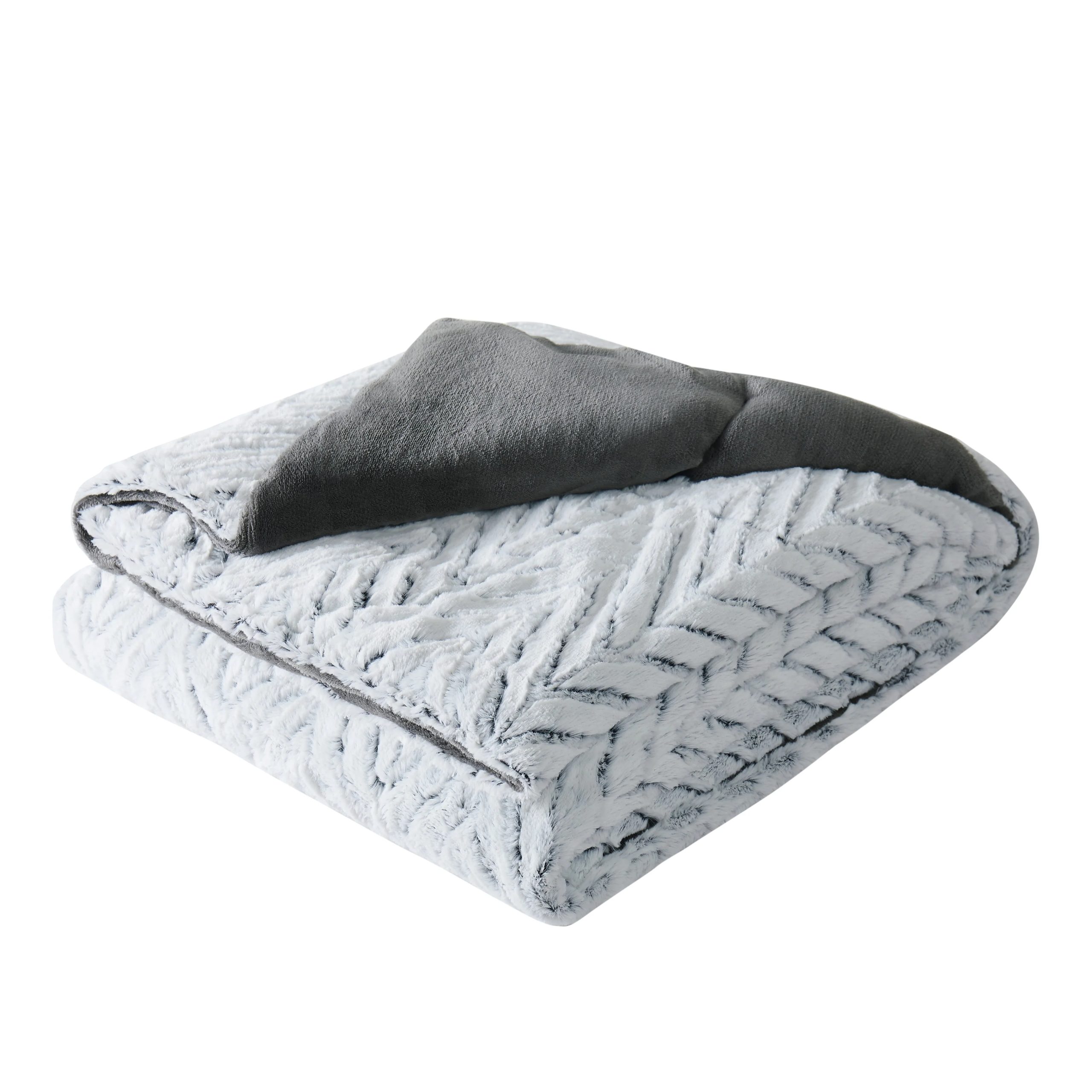 Wrap yourself in the luxurious comfort of this Christian Siriano oversized throw blanket. The grey, filled throw is crafted from polyester faux fur with a solid colored back and a striking chevron pattern front. The hypoallergenic blanket has a soft, microplush feel that makes this stylish blanket an excellent choice for your space.