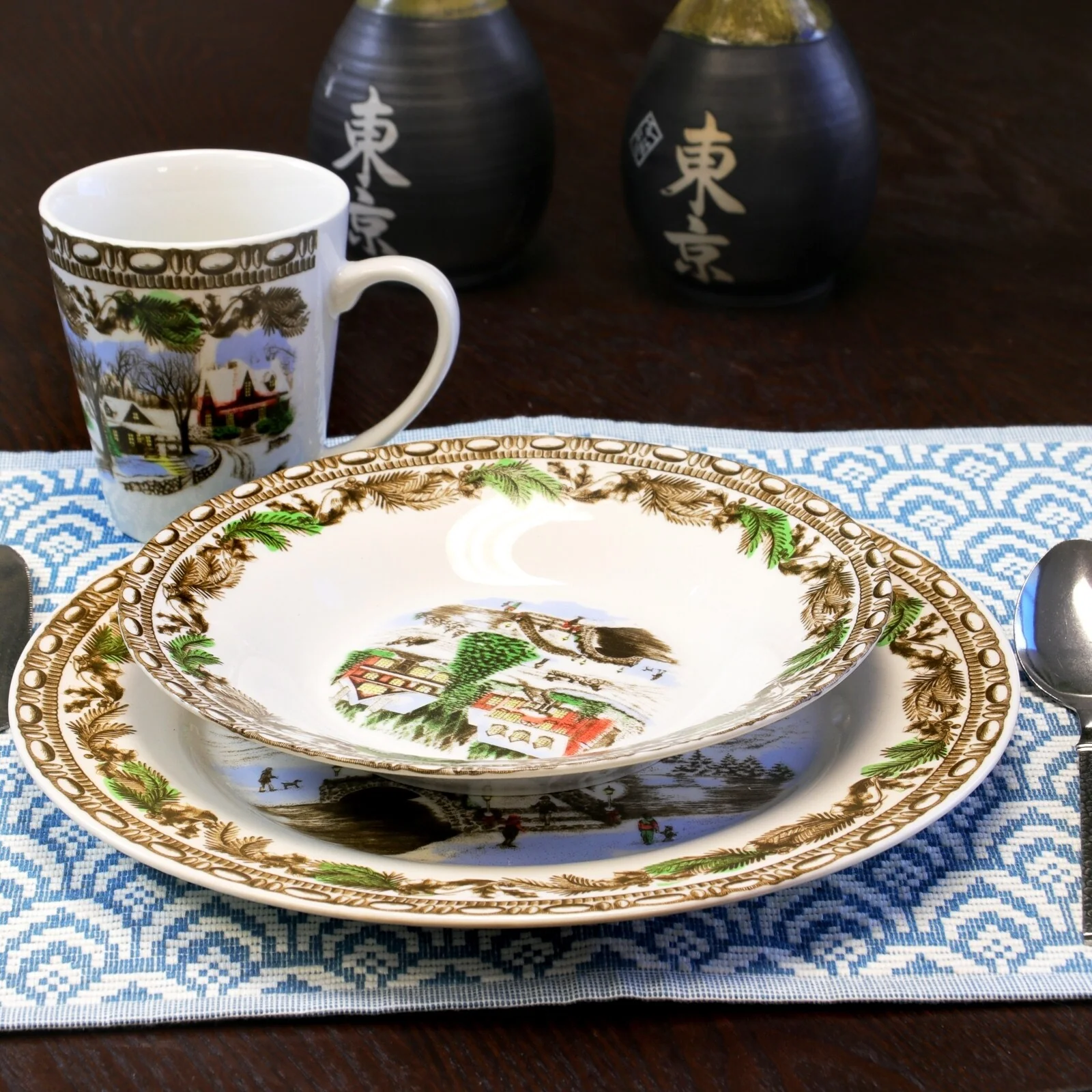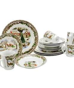 Christmas Time Winter Cabin Dinnerware Set 16 Pieces