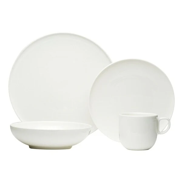 - Set includes coupe dinner plates, salad plates, soup/cereal bowls, and mugs