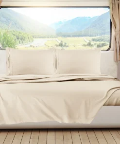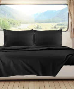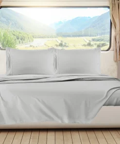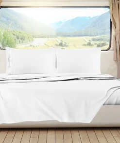 - RV/Short Queen Size 6 Piece Set – Includes: 1 flat sheet 90" x 99", 1 fitted sheet 60" x 75", and 4 pillowcases 20" x 30". Fitted sheet for mattress up to 10, with an elastic all around the sheet.