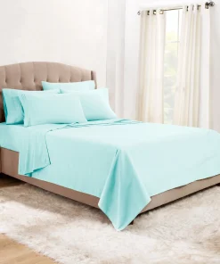 - Queen Size 6 Piece Set – Includes: 1 flat sheet 102" x 90", 1 fitted sheet 80" x 60", and 4 pillowcases 20" x 30". Deep pocket fitted sheet for deep mattress 14" to 16", with an elastic all around the sheet.