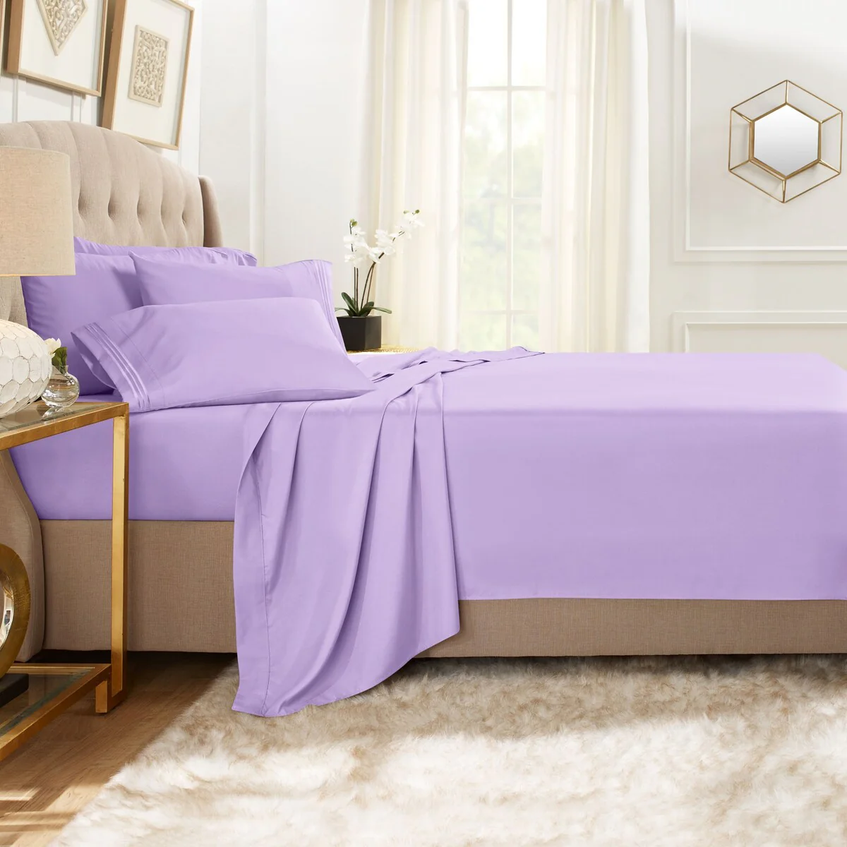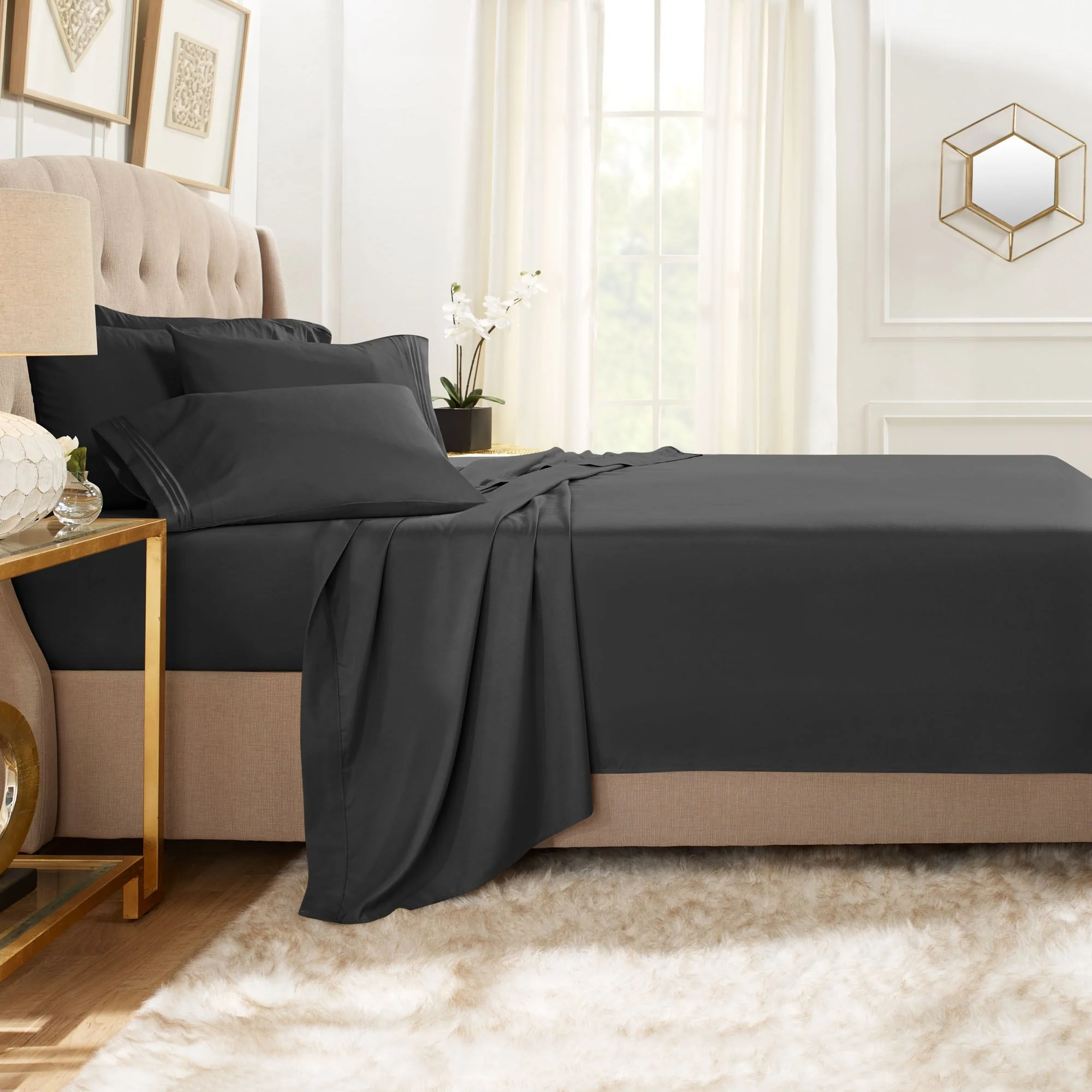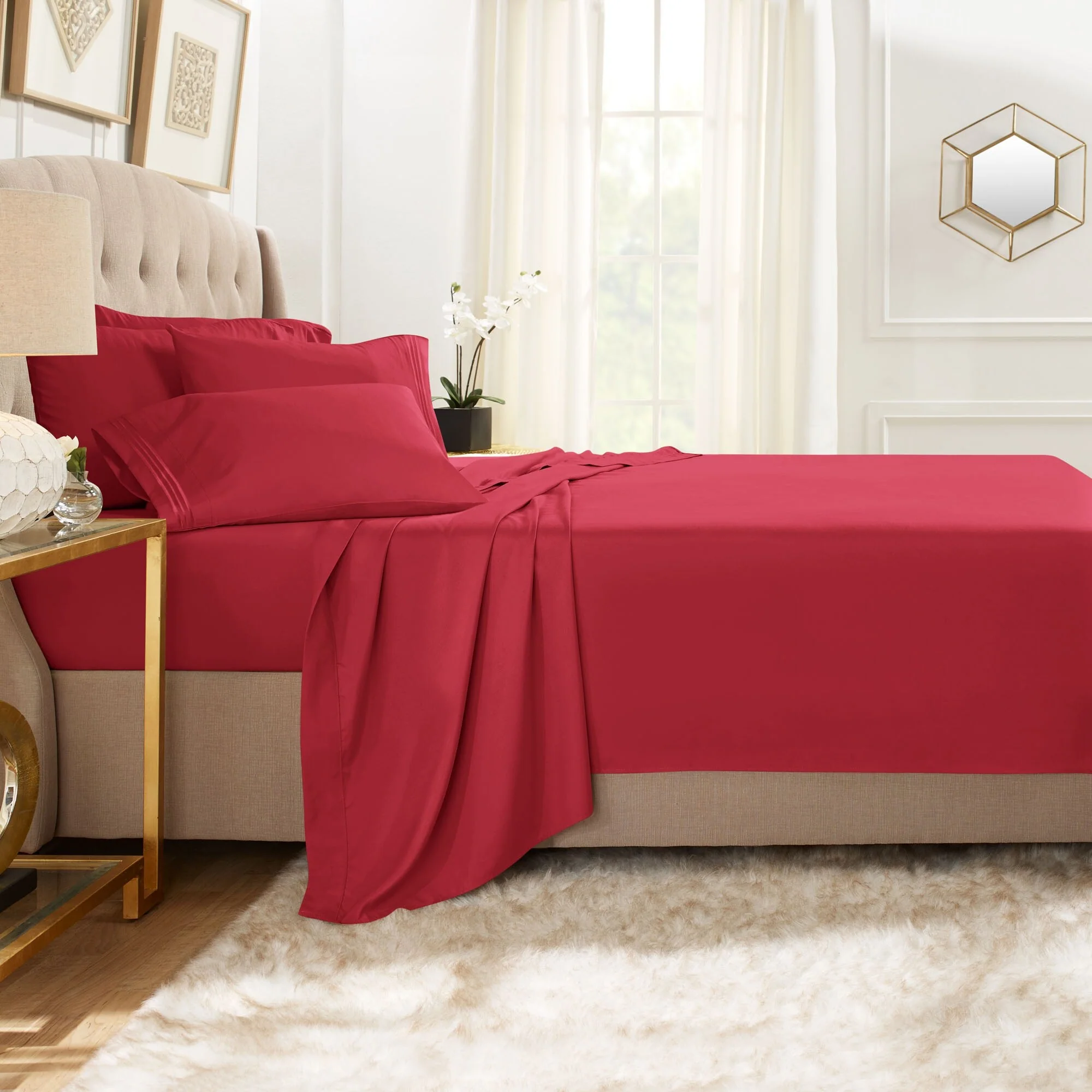 - California King Size 6 Piece Set – Includes: 1 flat sheet 108" x 102", 1 fitted sheet 84" x 72", and 4 pillowcases 20" x 40". Deep pocket fitted sheet for deep mattress 14" to 16", with an elastic all around the sheet.