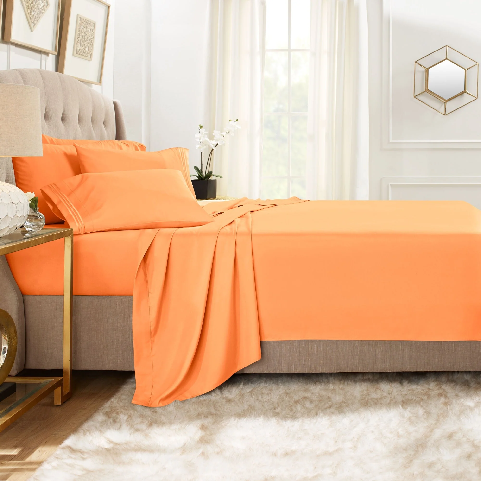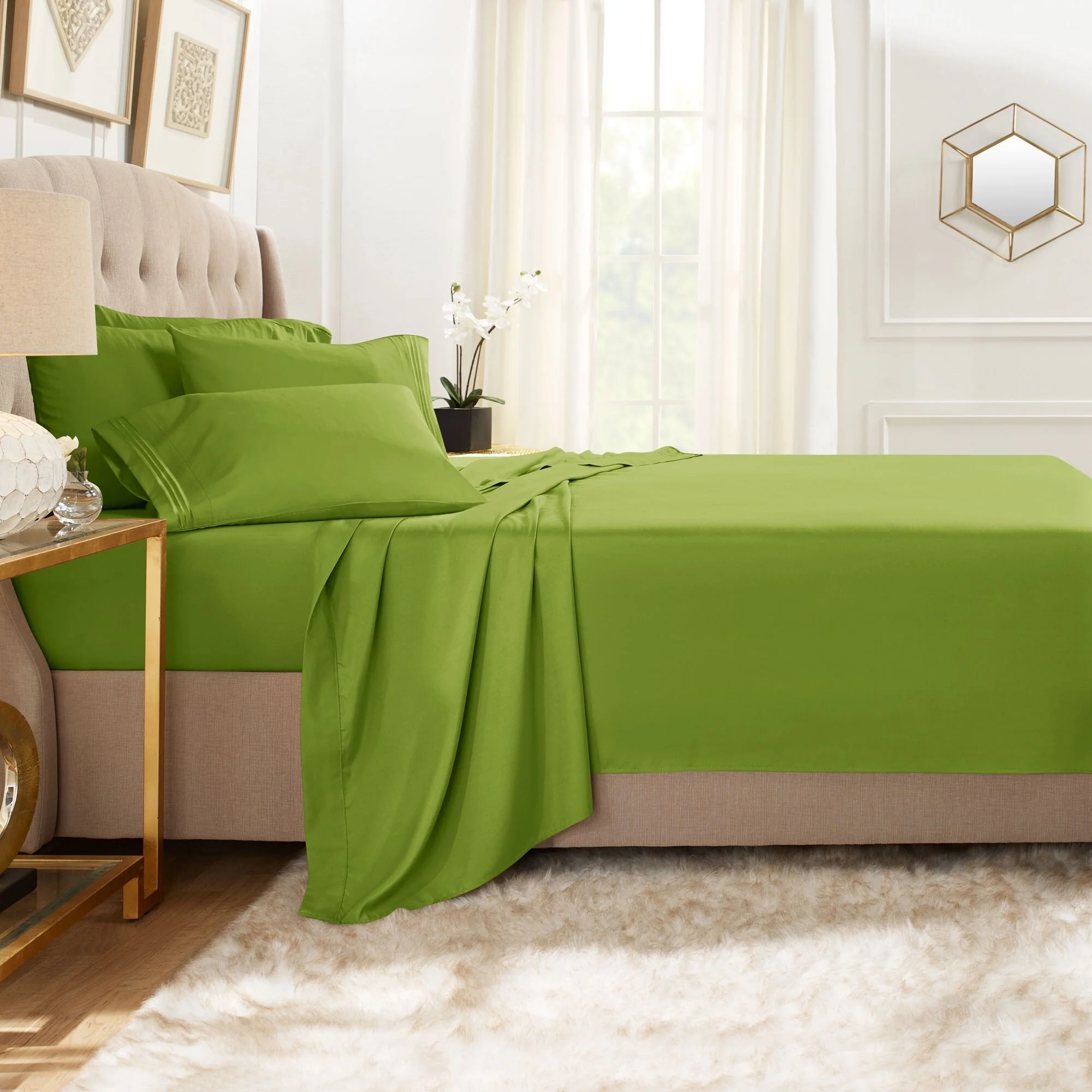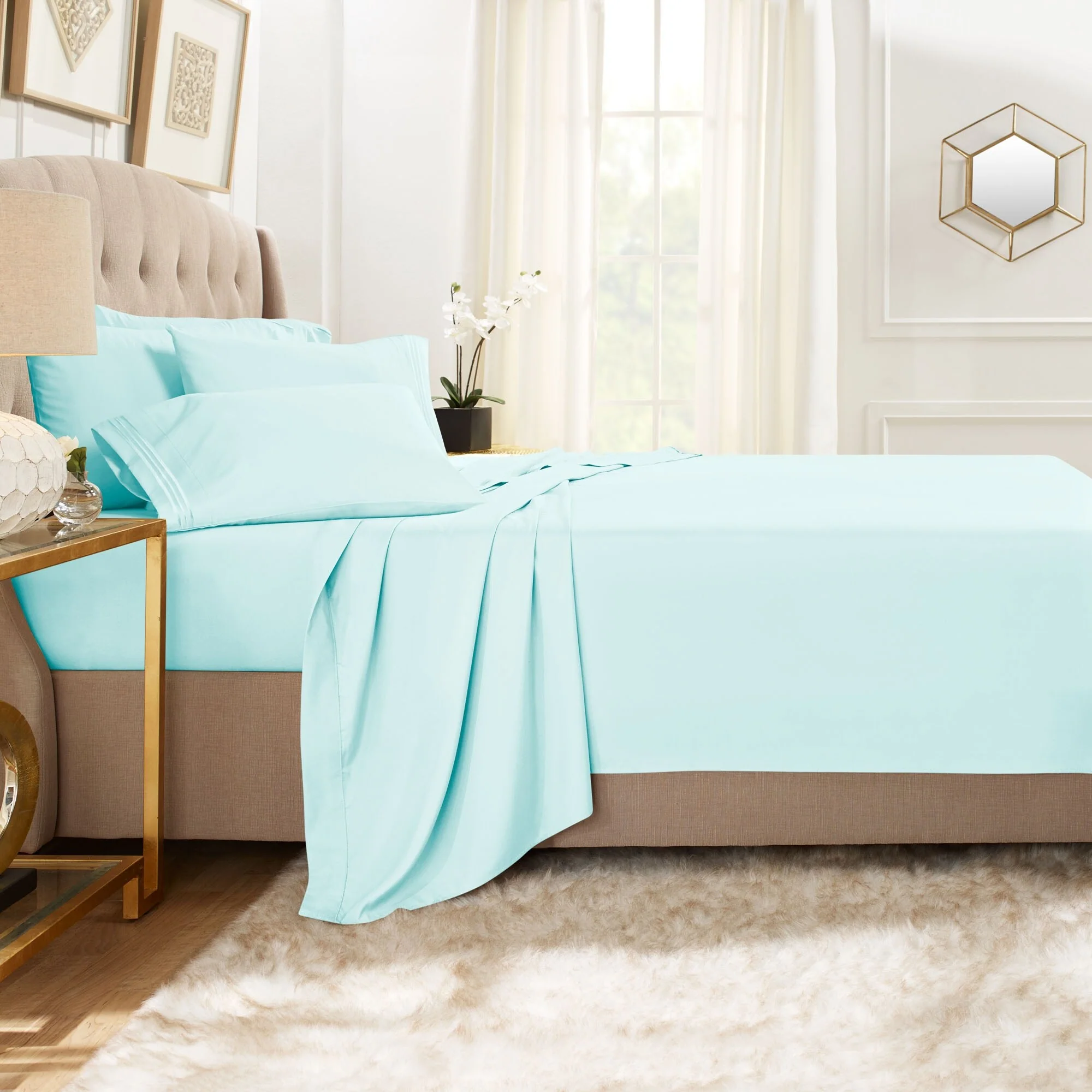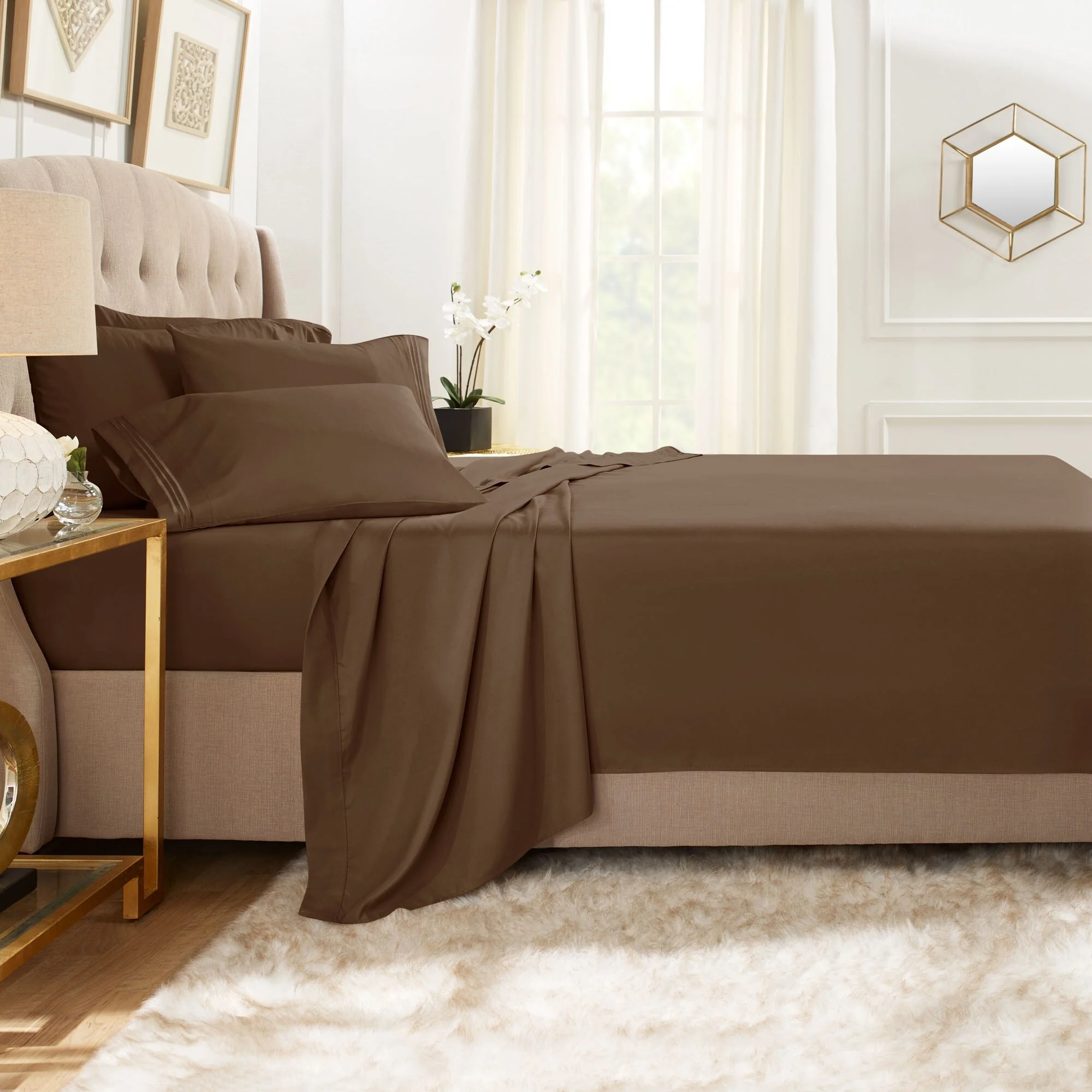 - California King Size 6 Piece Set – Includes: 1 flat sheet 108" x 102", 1 fitted sheet 84" x 72", and 4 pillowcases 20" x 40". Deep pocket fitted sheet for deep mattress 14" to 16", with an elastic all around the sheet.