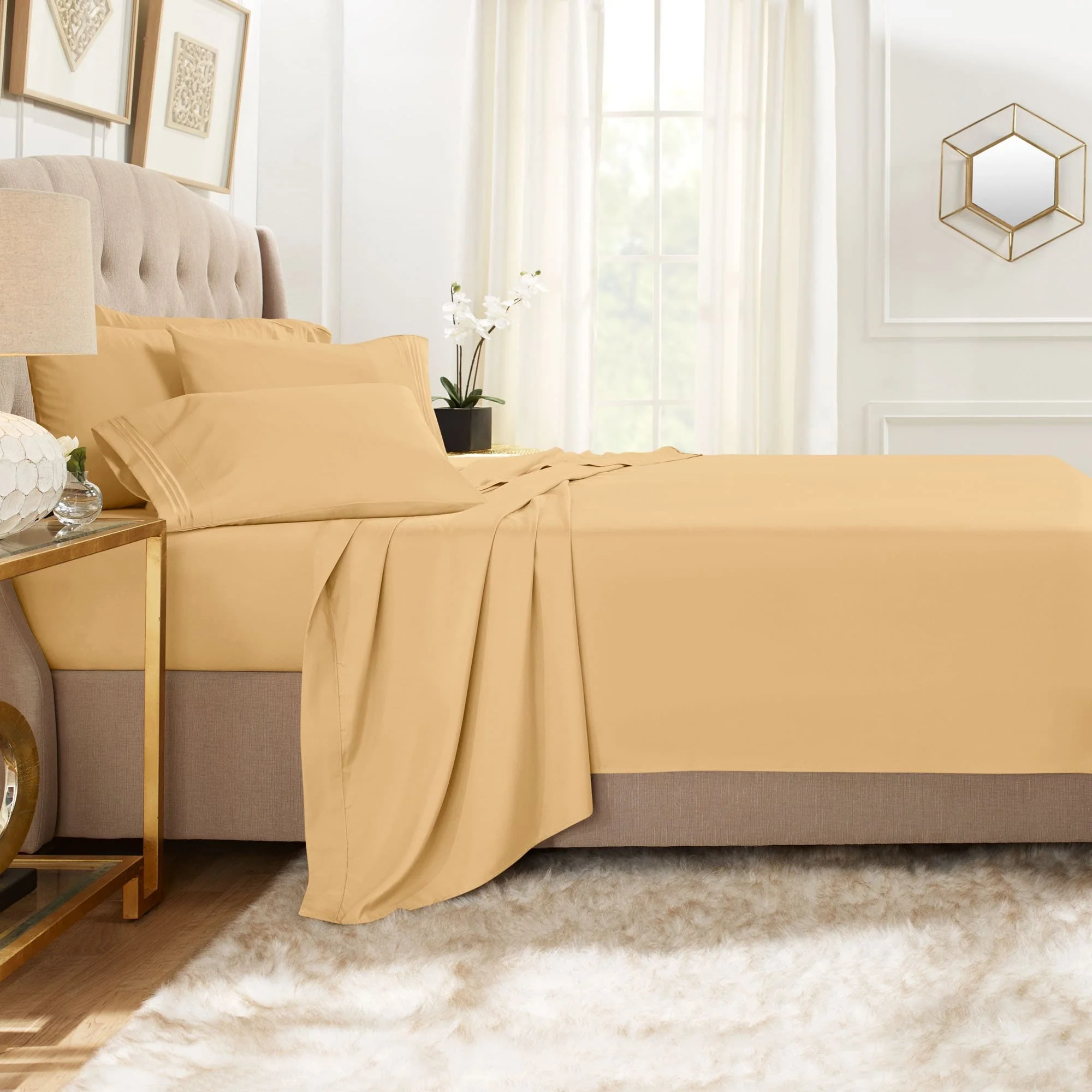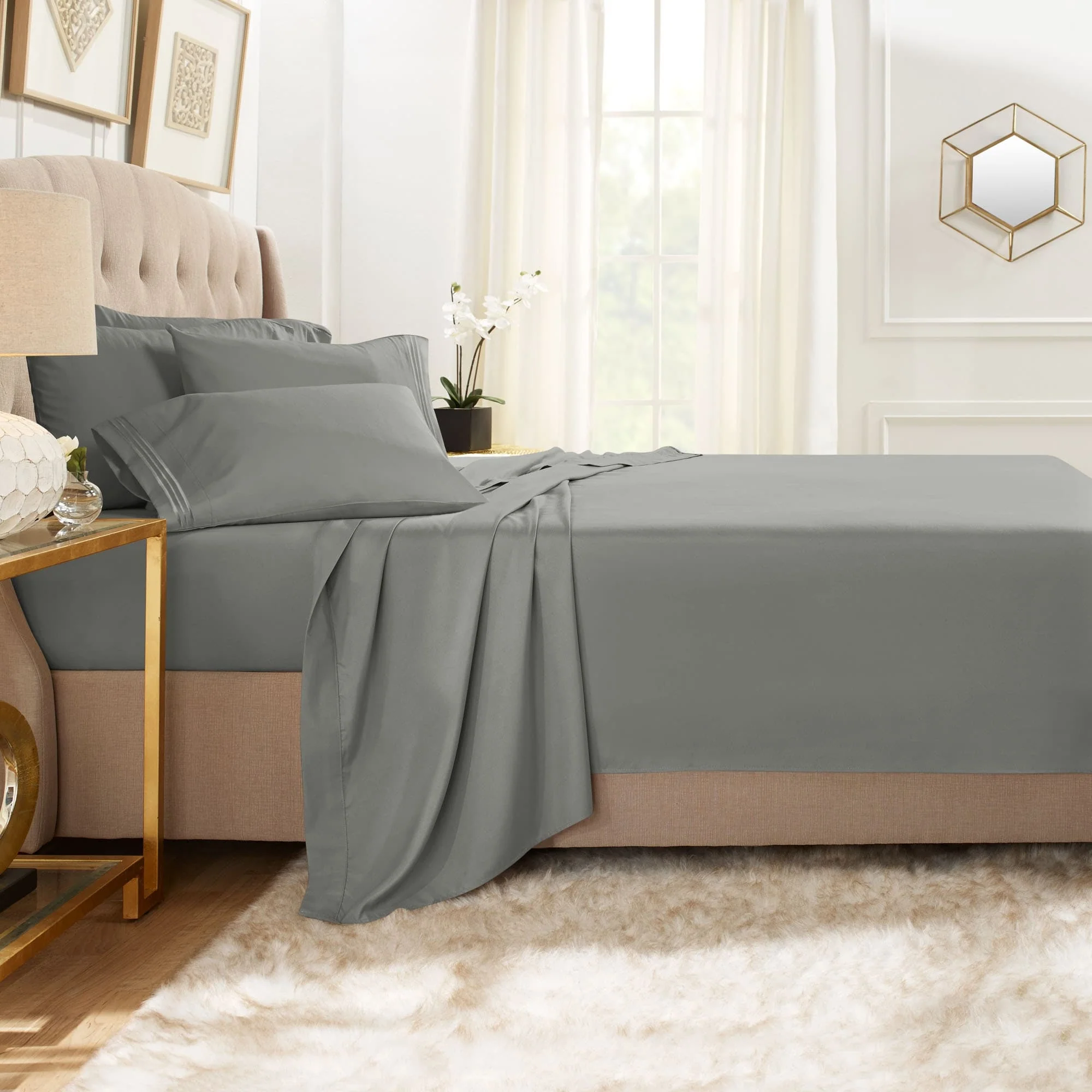 - King Size 6 Piece Set – Includes: 1 flat sheet 102" x 105", 1 fitted sheet 78" x 80", and 4 pillowcases 20" x 40". Deep pocket fitted sheet for deep mattress 14" to 16", with an elastic all around the sheet.