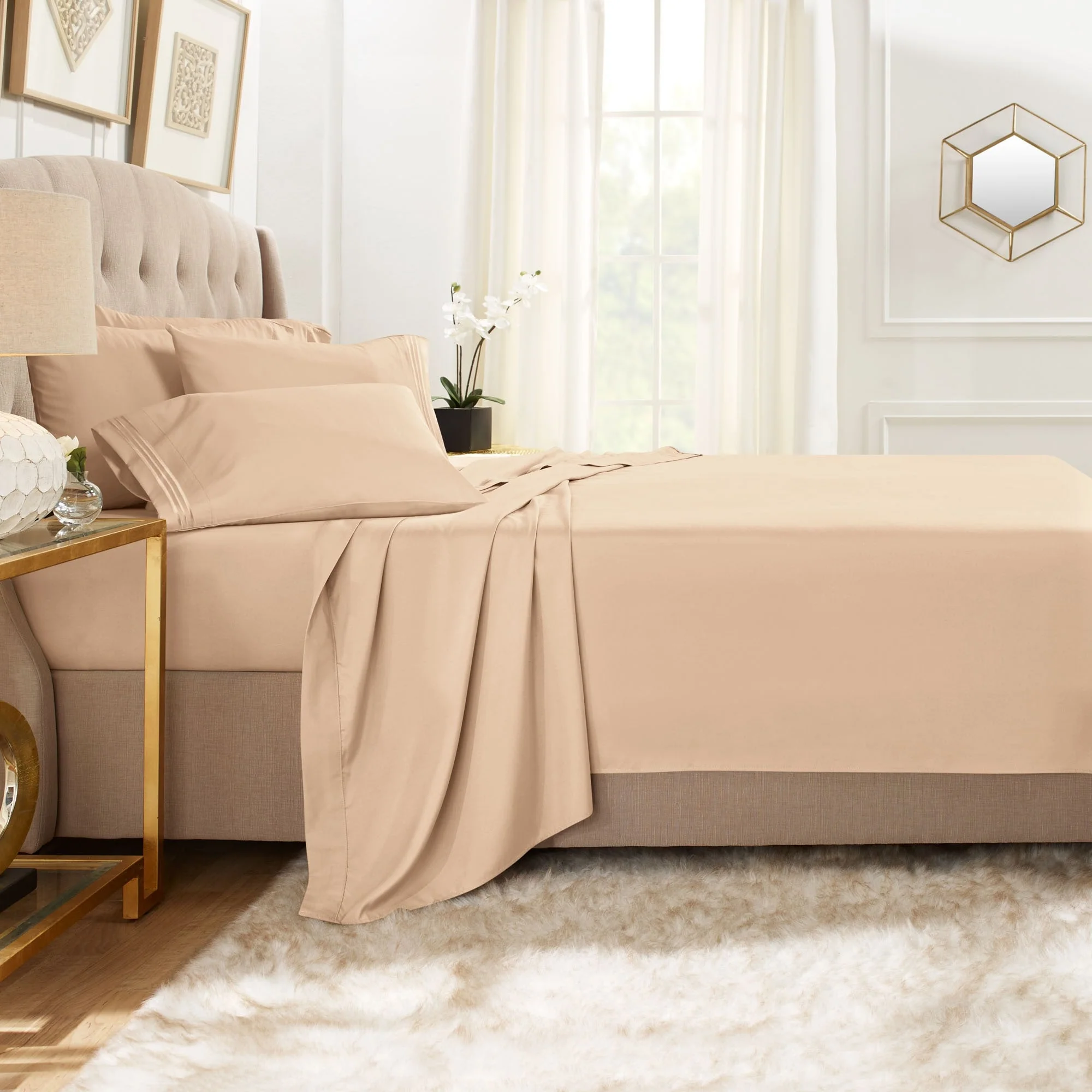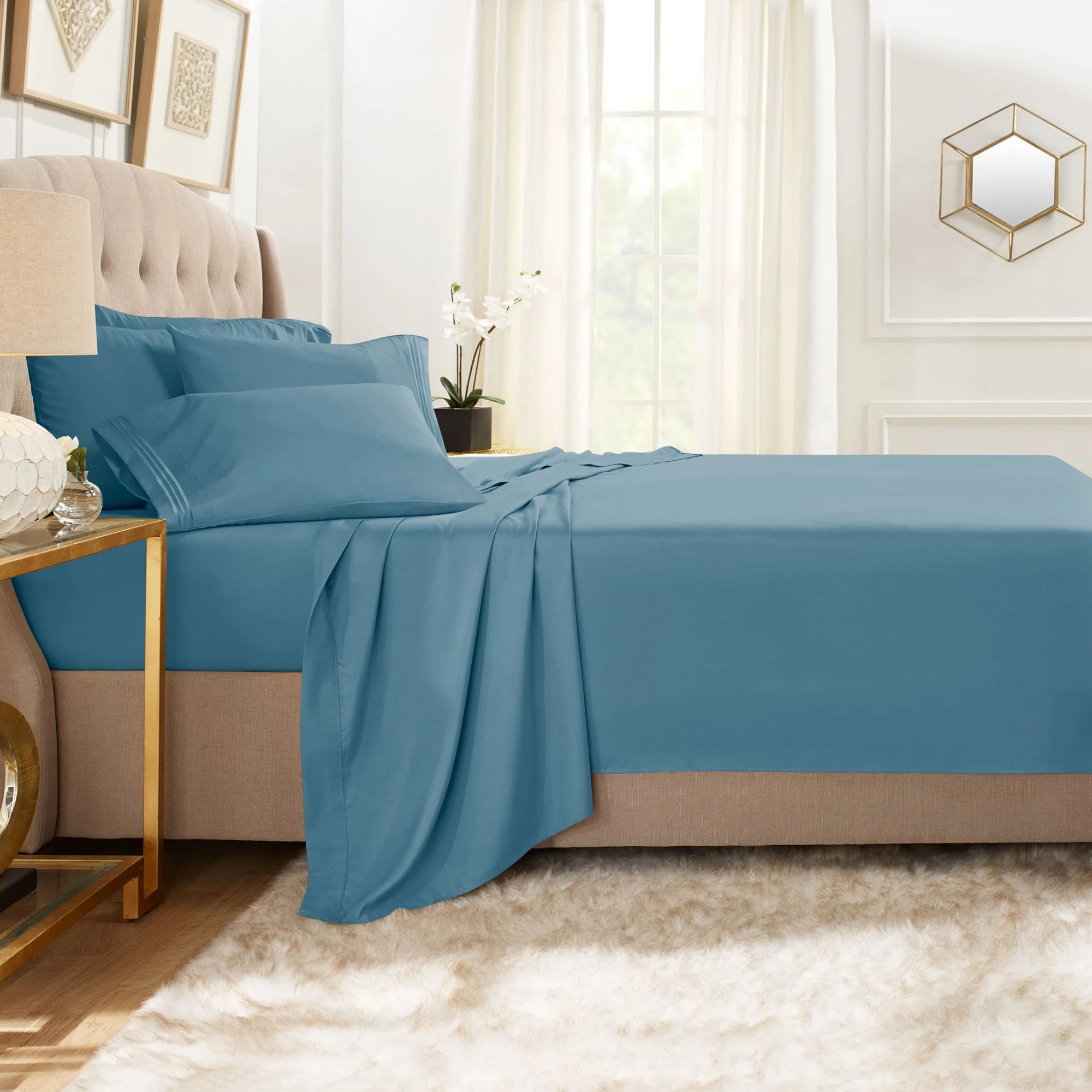- Queen Size 6 Piece Set – Includes: 1 flat sheet 102" x 90", 1 fitted sheet 80" x 60", and 4 pillowcases 20" x 30". Deep pocket fitted sheet for deep mattress 14" to 16", with an elastic all around the sheet.