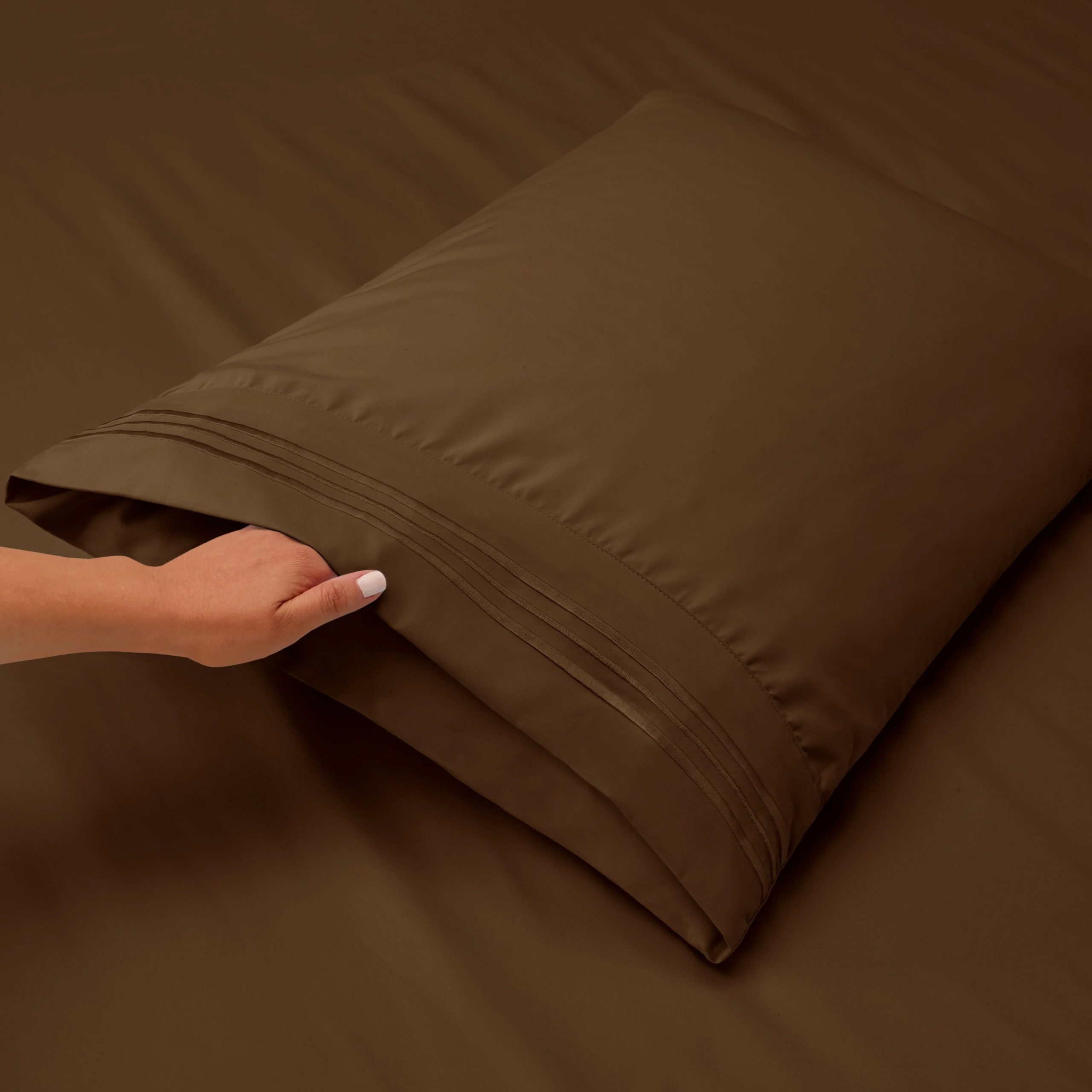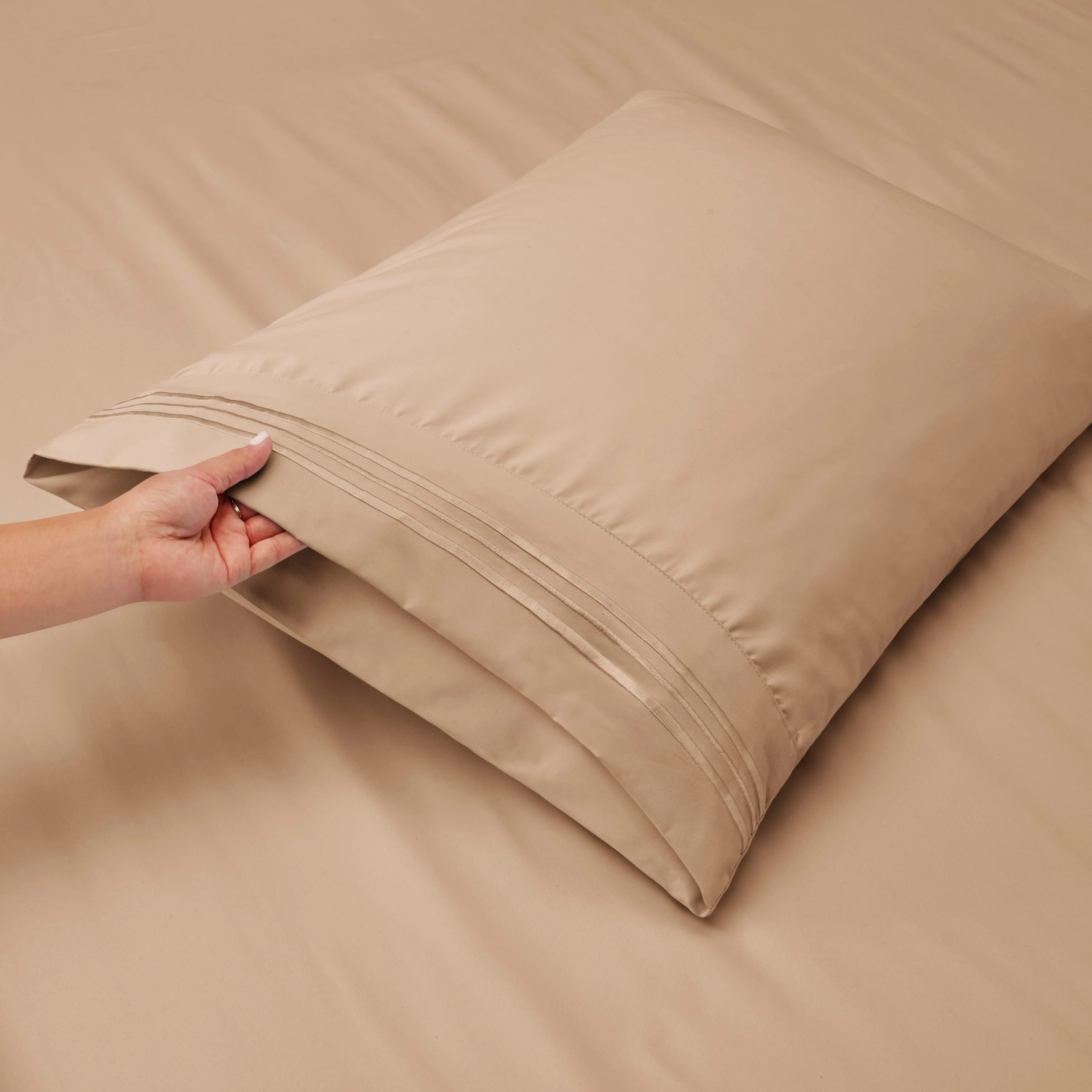 - Full Size 6 Piece Set – 1 flat sheet 96" x 81", 1 fitted sheet 54" x 75", and 4 pillowcases 20" x 30". Deep pocket fitted sheet for deep mattress 14" to 16", with an elastic all around the sheet.