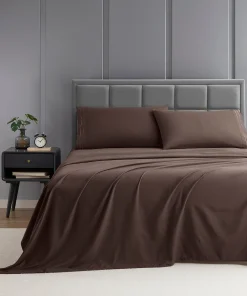 Woven from high quality double brushed microfiber for ultimate softness, our bedding sheets & pillowcases are lightweight, breathable, and cool to the touch – an all-season solution for serene sleep. It’s also machine-washable for easy care and cleaning. Our fitted bed sheets easily fit mattresses 14”-16” deep. Reinforced, stretchable elastic all around the fitted sheet ensures a snug, secure fit so your deep pocket sheets won’t move around.