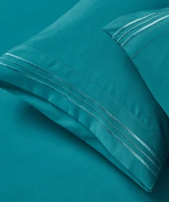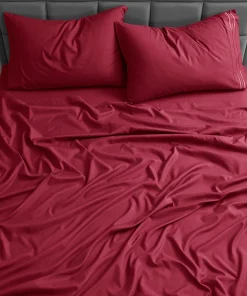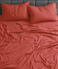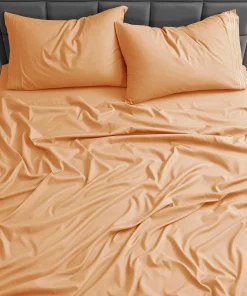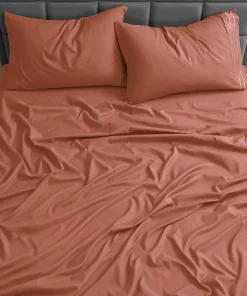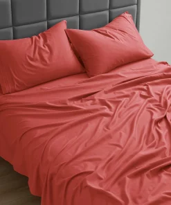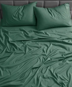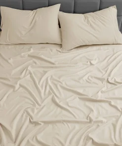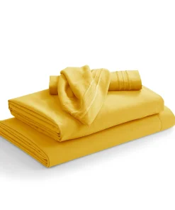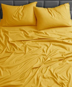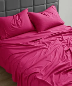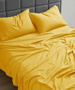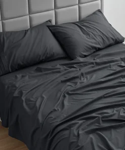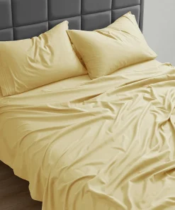 Woven from high quality double brushed microfiber for ultimate softness, our bedding sheets & pillowcases are lightweight, breathable, and cool to the touch – an all-season solution for serene sleep. It’s also machine-washable for easy care and cleaning. Our fitted bed sheets easily fit mattresses 14”-16” deep. Reinforced, stretchable elastic all around the fitted sheet ensures a snug, secure fit so your deep pocket sheets won’t move around.