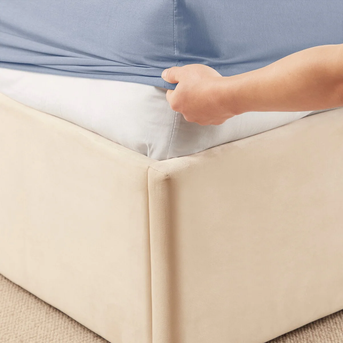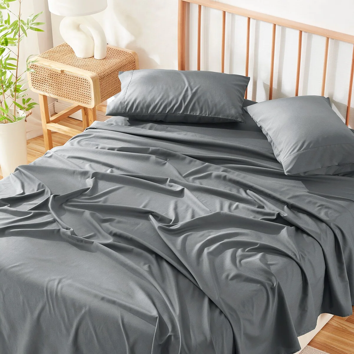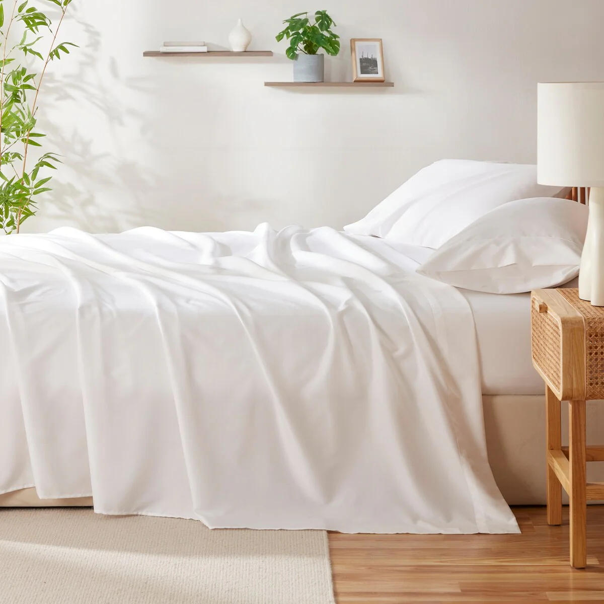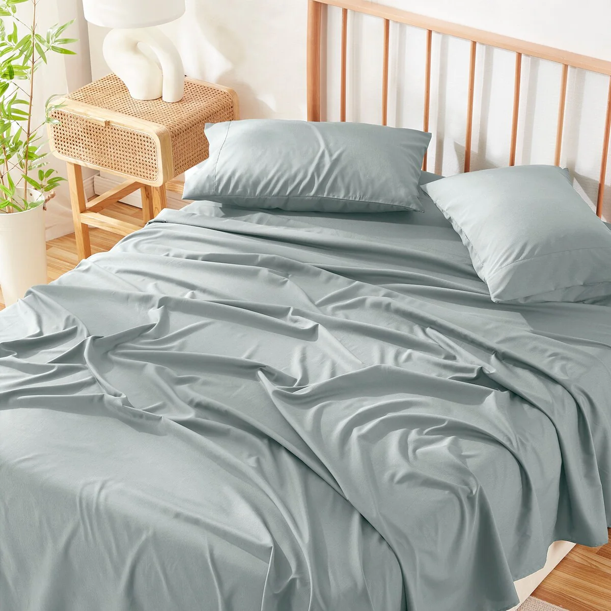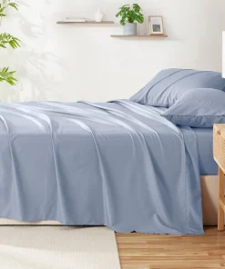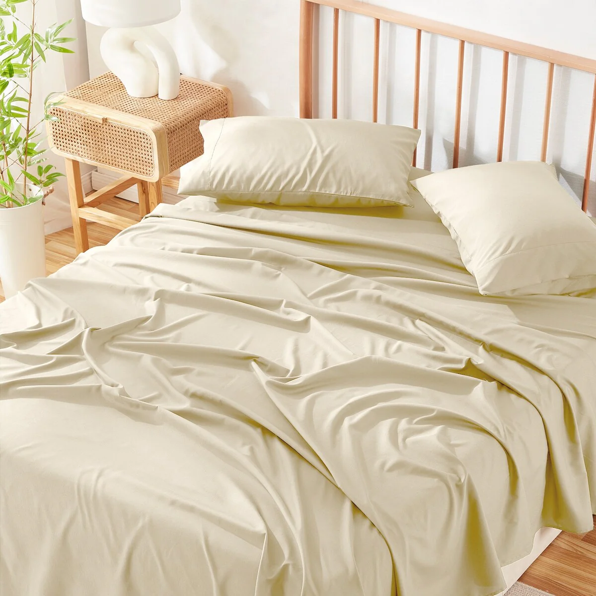 Experience the unmatched softness of our silky-smooth bamboo blend sheet set. Naturally cool, lightweight, and breathable, our cooling sheets are a luxurious blend of comfort, sustainability, and style.