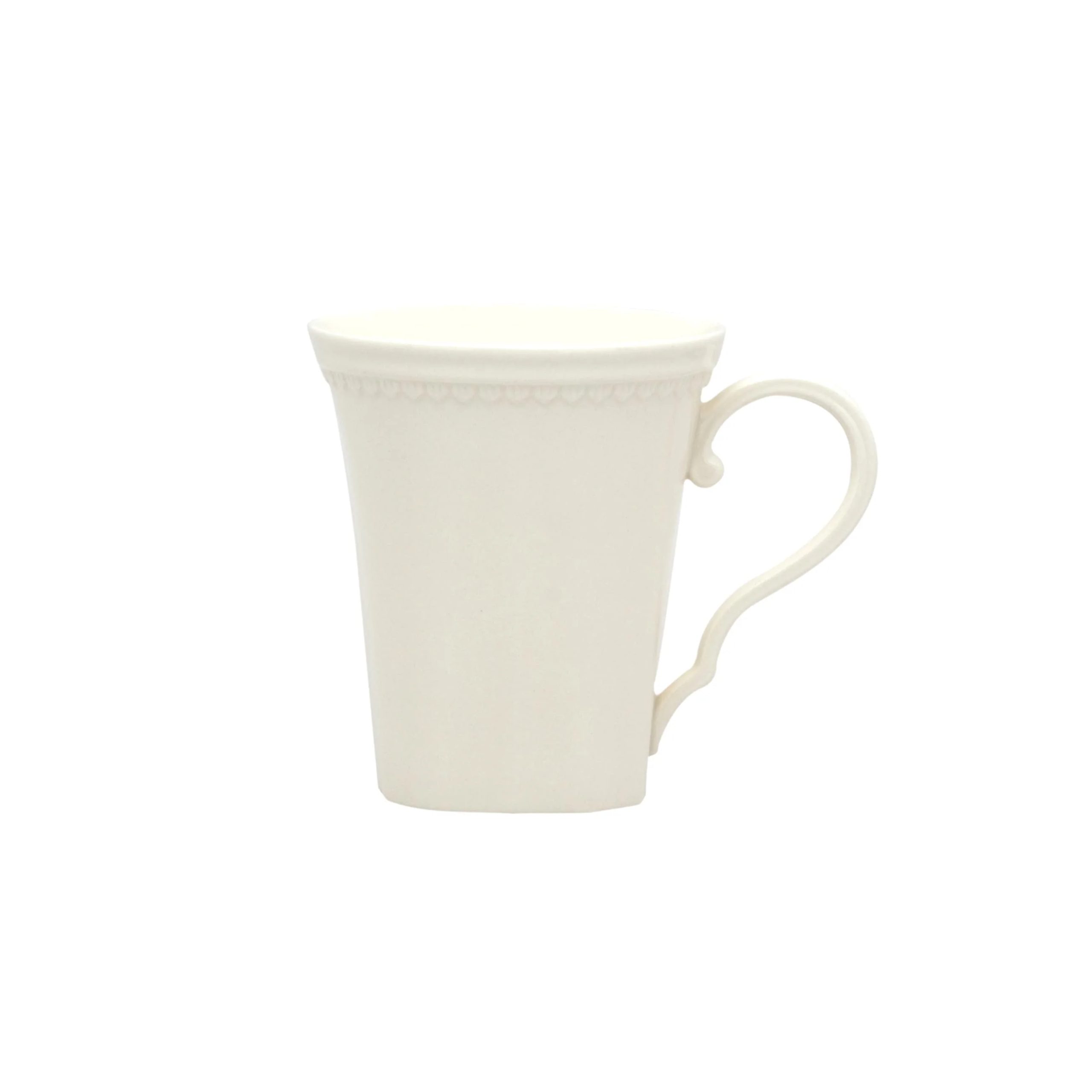 Enjoy a hot cup of coffee or tea with these classic white mugs by Red Vanilla. Made with high-quality stoneware, this set of four mugs is chip-resistant for long-lasting use in your kitchen. The elongated curved handle fits nicely in your hands for comfortable and enjoyable use.