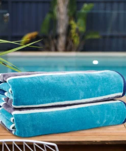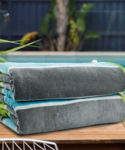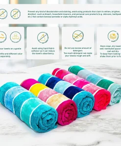 Colors Cabana Stripe Beach Towels – Made from cotton, these trendy oversized towels are lightweight, compact, and high-quality. A plush-soft feel that you will never want to leave, these towels are ultra-absorbent, quick-drying, and sand-resistant. In short, cabana stripe beach towels are the perfect companion to your next water adventure.