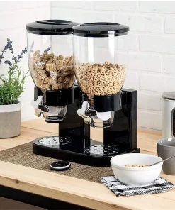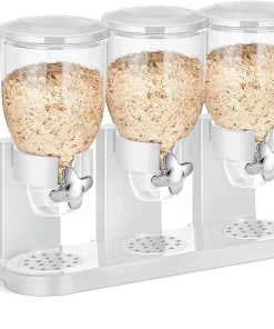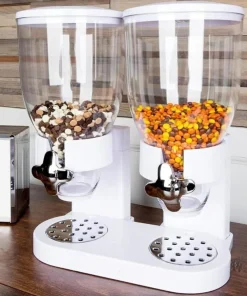 Introducing the ColourTreeUSA 2L Single, Double or Triple Commercial Dry Food Dispenser – simply grab a bowl and explore a delicious lineup of your preferred cereals, granola, trail mix, and even coffee beans, all delivered with on-demand freshness. Crafted from durable stainless steel and plastic, this dispenser effortlessly rotates through cereals and dry goods with portion control and an airtight seal to maintain freshness. Its versatility extends to oatmeal, granola, nuts, and more, making it perfect for both home or commercial kitchens. The dispenser’s comes in black or white colorways and its self-serve mechanism empowers you to customize your breakfast routine to your heart’s content. Upgrade your breakfast routine with our dry food dispenser, where organization meets indulgence in a perfect blend.