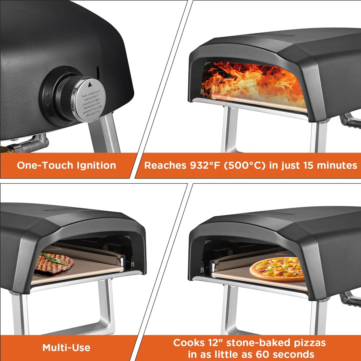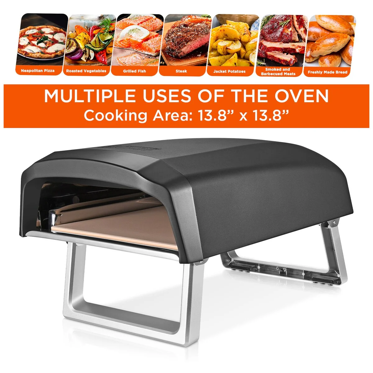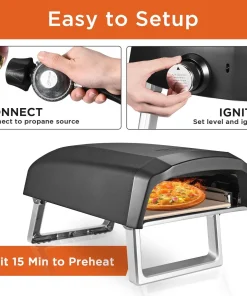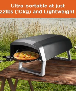 - Ultra-Portable: Weighing just 22lbs (10kg) and featuring easy assembly with foldable legs, this pizza oven is highly portable and convenient for outdoor use