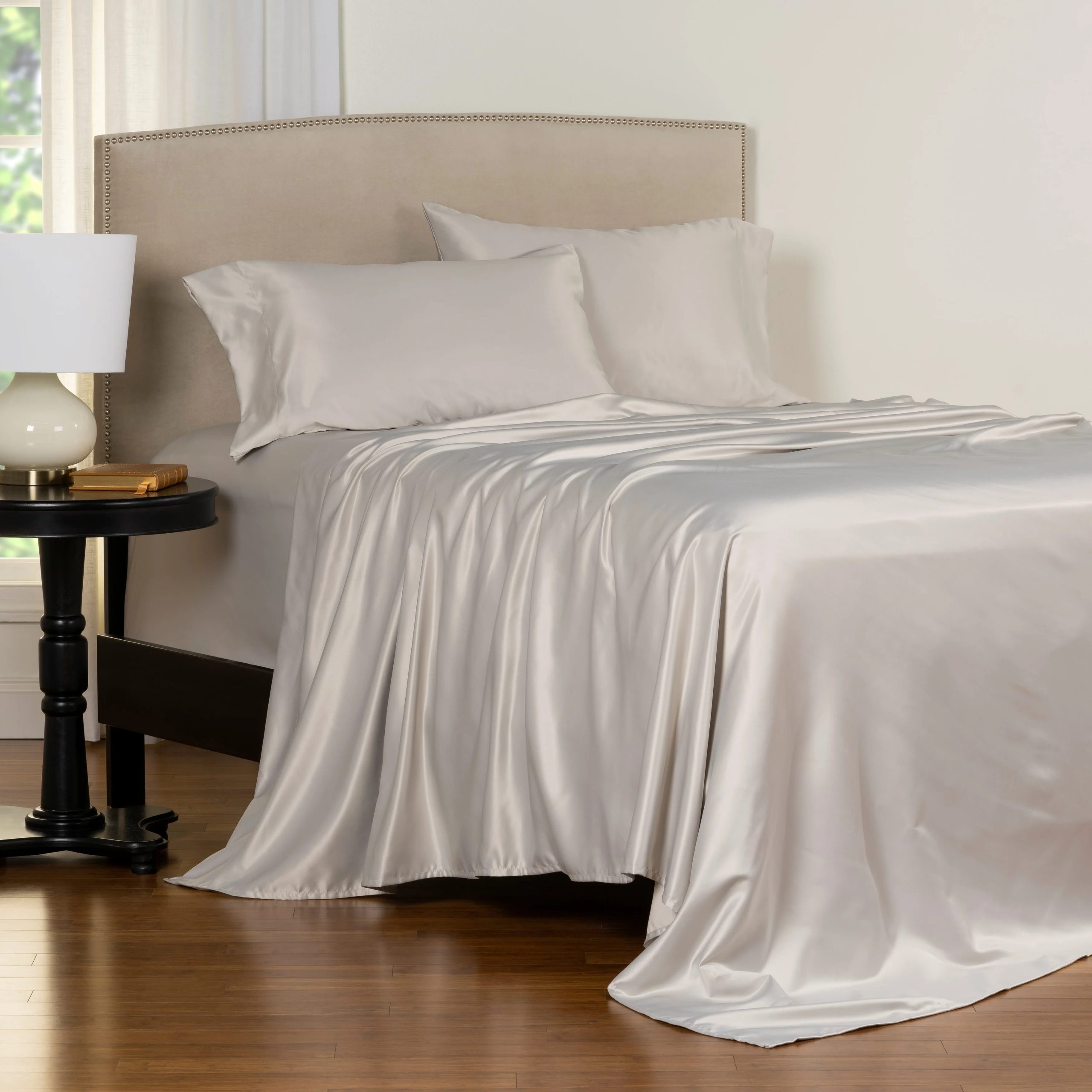 Experience a restful slumber every night with our Copper Grove Clifton Luxury Satin Bed Sheet Set. Made from premium polyester, these sumptuous sheets boast a lustrous shine that lends elegance to your bedroom decor. Choose from a range of neutral color options that complement your existing decor. With a fitted sheet that comes equipped with a deep pocket, even thicker mattresses are no match for this set that stays in place, ensuring you can make your bed with ease. These machine washable sheets make for easy maintenance so that you can enjoy their luxurious softness time and time again.