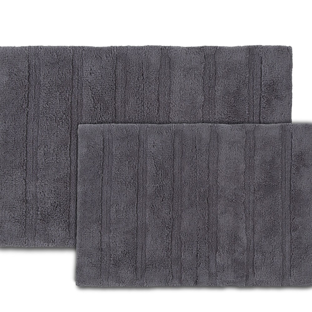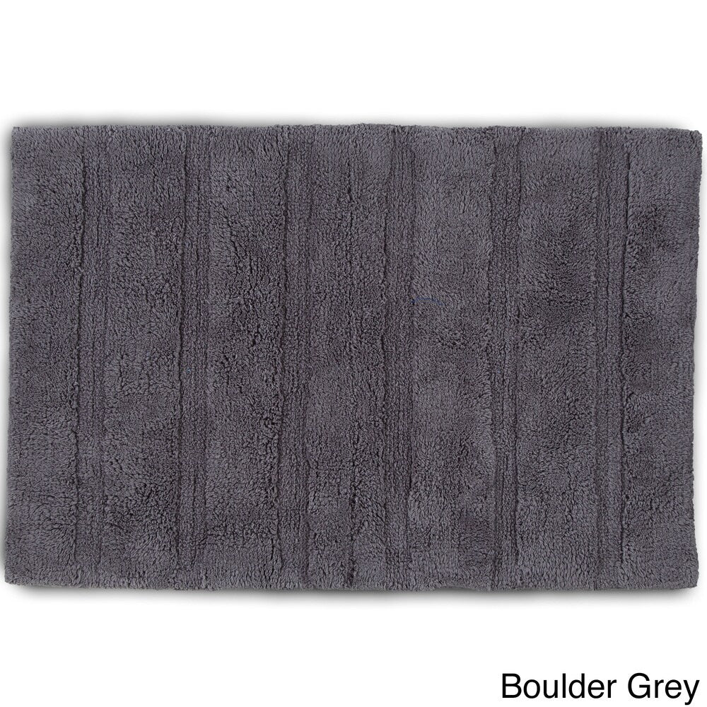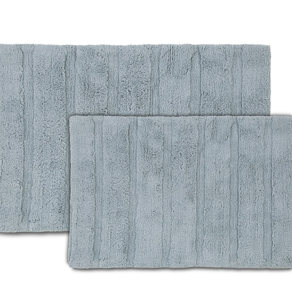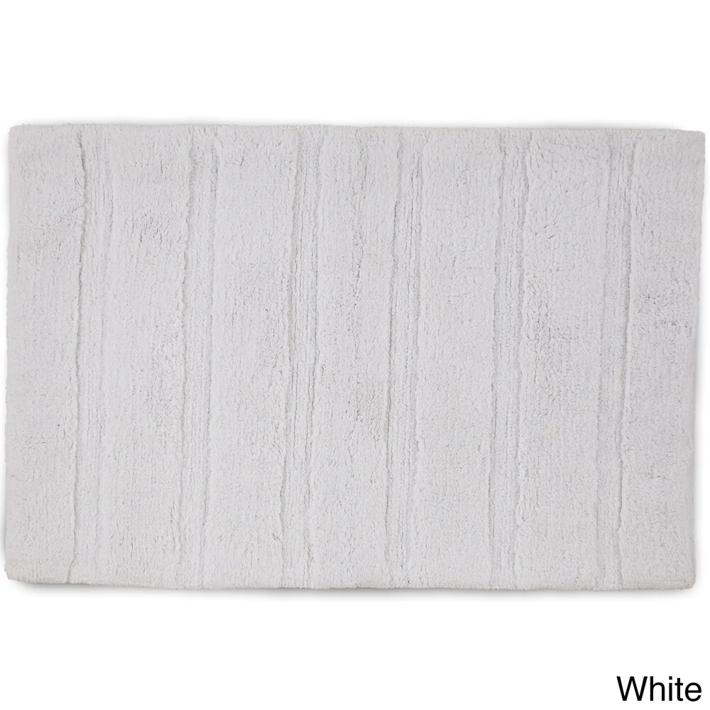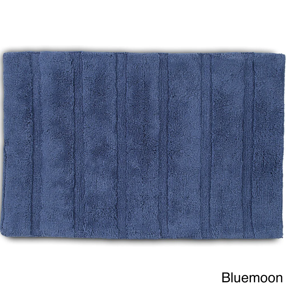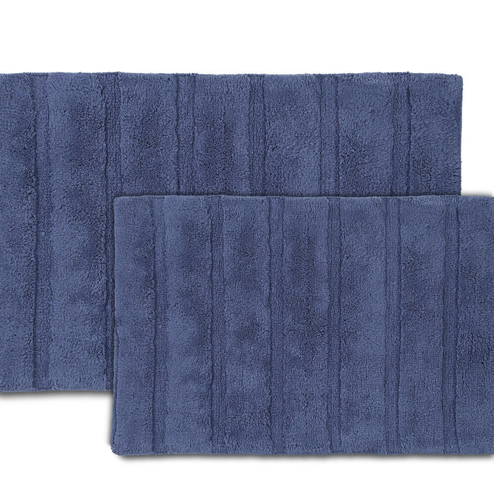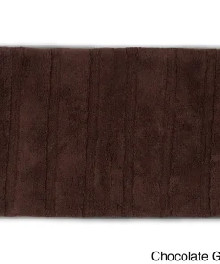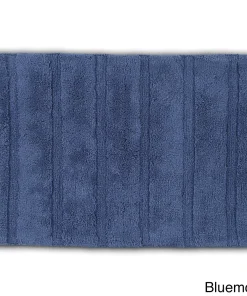 The wonderfully soft and plush bath rug is made entirely of cotton with high and low cut pile to create the striped design. It’s neatly hemmed and the sprayed non-slip latex back keeps the rug safely in place on the bathroom floor. You can choose from a variety of gorgeous colors.