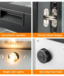 Strong metal hinges and non-slip foot pads for added safety and stability