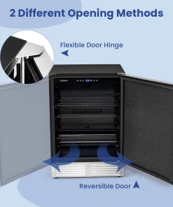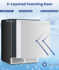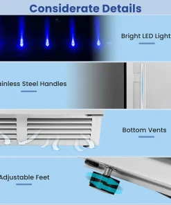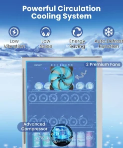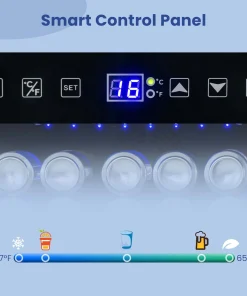Equipped with 1 advanced compressor and 2 fans, this beverage cooler ensures efficient cooling. It’s also quiet and energy-saving. 3-layered foam door guarantees better insulation. Meanwhile, our beverage refrigerator with 3 metal shelves offers ample storage for up to 190 standard-sized cans of drinks. Moreover, smart control panel ensures easy operation, while built-in LED lights help to maintain visibility. Reversible door allows you to freely open it at the left or right side. Additionally, it can stand freely or fit perfectly under your counter.