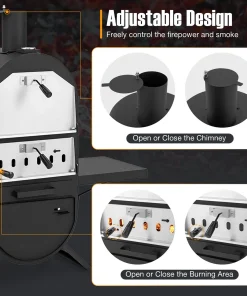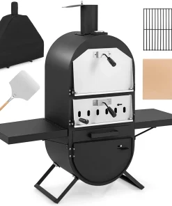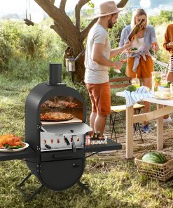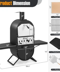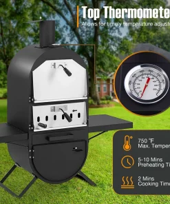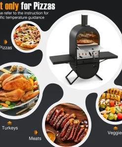 Featuring a 2-layer cooking area, the pizza oven converts to a cooking grill to meet your various culinary needs. Not only can you bake pizzas in just 2 minutes, but you can also cook turkeys, meats, vegetables, and more with ease. The top-mounted thermometer allows for precise temperature control, ensuring your food is cooked to perfection every time. Made with heavy-duty metal tubes, this pizza oven is built to last for years of use. Plus, the side storage shelves and wood storage section keep all your cooking essentials organized and within reach. Complete with a 600D oxford fabric cover for protection, this outdoor pizza maker is a wonderful addition to any outdoor gathering.