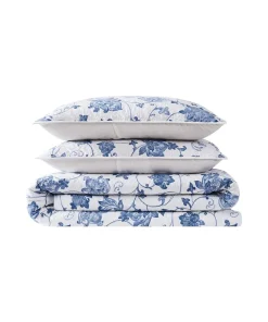 Bring a touch of traditional charm to your bedroom with Cottage Classics Estate Bloom 3 Piece Quilt Set. The white base cloth with a blue floral vine pattern creates a classic blue and white toile design that complements any decor. Made of 100% cotton fabric face cloth and filled with 100% polyester, this quilt set is both soft and durable. The set includes one quilt and two shams (one sham for twin XL) in standard, full/queen, or king sizes. Machine washable for easy care.
