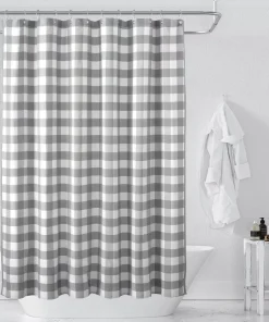 The shower curtain features a classic check pattern that adds a touch of timeless elegance to your bathroom. Made from a high-quality blend of cotton and polyester, this shower curtain offers a soft and natural feel while being durable and easy to maintain. The simple yet stylish design complements a variety of decor styles, from traditional to modern.Standard size 71 inches wide and 72 inches long, suitable for most standard bathtubs and shower stalls.